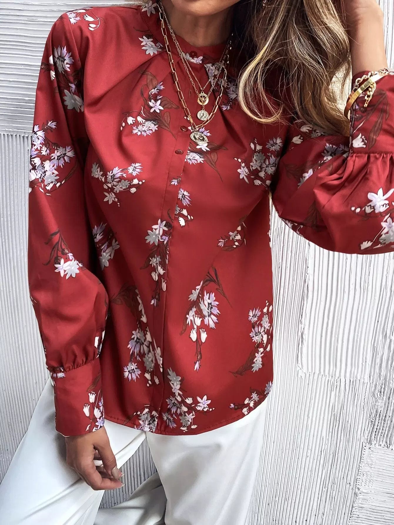 بلوزة مطبوع عليها أزرار مطبوع عليها أزهار