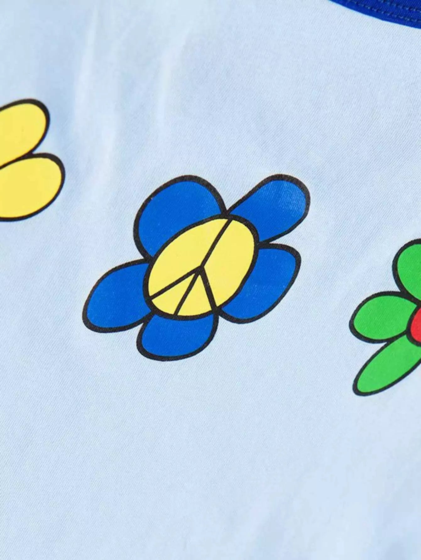 بلوزة كمي بطبعة زهور بطبعة زهور بلون مغاير
