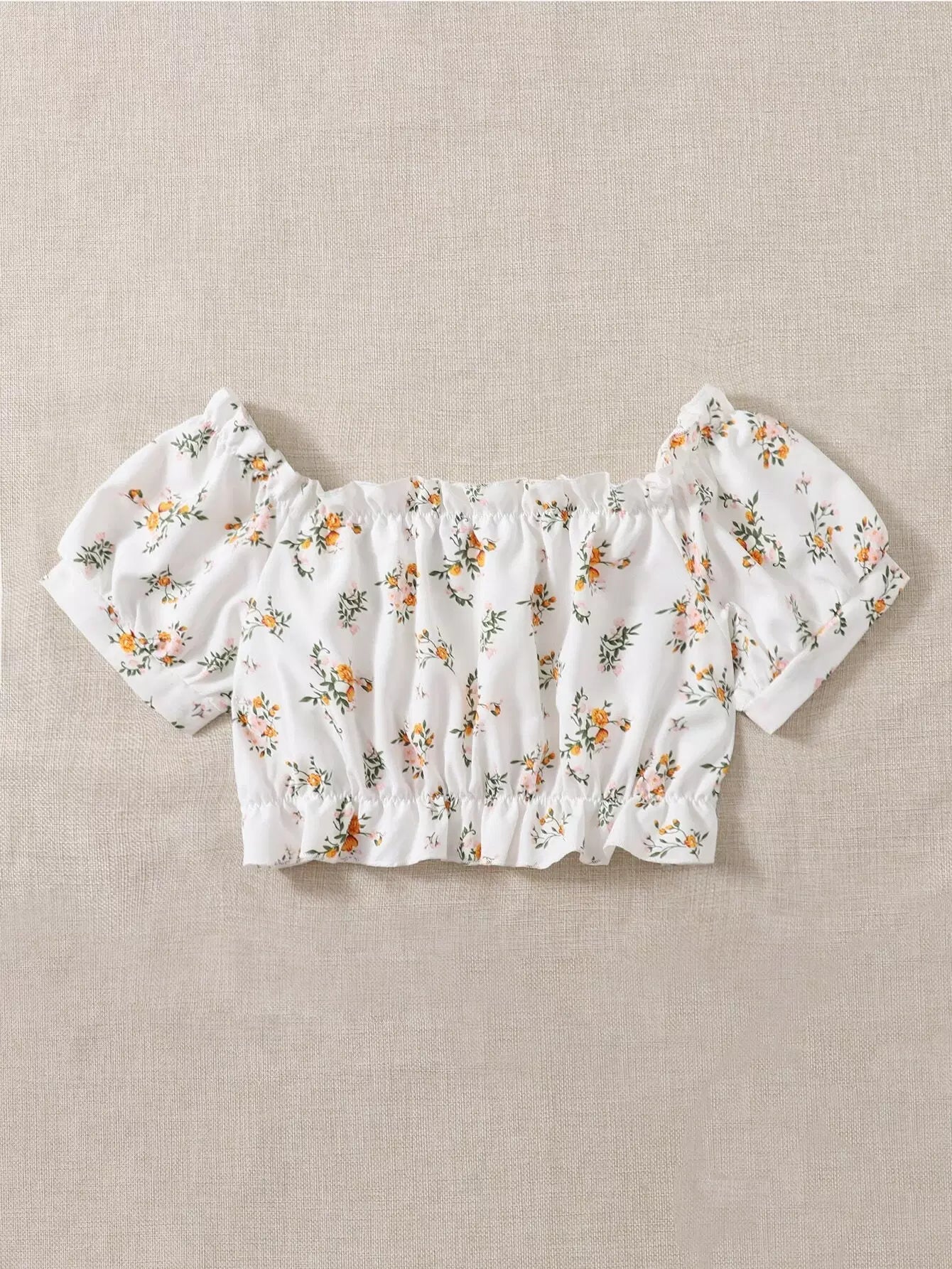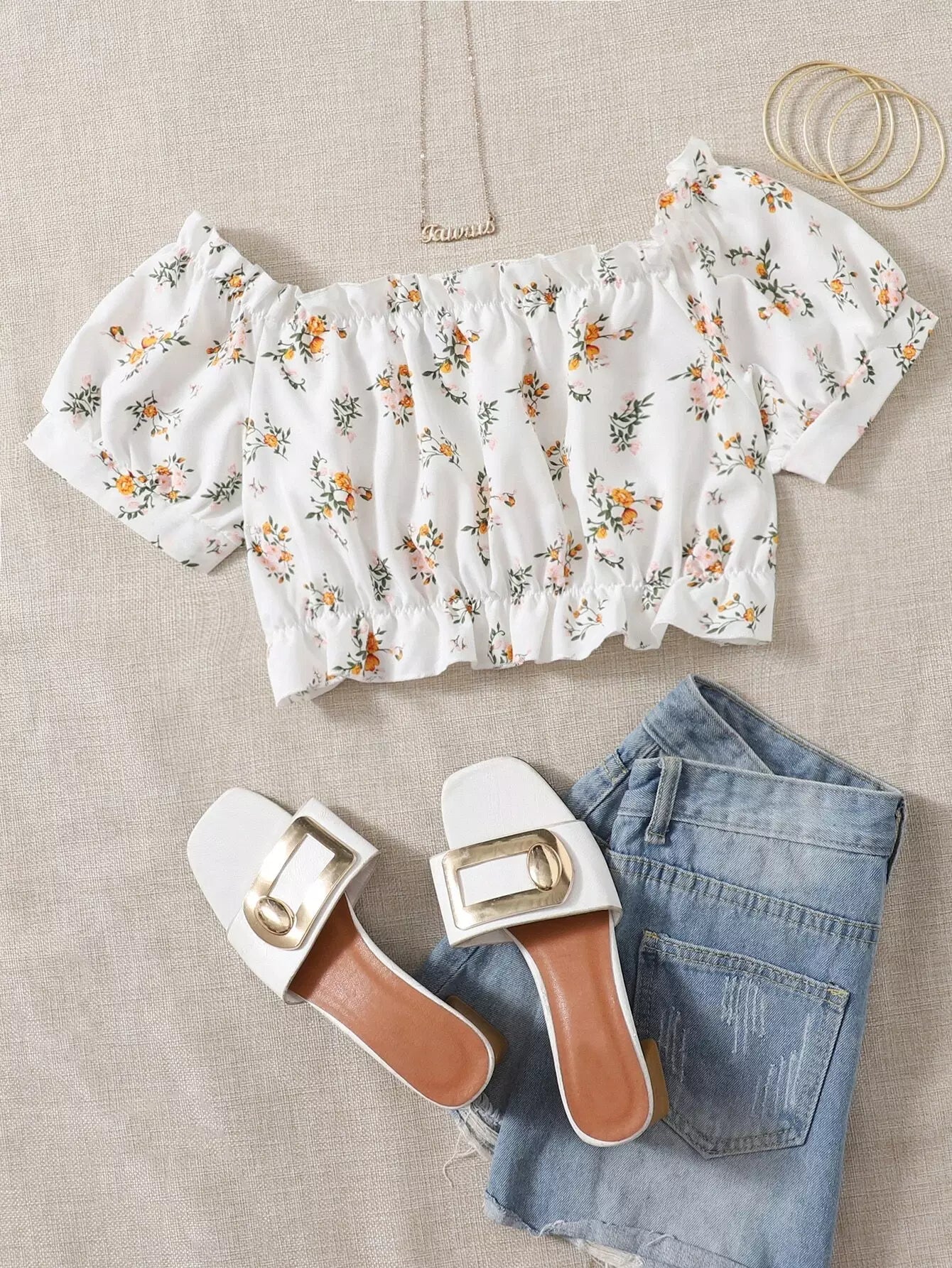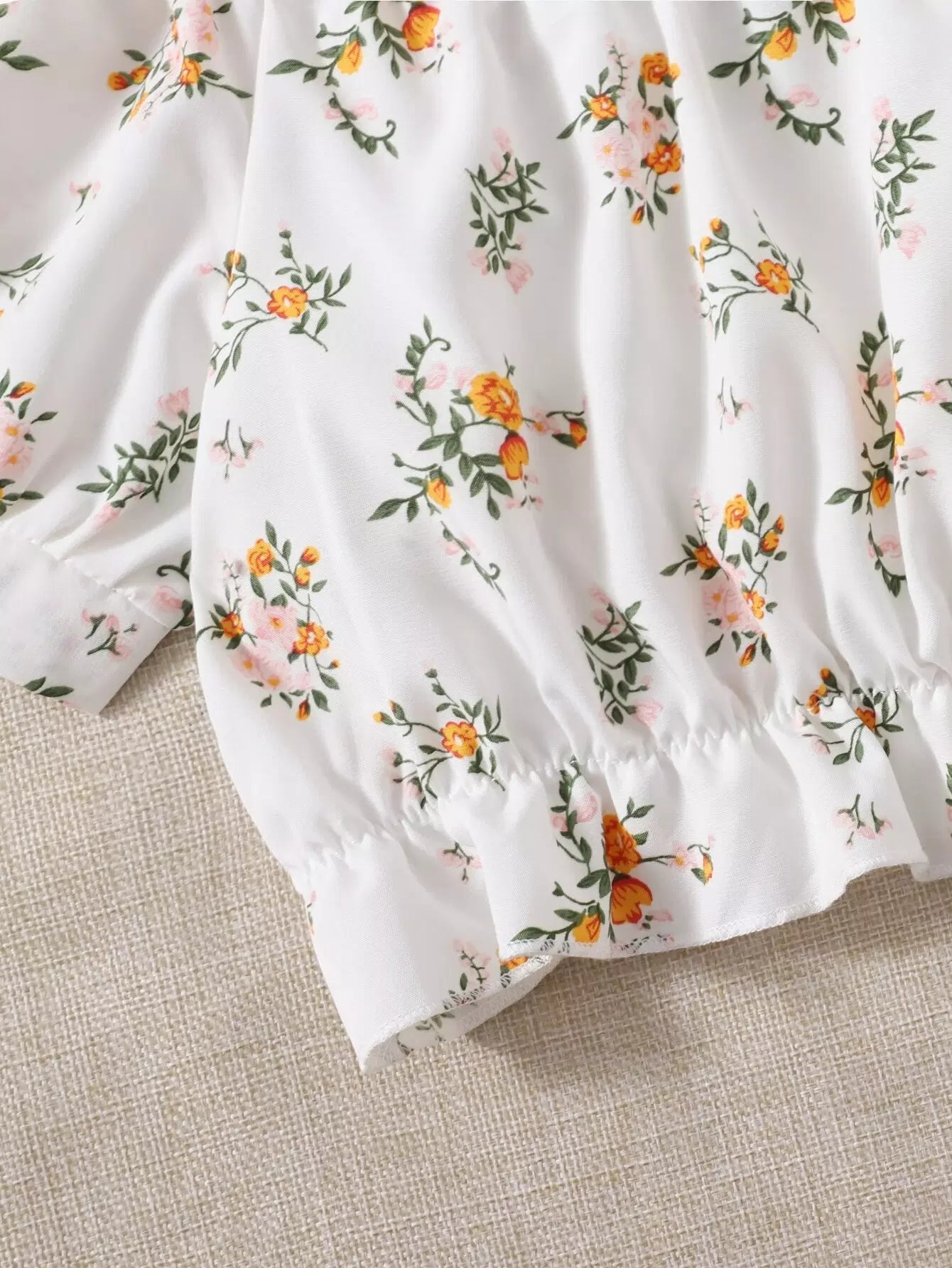 بلوزة بحواف كشكش مطبوع عليها زهور