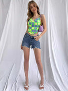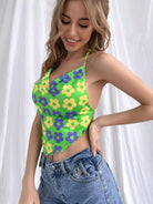 بلوزة بطبعة زهور مطبوع عليها عقدة من الخلف رسن