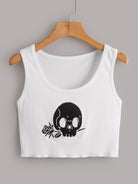 للنساء - بلوزة بدون أكمام مضلعة مطرزة بالزهور والجمجمة