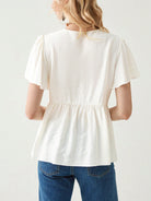 بلوزة نسائية كاجوال فضفاضة من Florisole بفتحة رقبة على شكل حرف V وأكمام واسعة مزينة بكشكشة مطرزة، ربيع/صيف