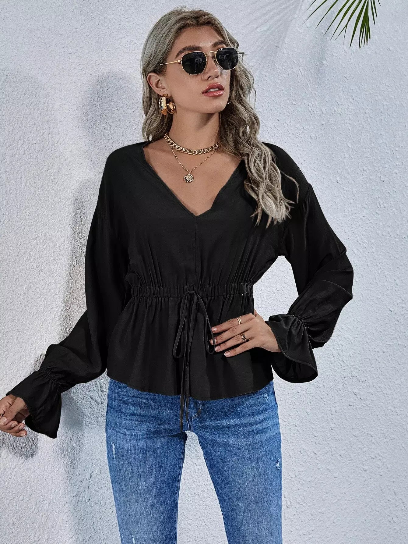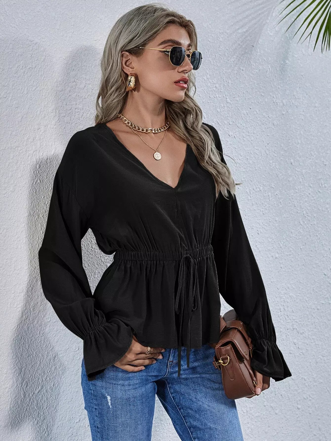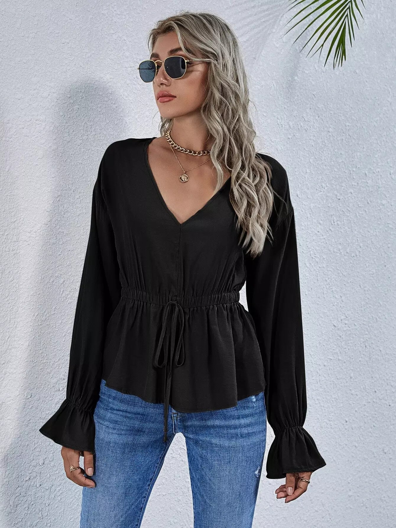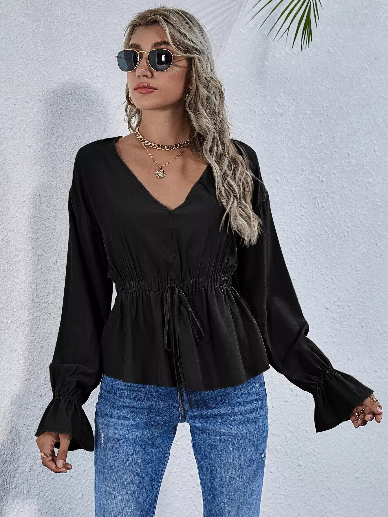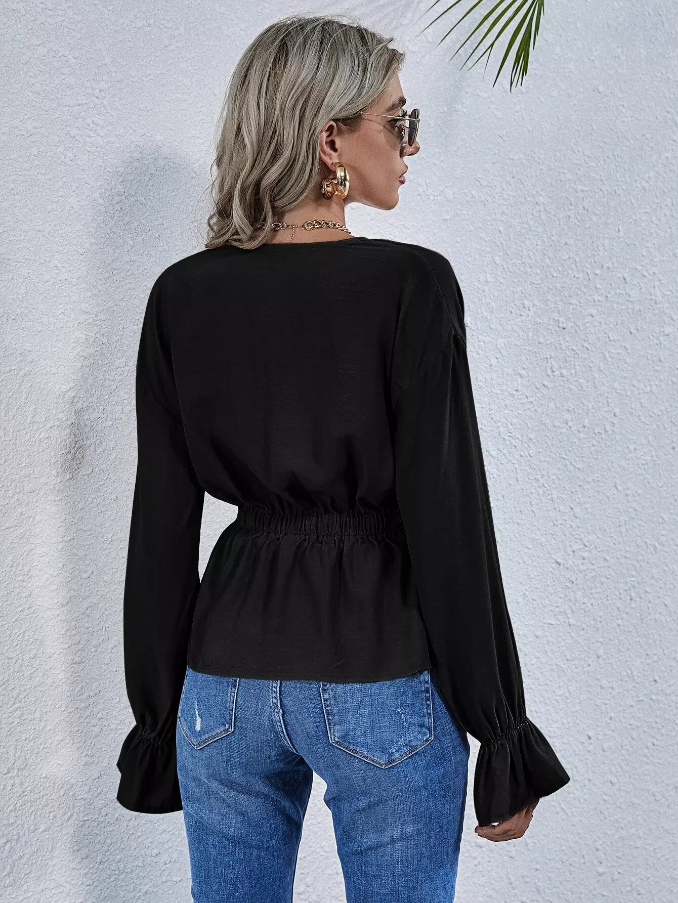 للنساء - بلوزة بيبلوم معقودة بأكمام واسعة