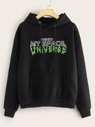 هودي بقبعة بقبعة برقائق معدنية ذات جيب كنغر بحرف لهب