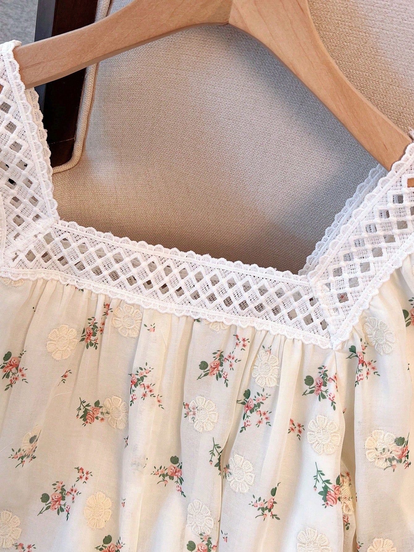 بلوزة فرانكليا الأنيقة ذات التطريز الزهري الرومانسي، ذات الرقبة المربعة والأكمام المنتفخة، من الدانتيل المتباين، باللون الأبيض