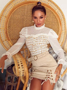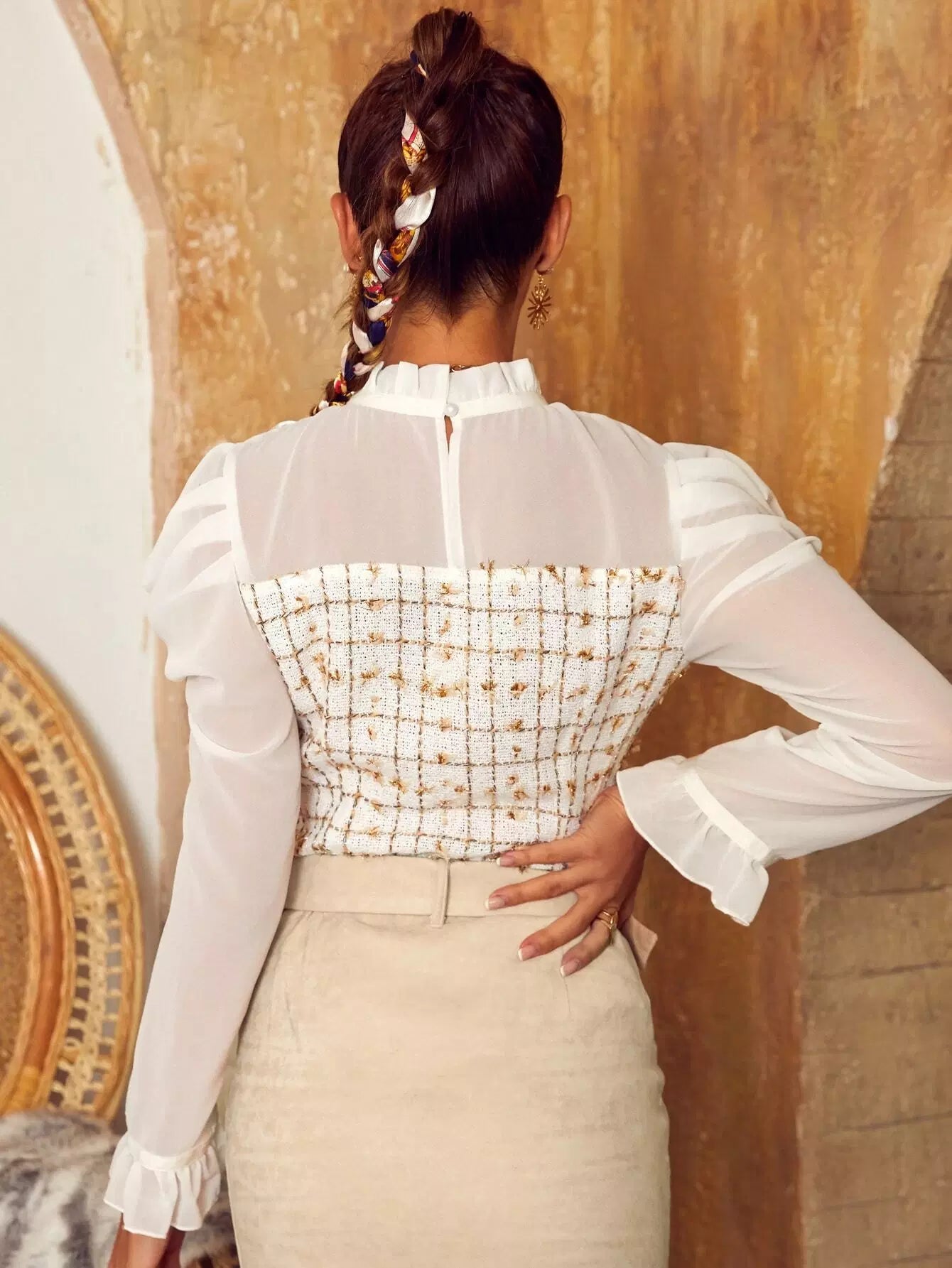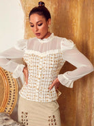 توب تويد كشكش بأزرار أمامية منقوشة بأزرار منقوشة