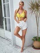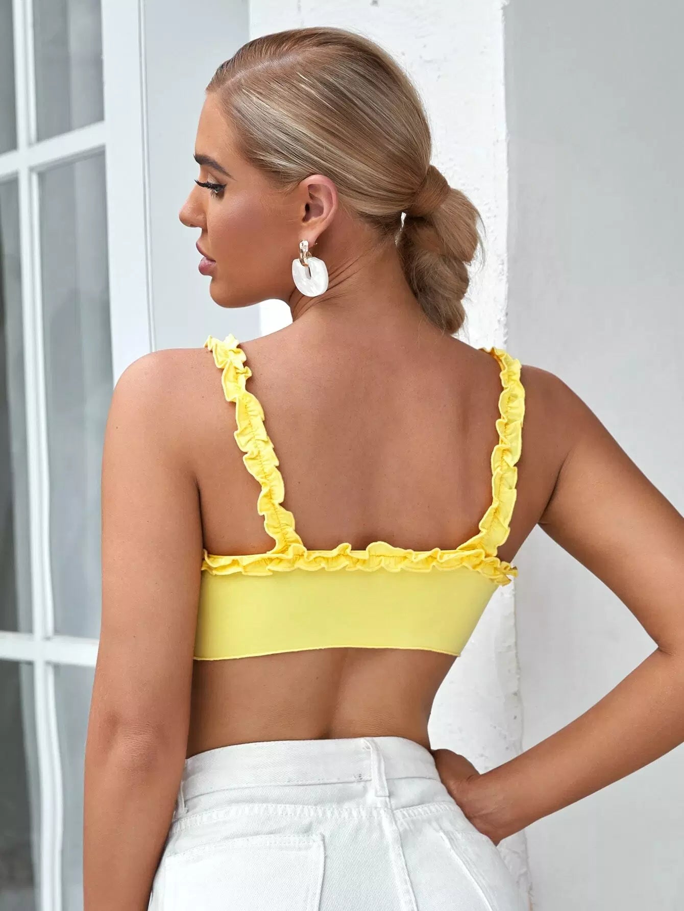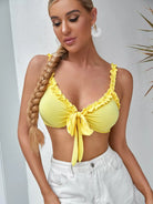 بلوزة كشكش مزينة بعقدة أمامية بقصّة قصيرة قصيرة للغاية