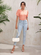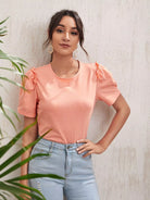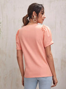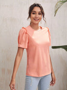 للنساء - تي شيرت بأكمام منتفخة ومزخرف بكشكشة