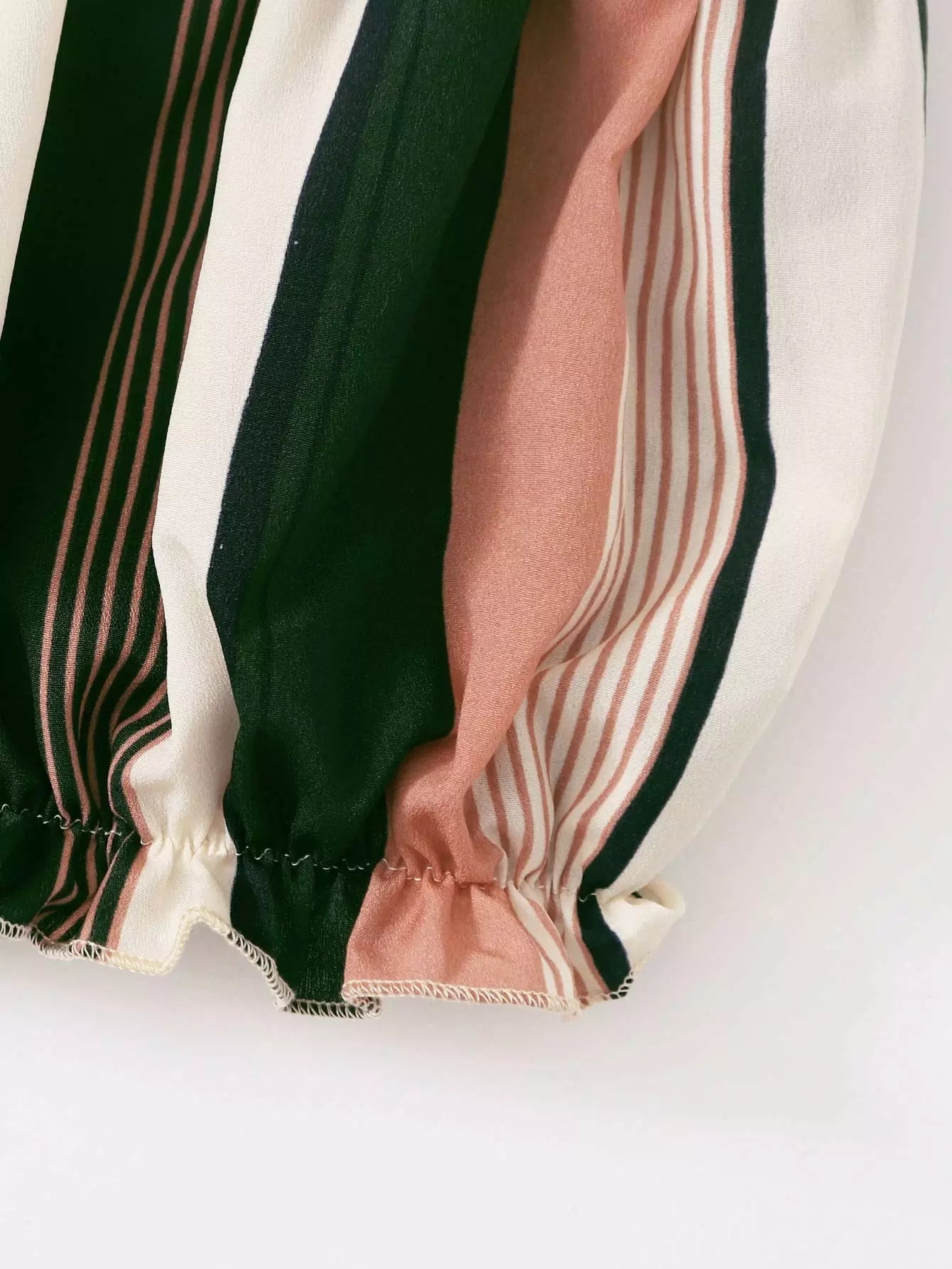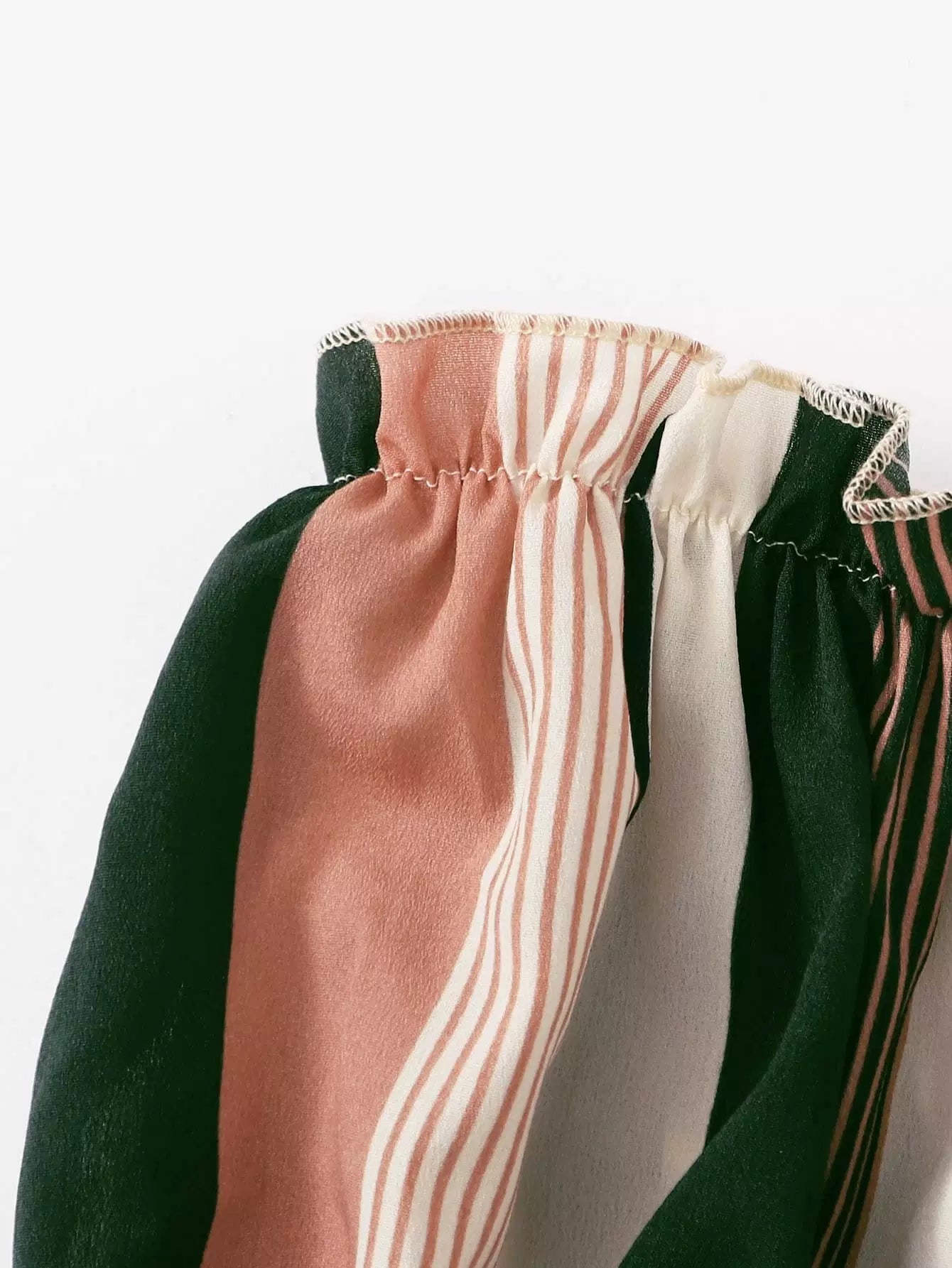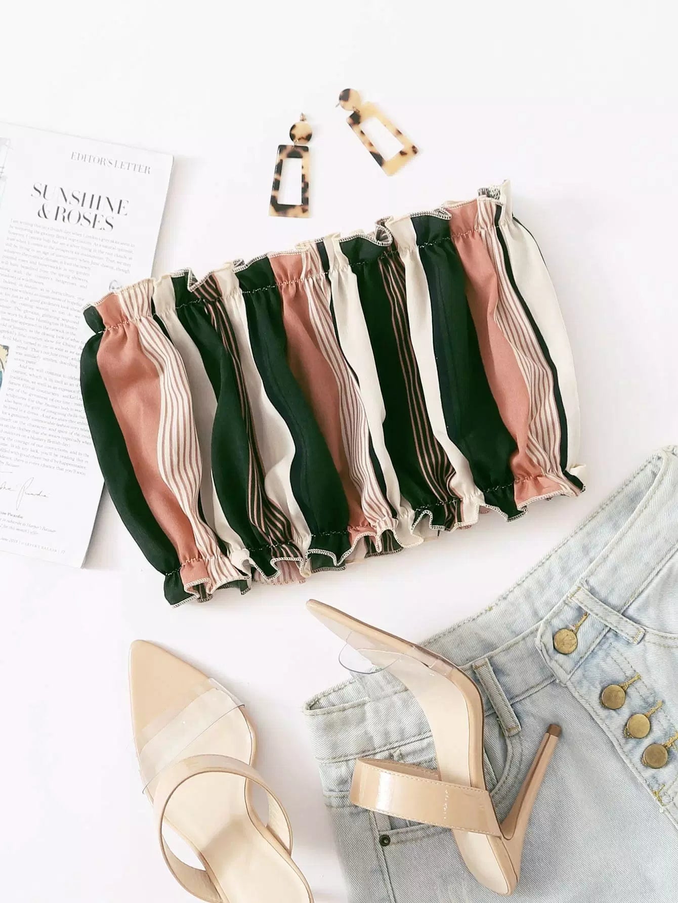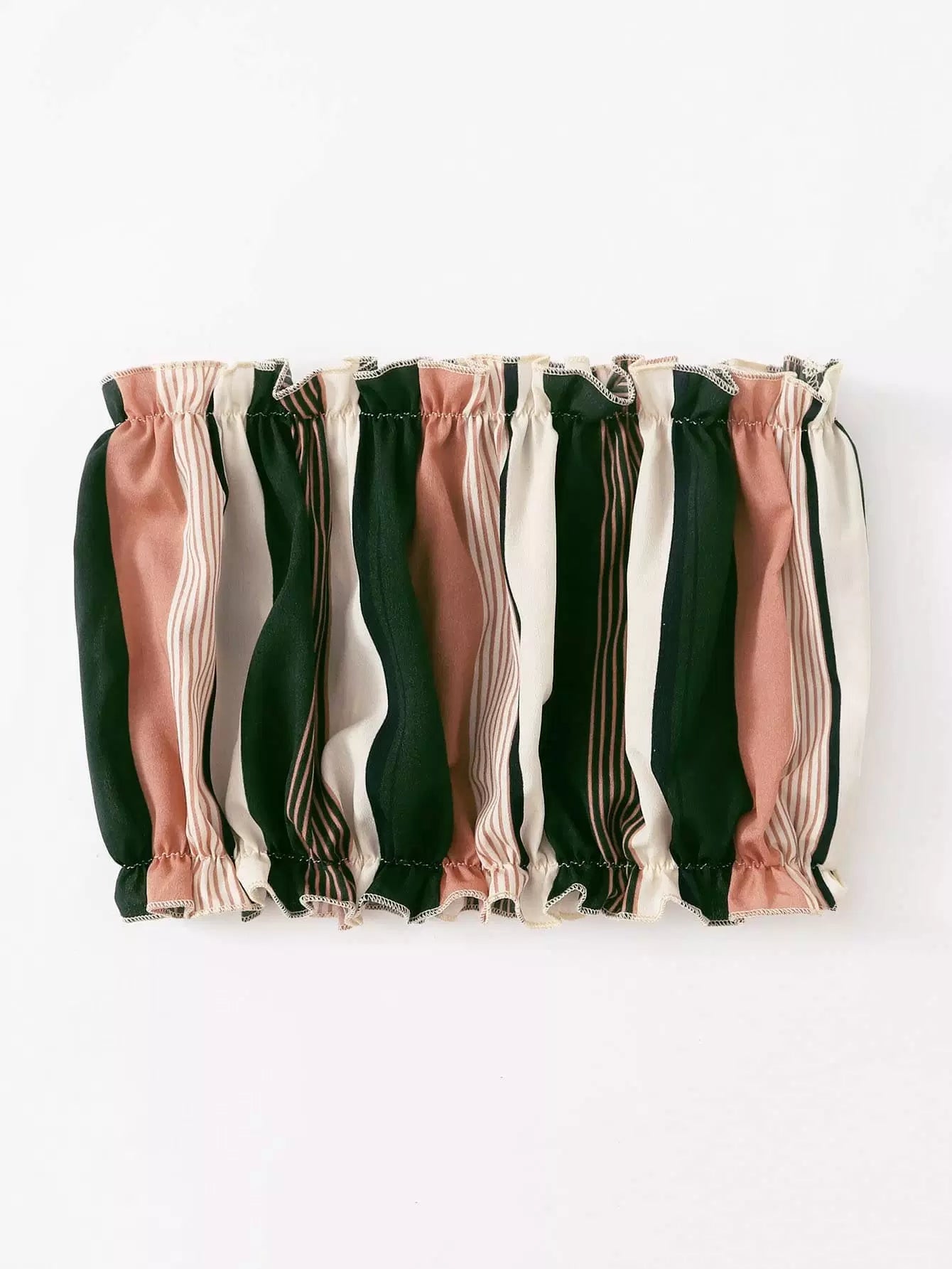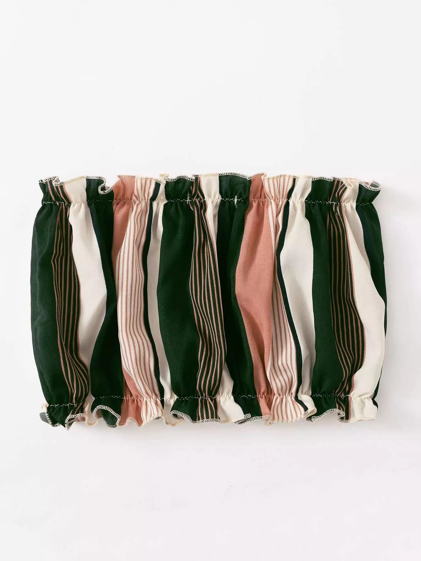 بلوزة أنبوبية مخططة ذات حافة مكشكشة وصدرية مكشكشة
