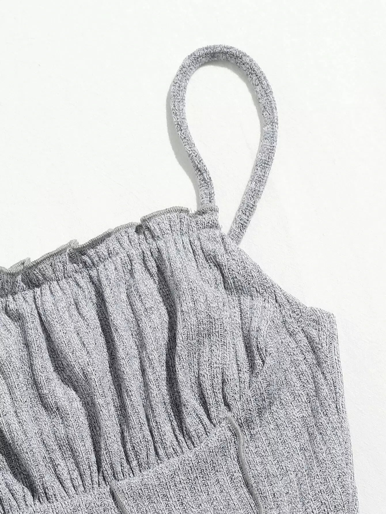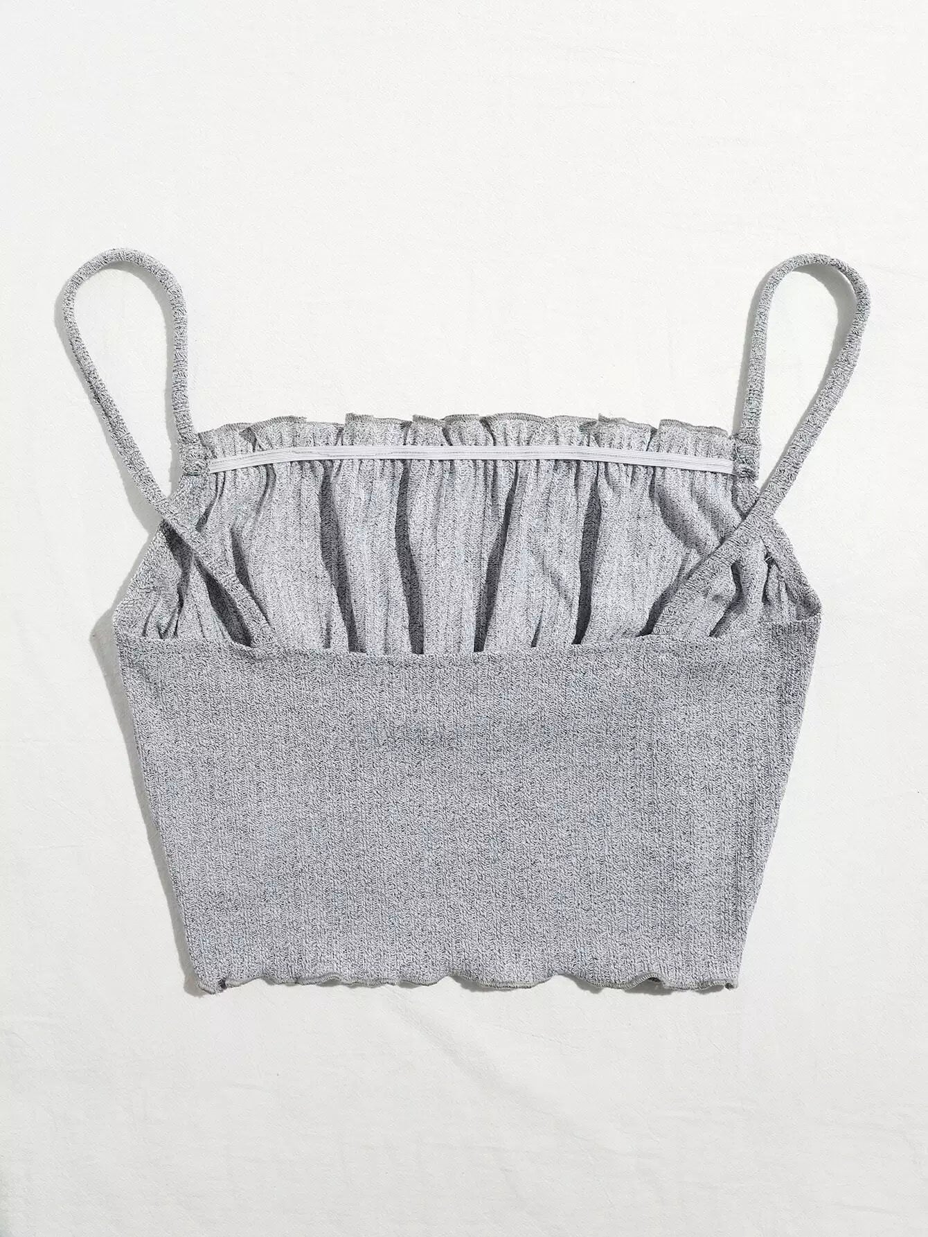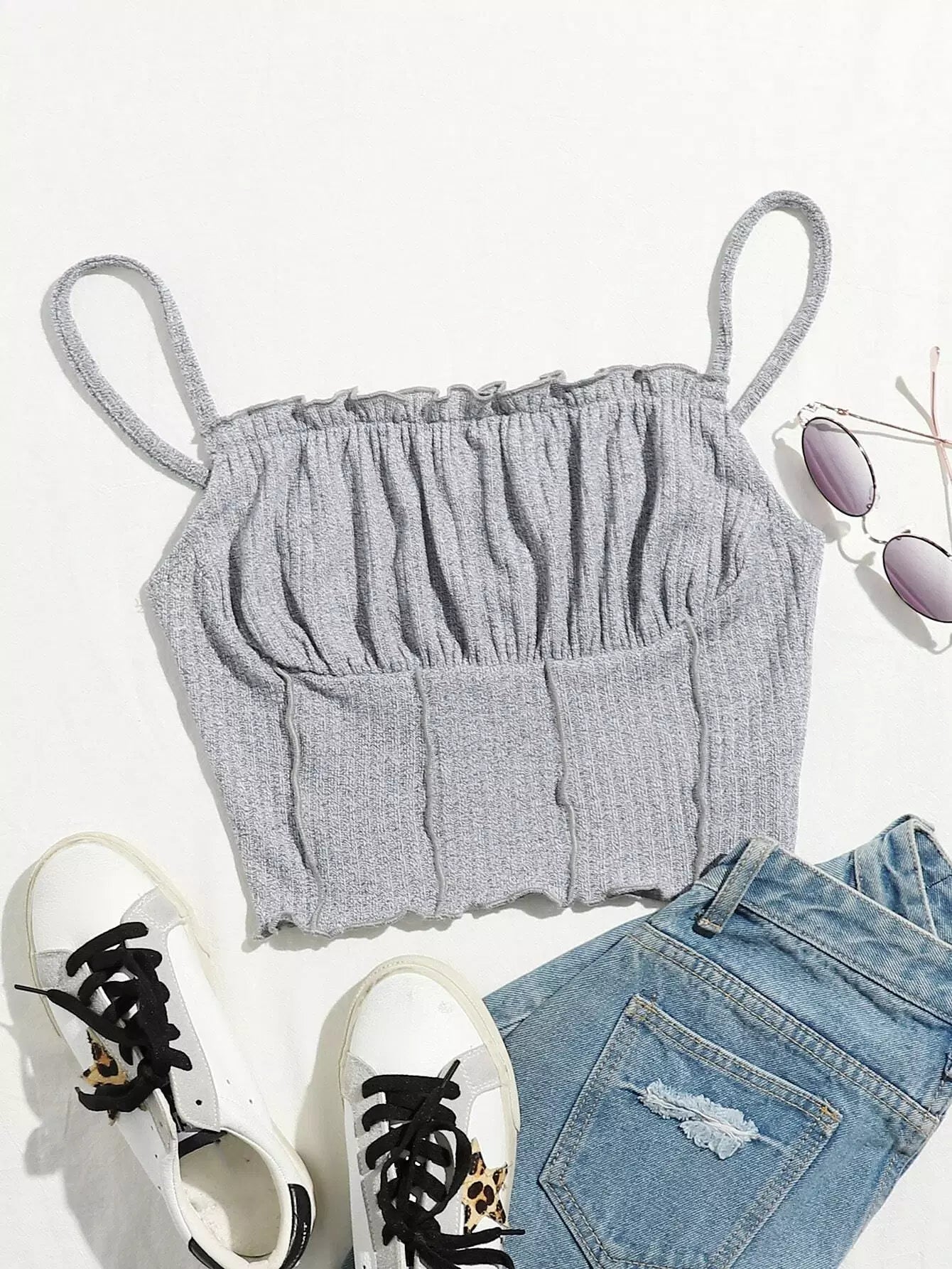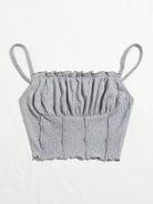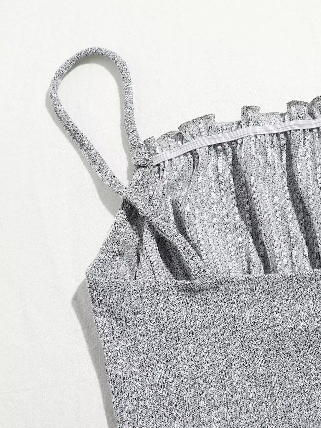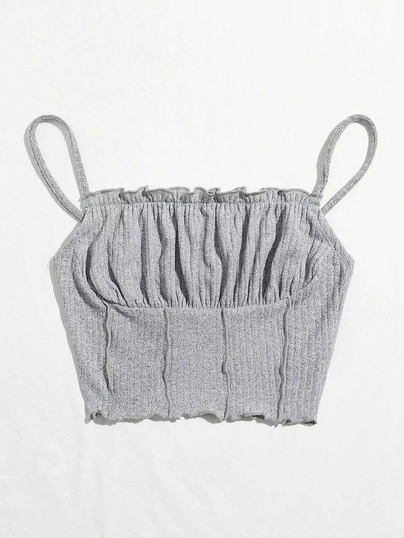 بلوزة كشكش بحواف مكشكشة بحياكة أمامية مضلعة ومحبوكة من الأمام