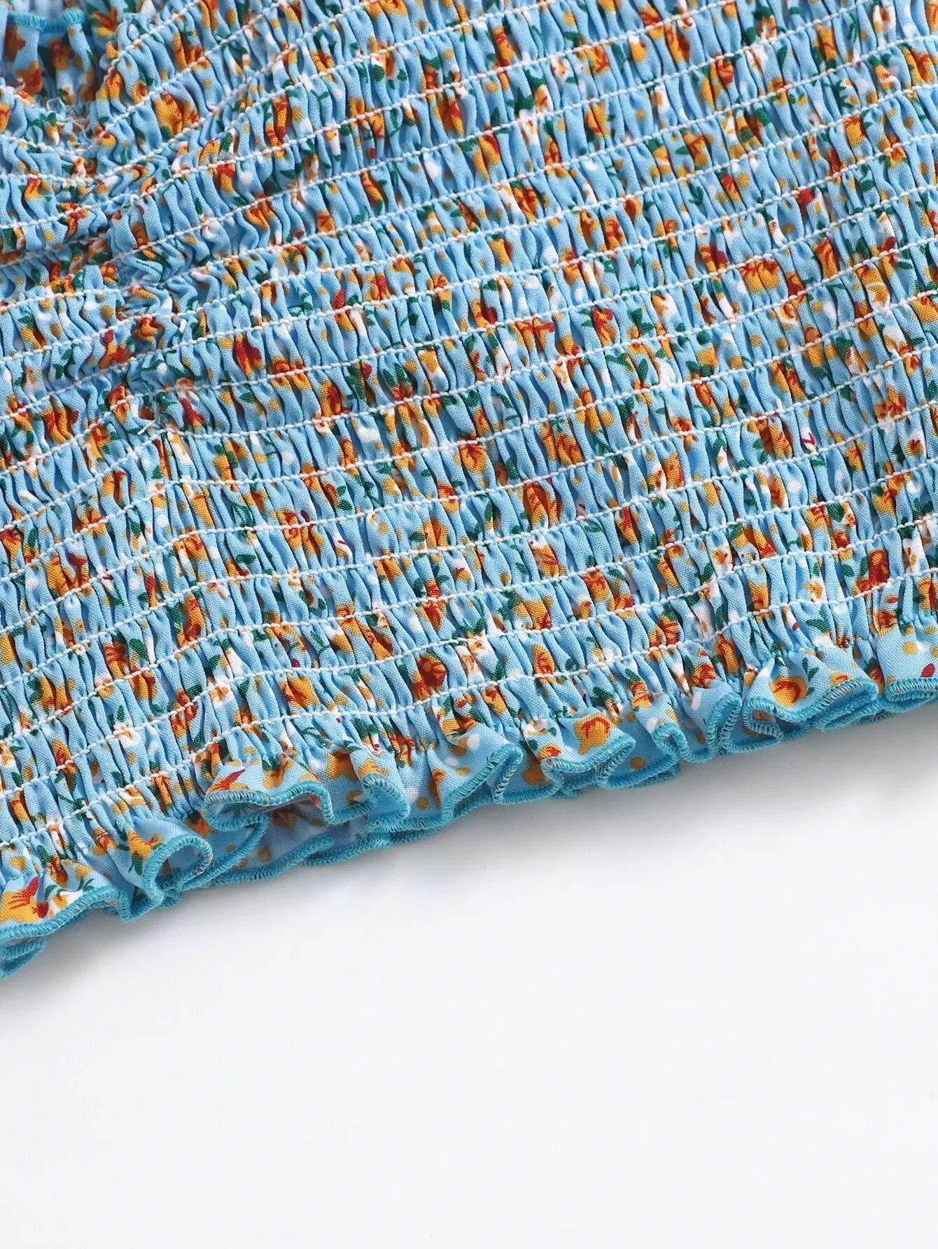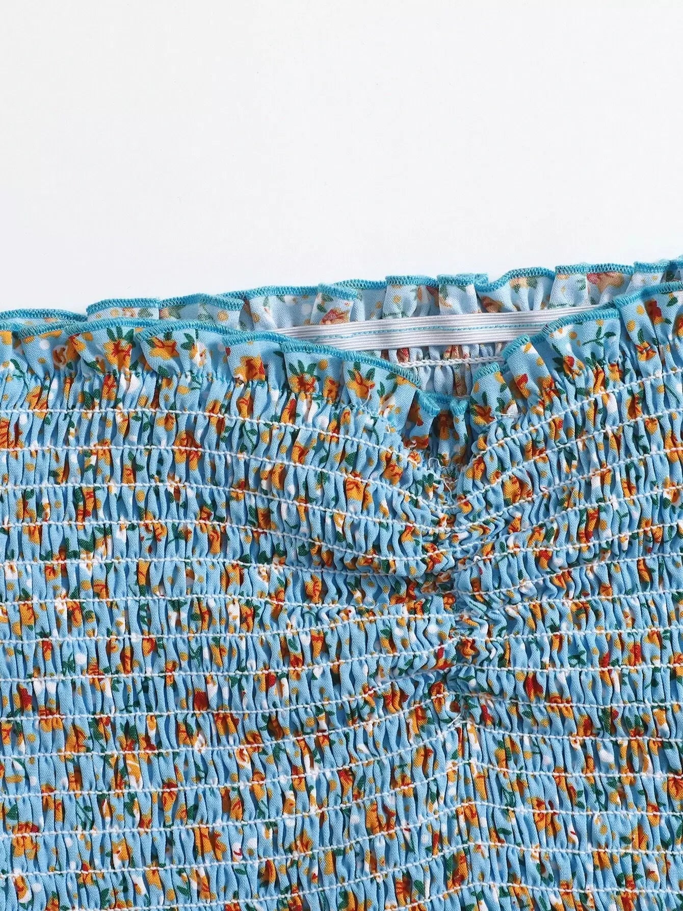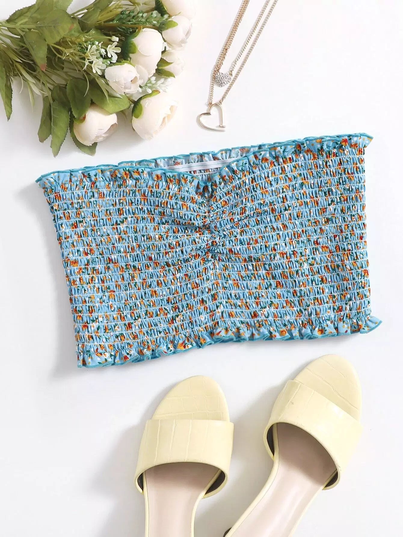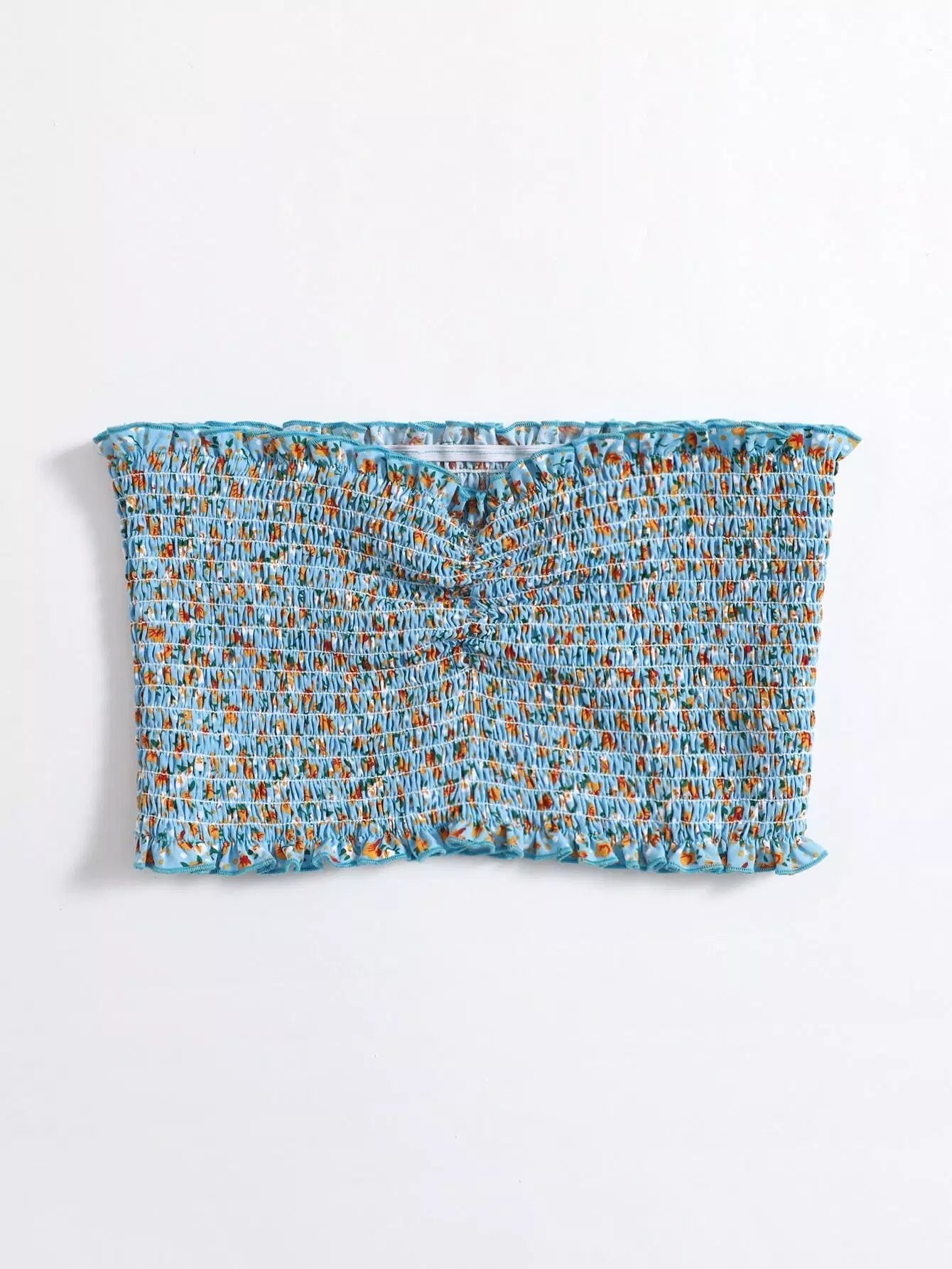 بلوزة أنبوبي بحواف كشكش مزركشة مزينة بطبعة زهور