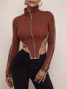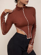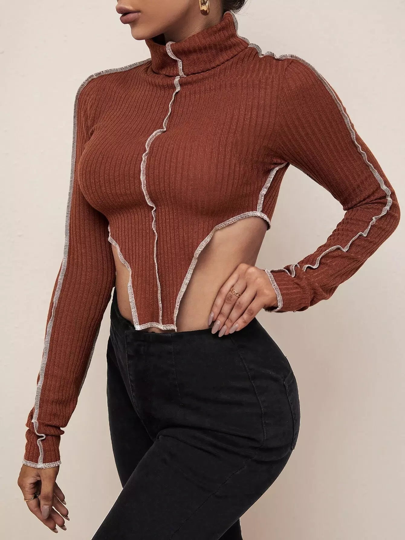 تي شيرت قصير برقبة قمعية بحاشية غير متماثلة ذات حواف غير متماثلة