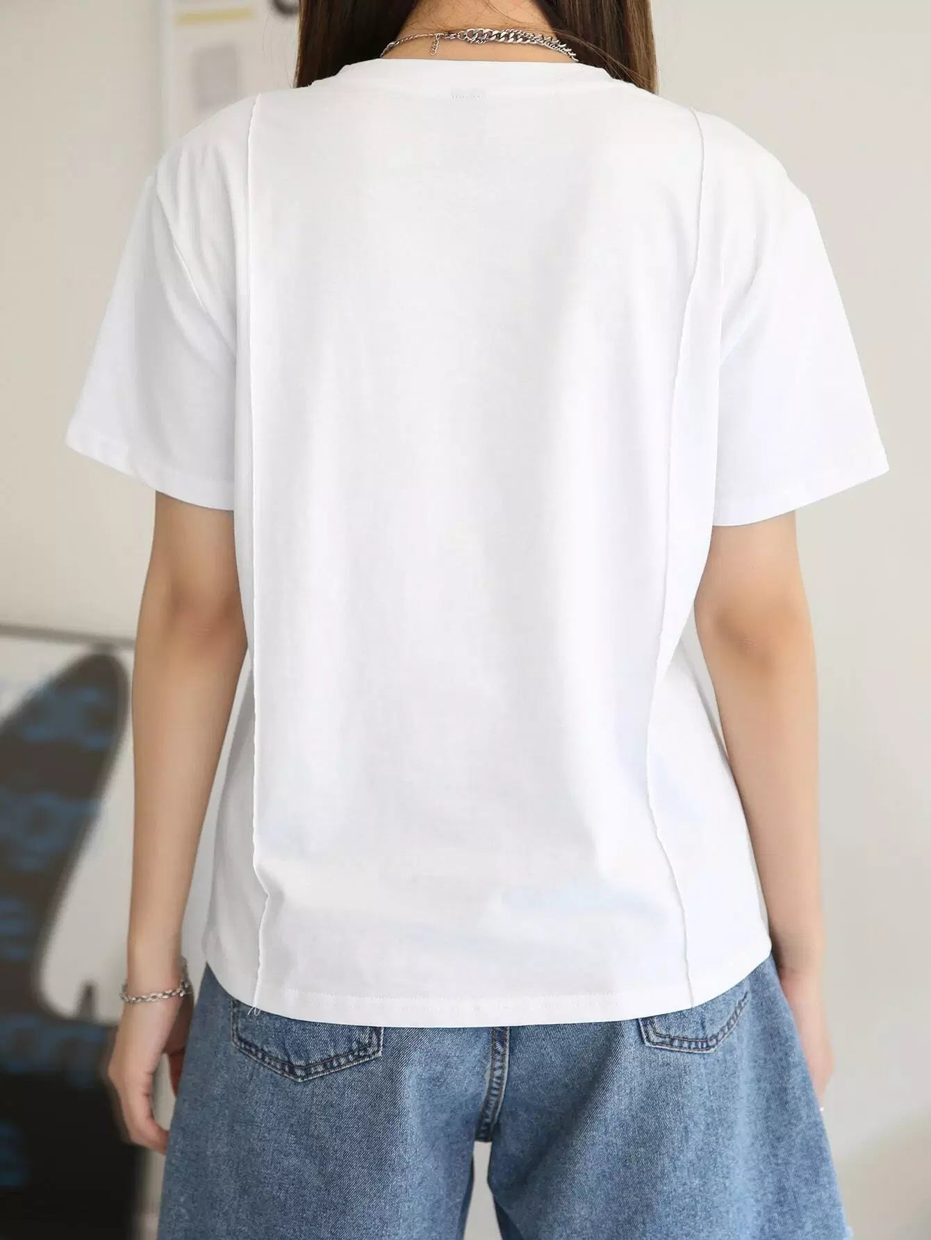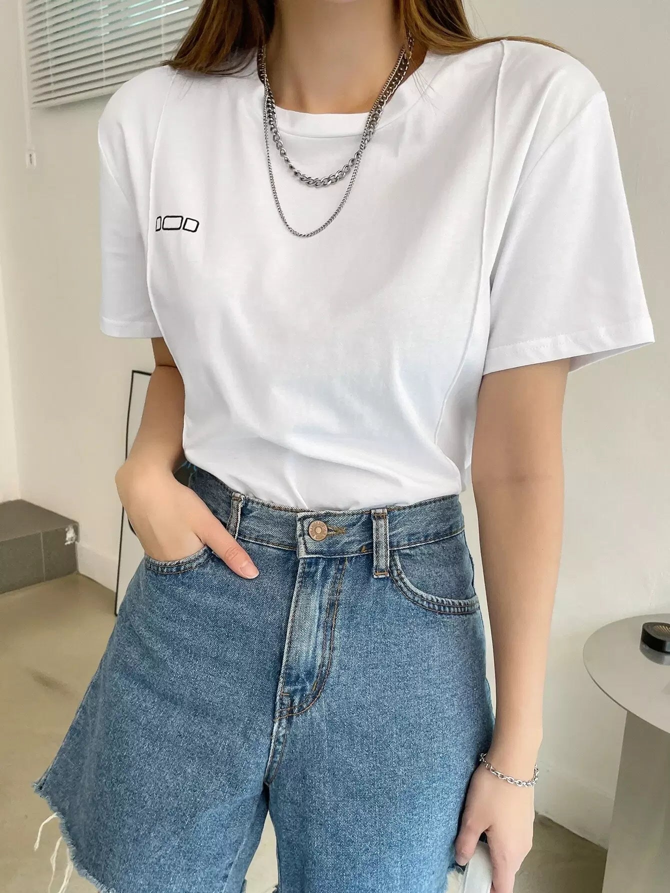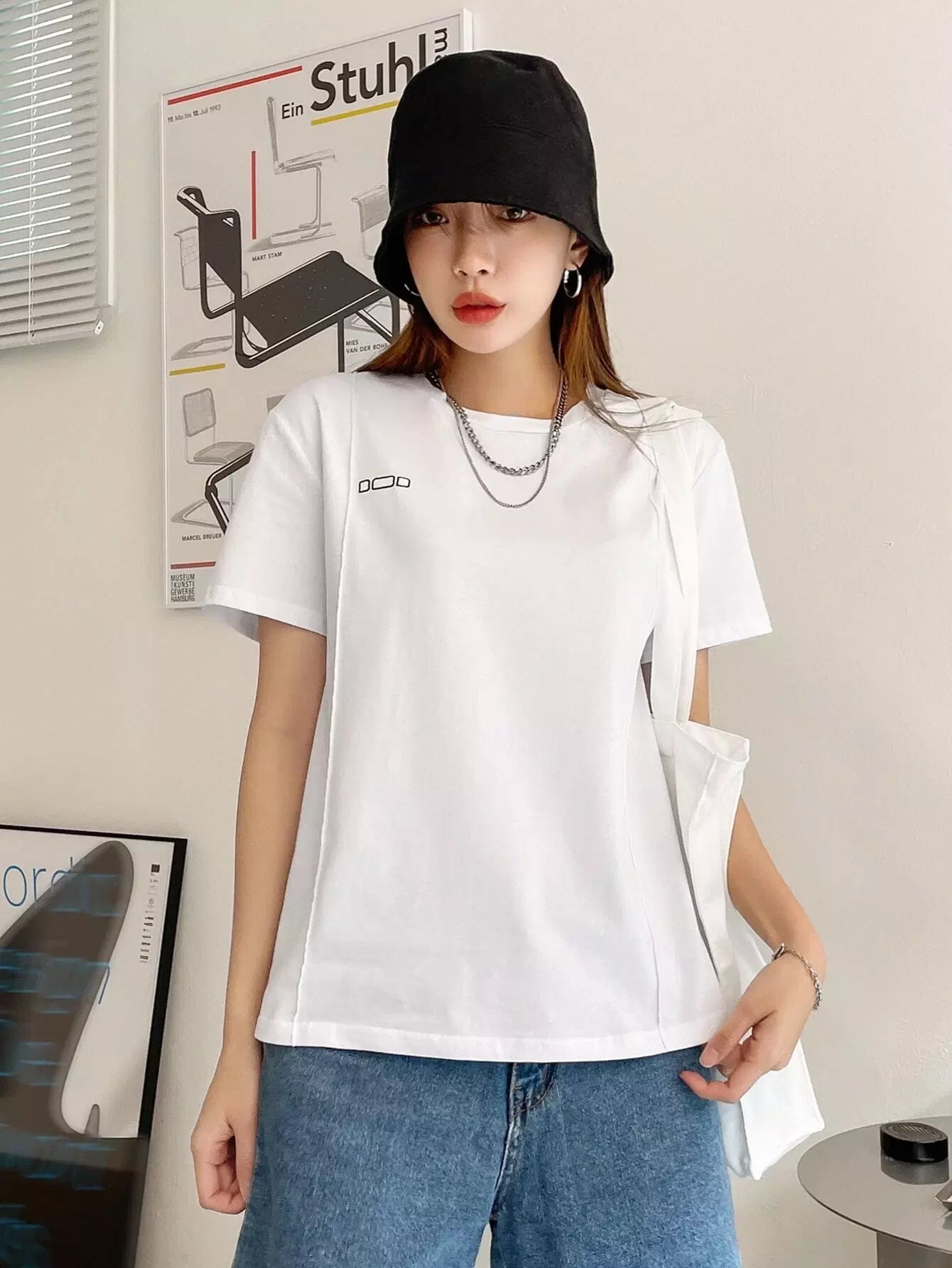 تي شيرت بطباعة هندسية وتفاصيل درزات