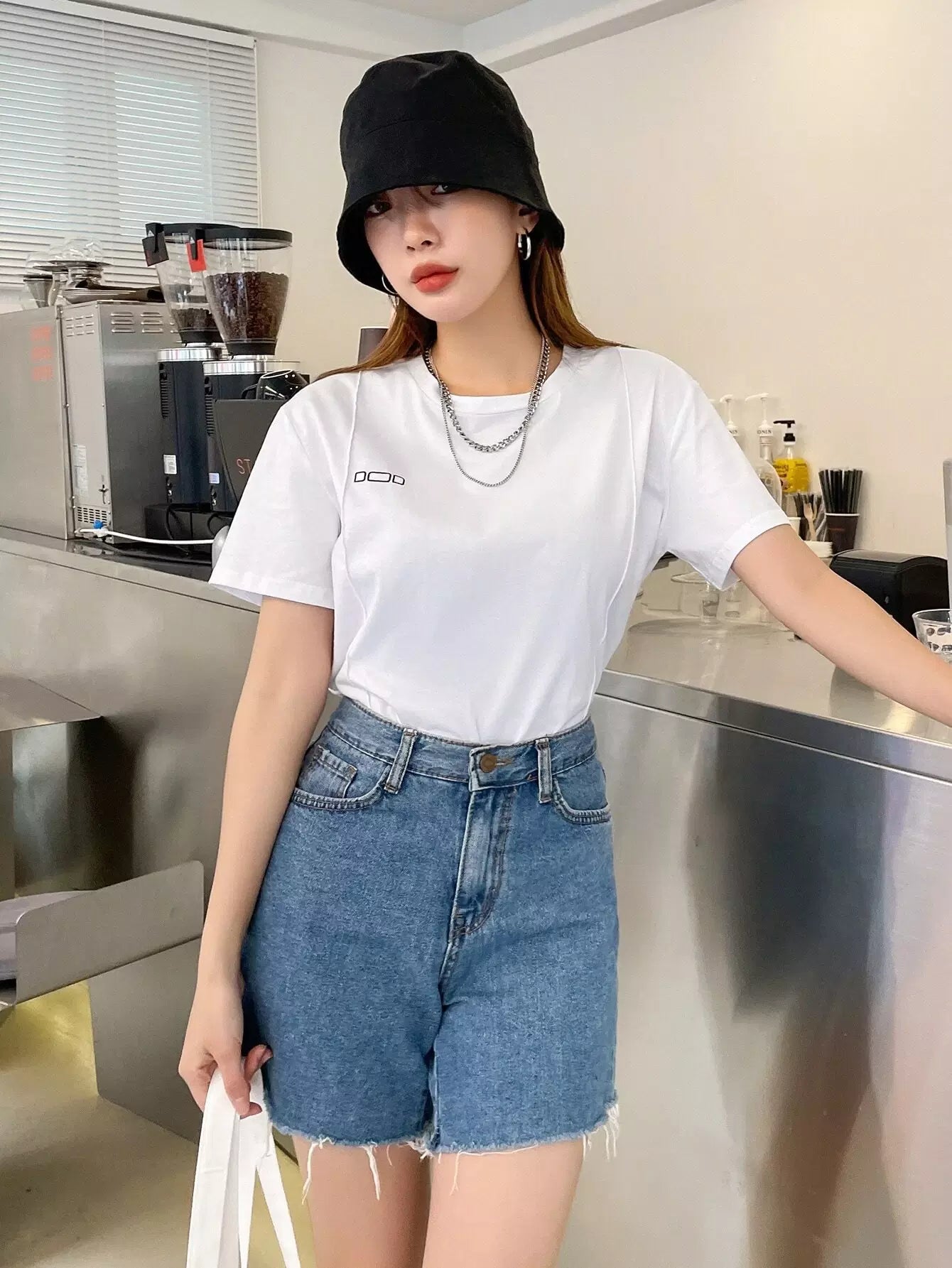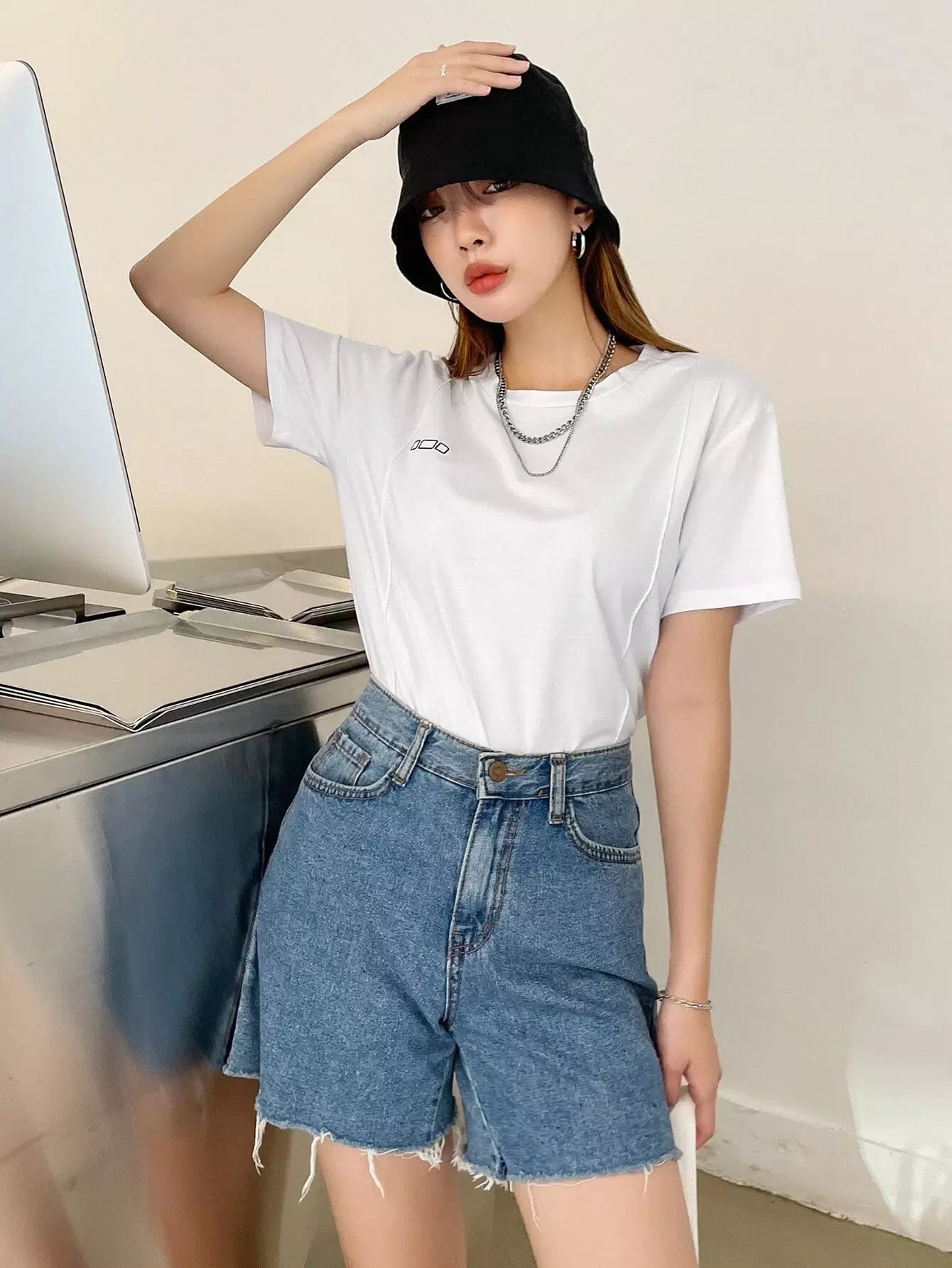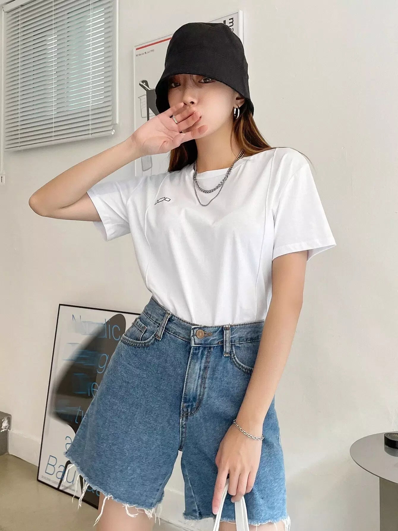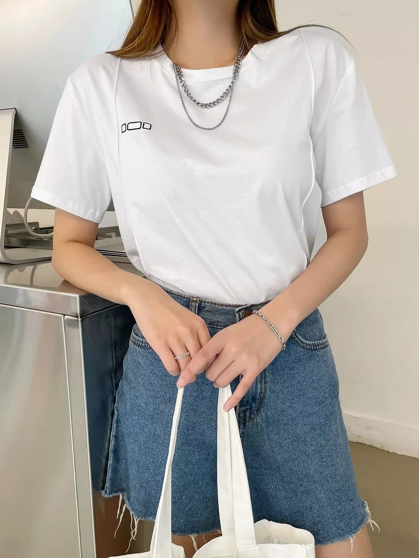 تي شيرت بطباعة هندسية وتفاصيل درزات