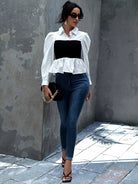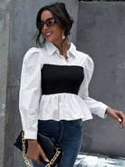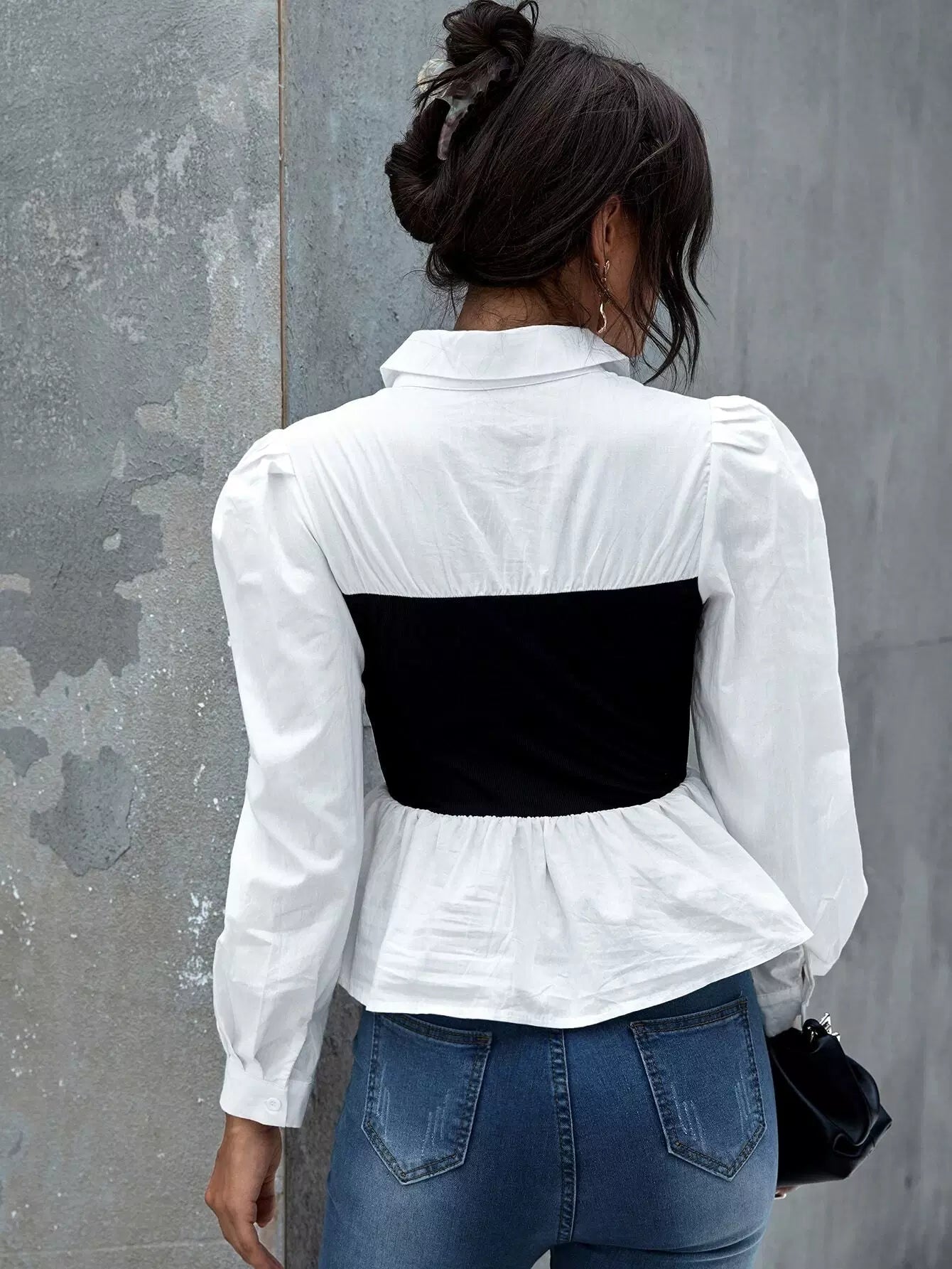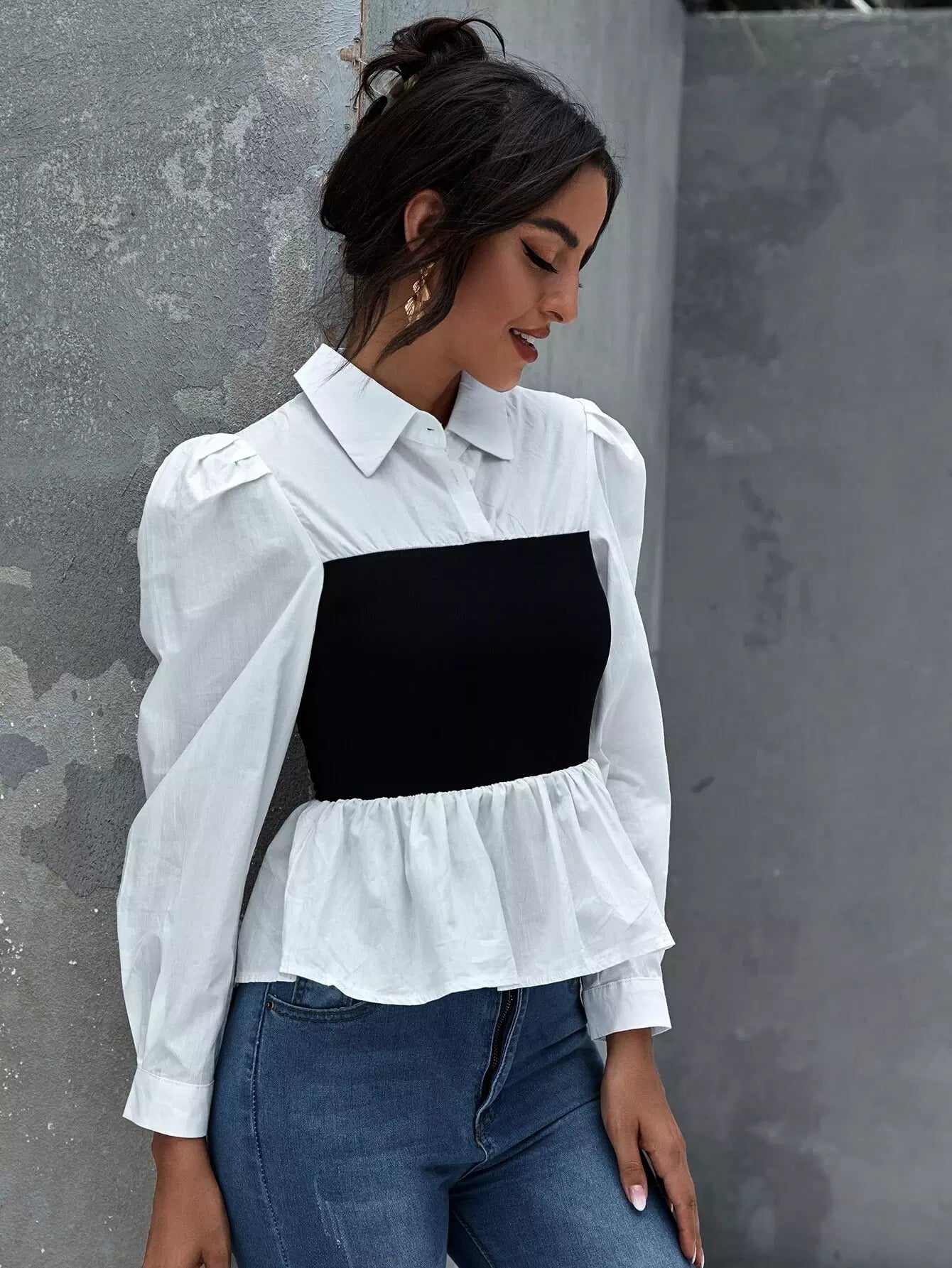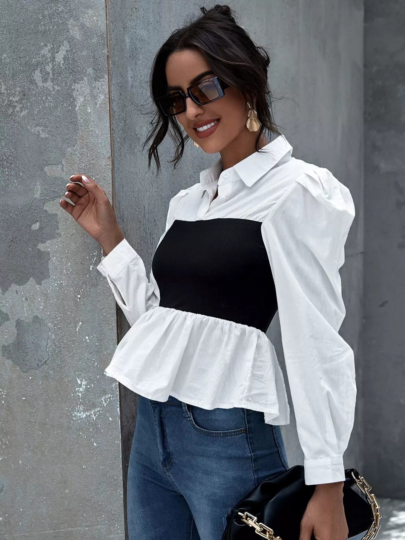 بلوزة ببلوم ثنائية اللون بأكمام من جيجوت