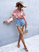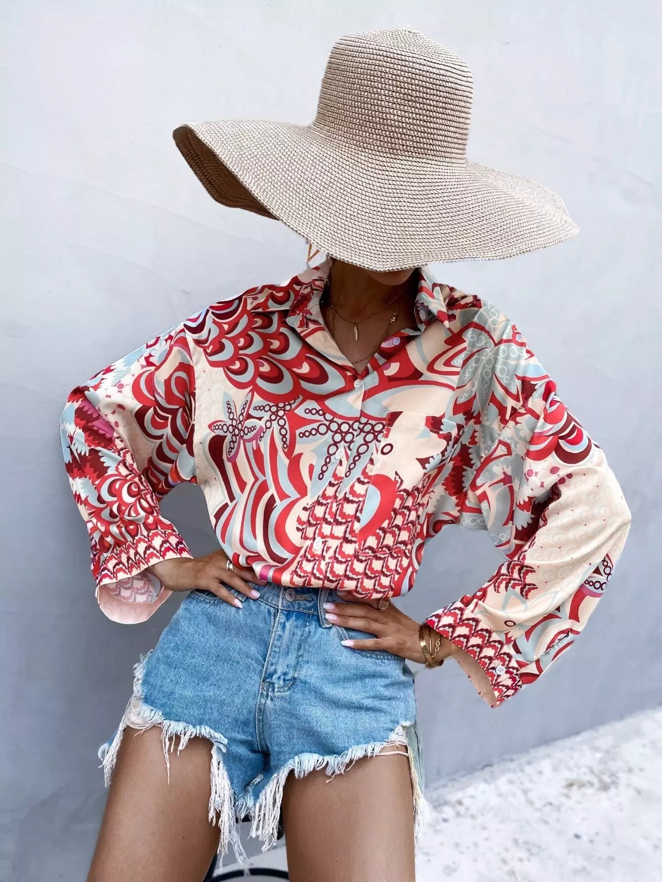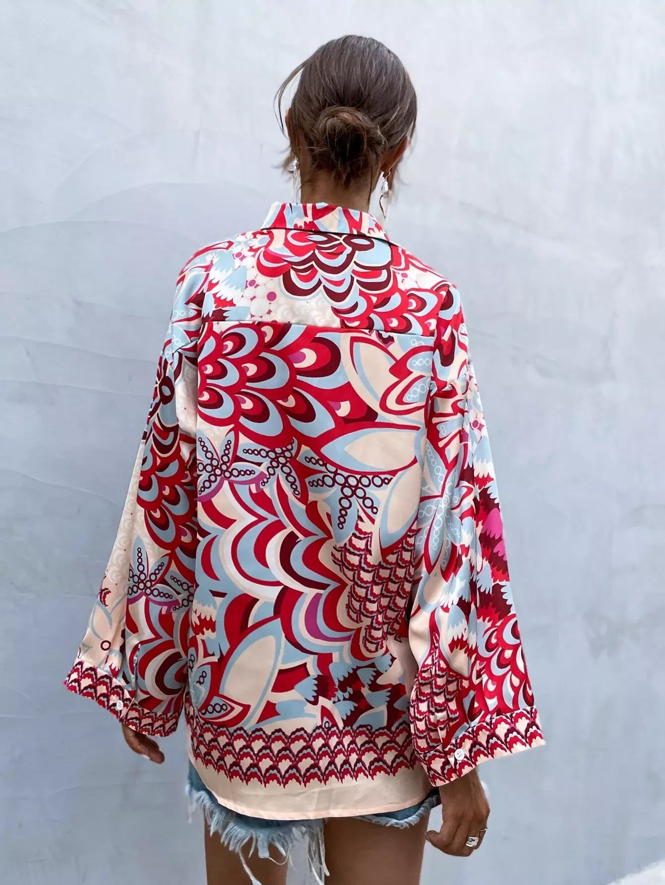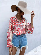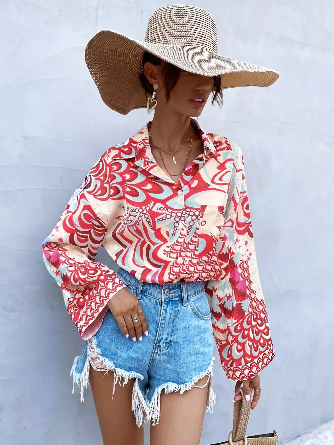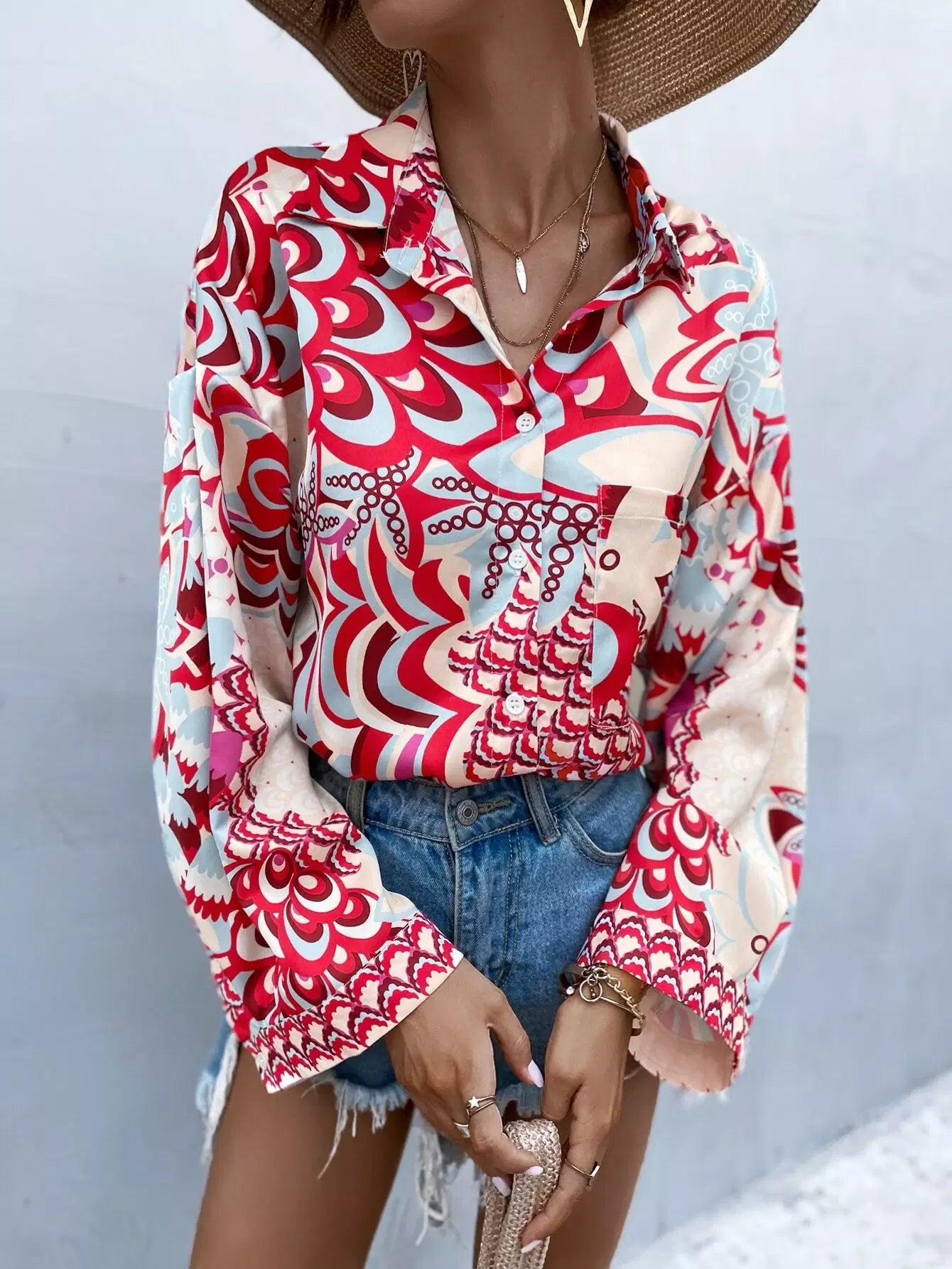 بلوزة بطبعة جرافيك مطبوع عليها جيب أمامي