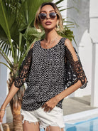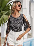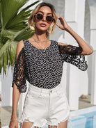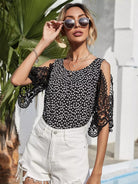 بلوزة ذات أكتاف باردة مخرمة من الدانتيل المخرم مزينة بالورود المخرمة
