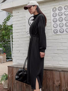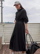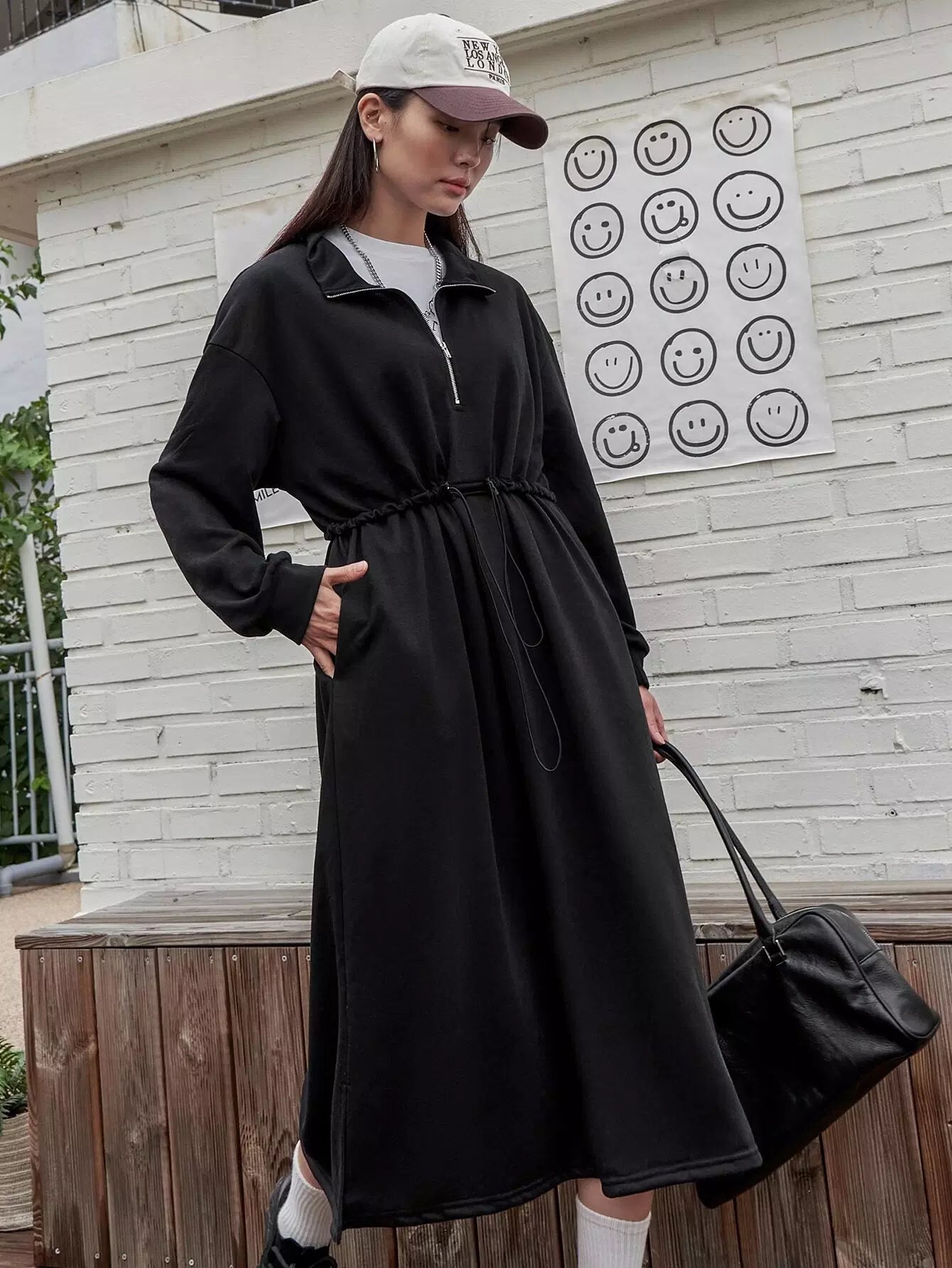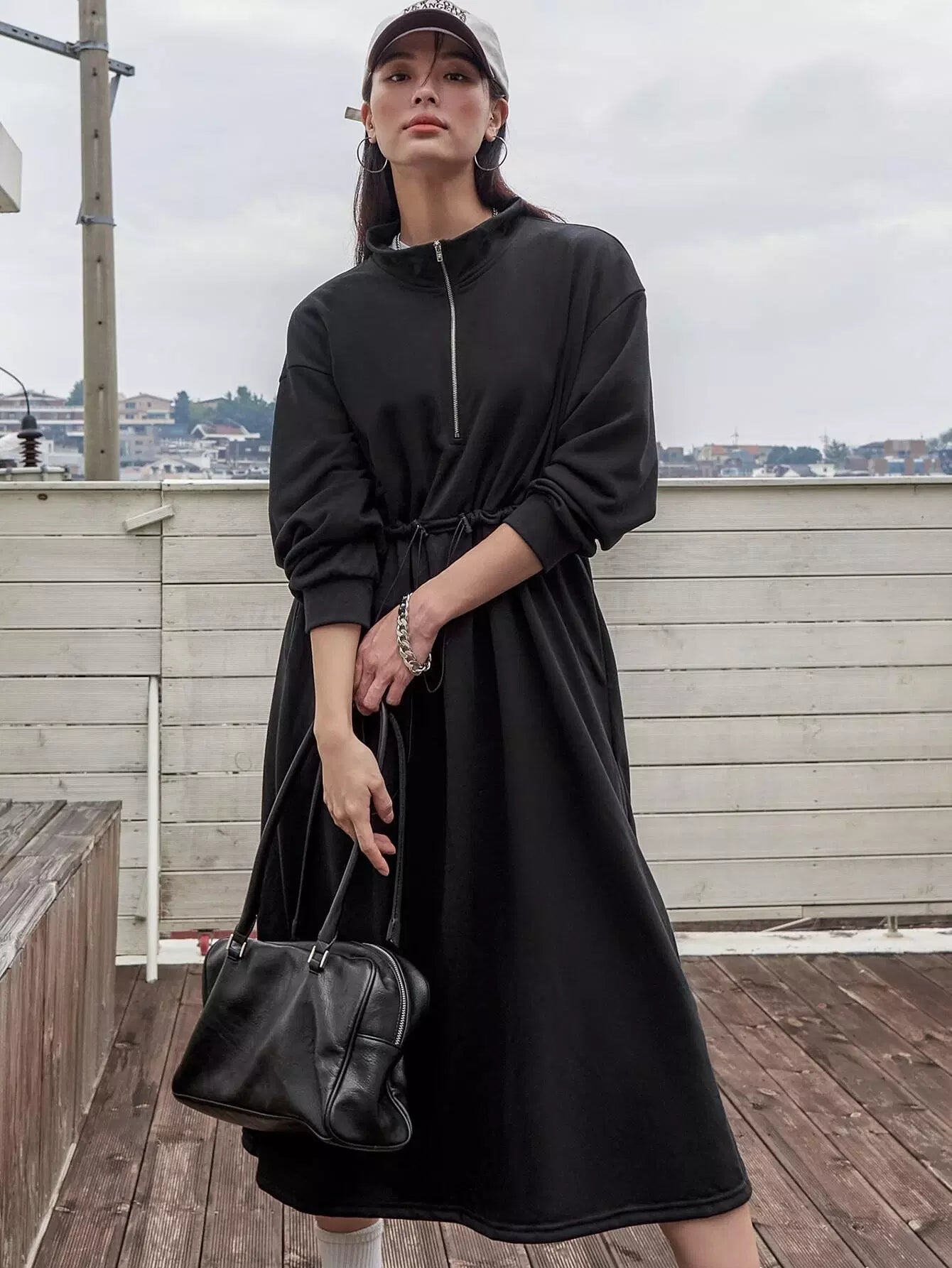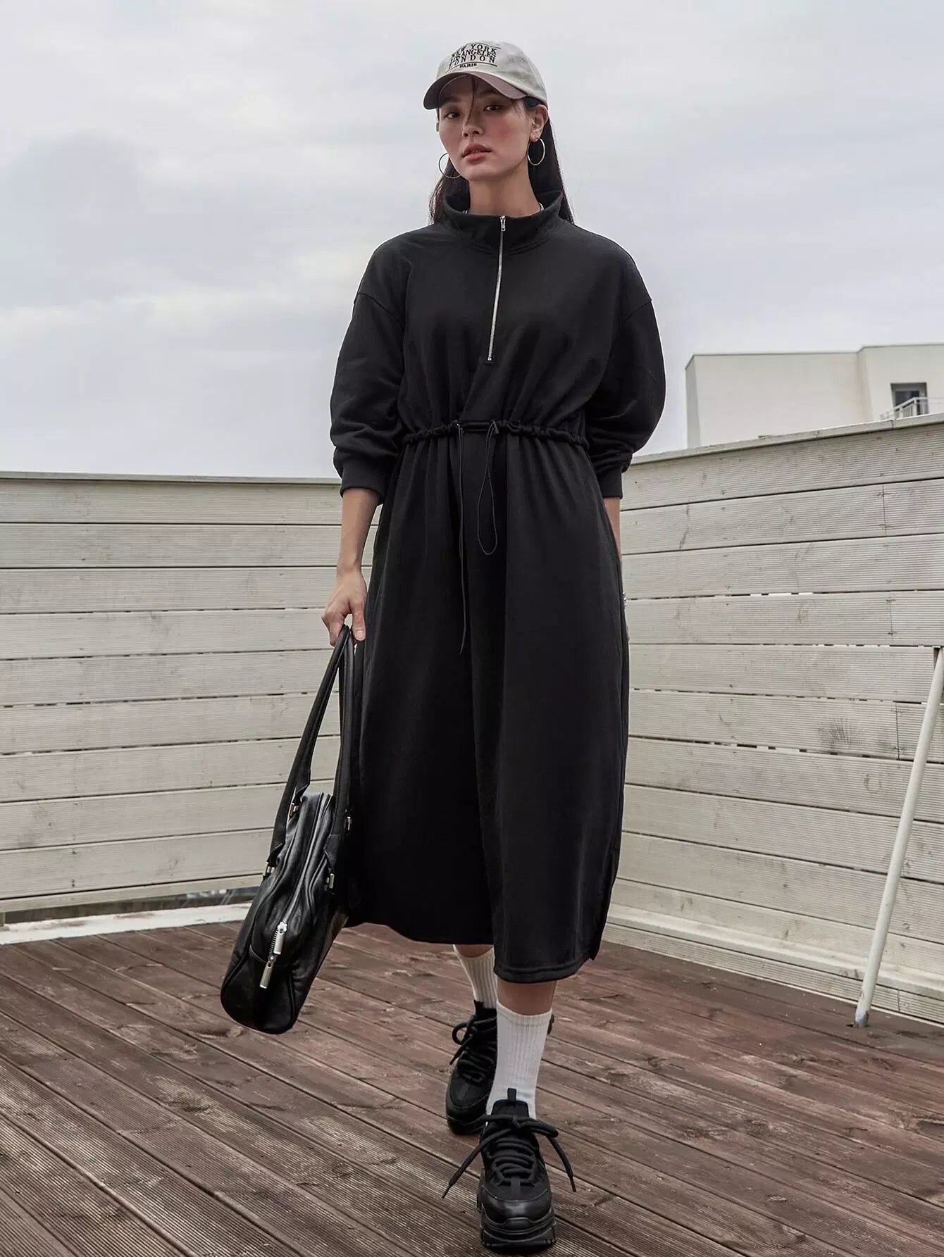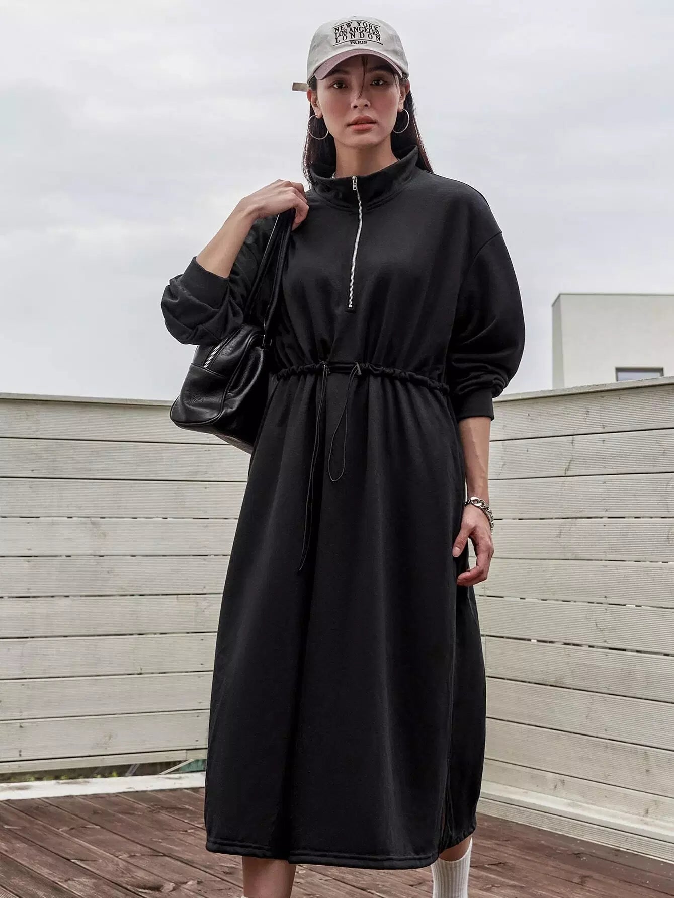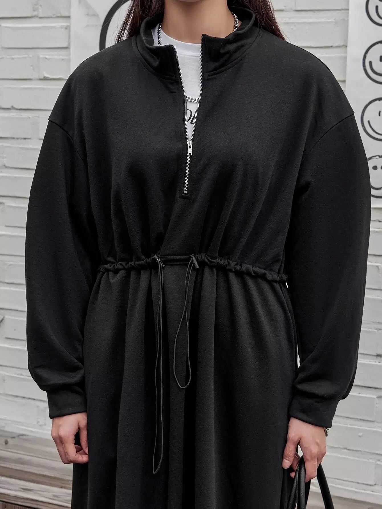 فستان سويت شيرت منسدل على الكتف منسدل الخصر بسحاب نصف سحّاب