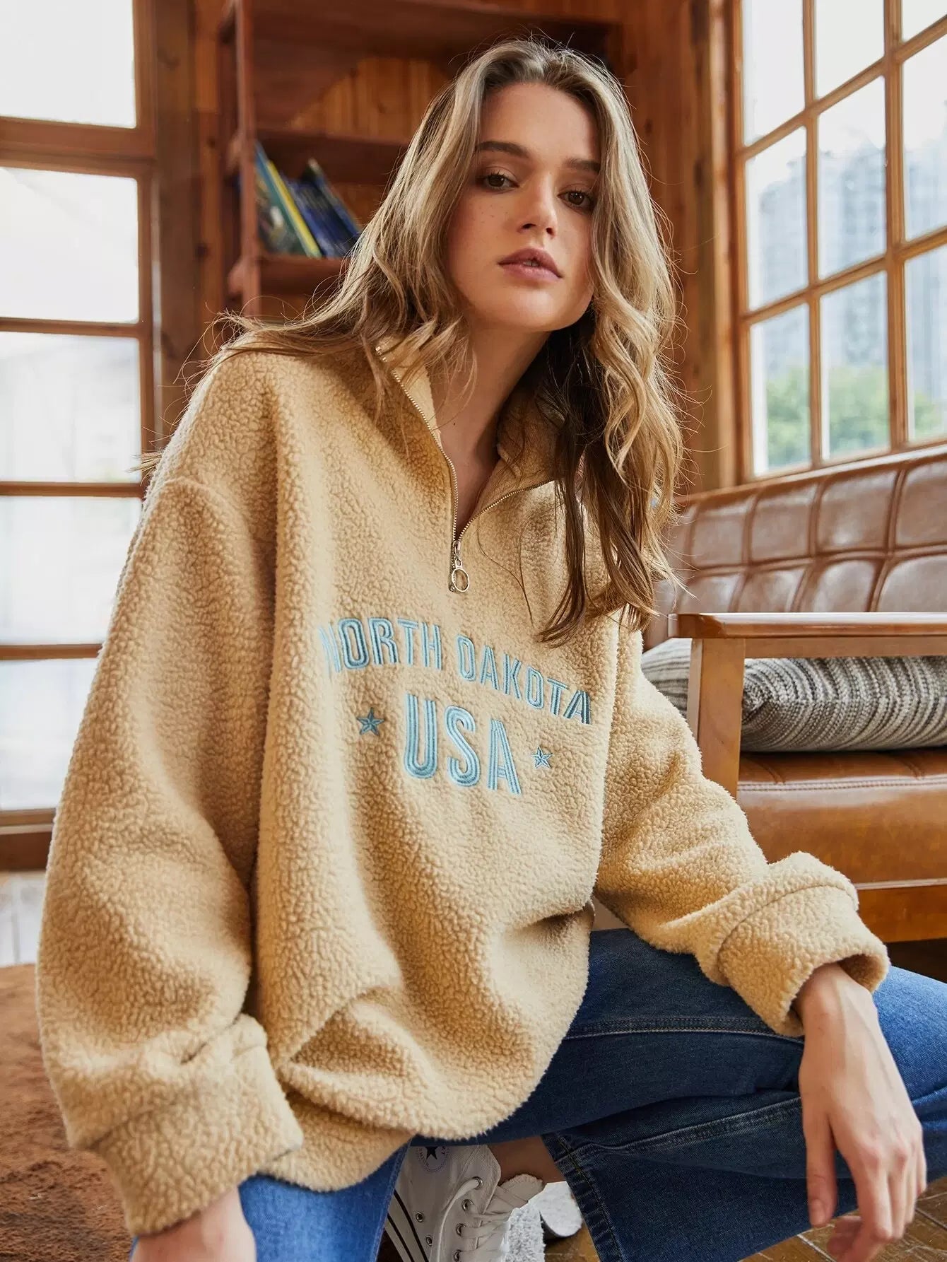 سويت شيرت بنصف سحاب مزين برسومات حروف كبيرة الحجم