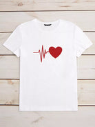 تي شيرت بطبعة قلب برقبة على شكل قلب