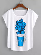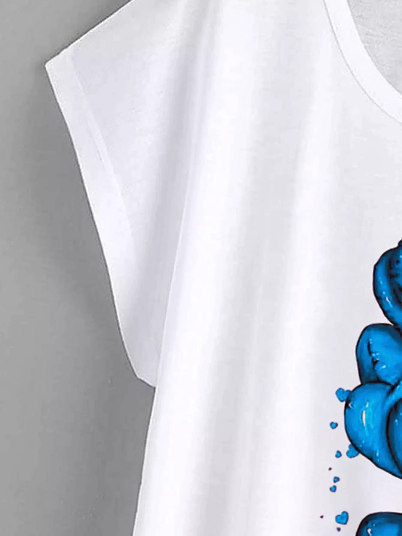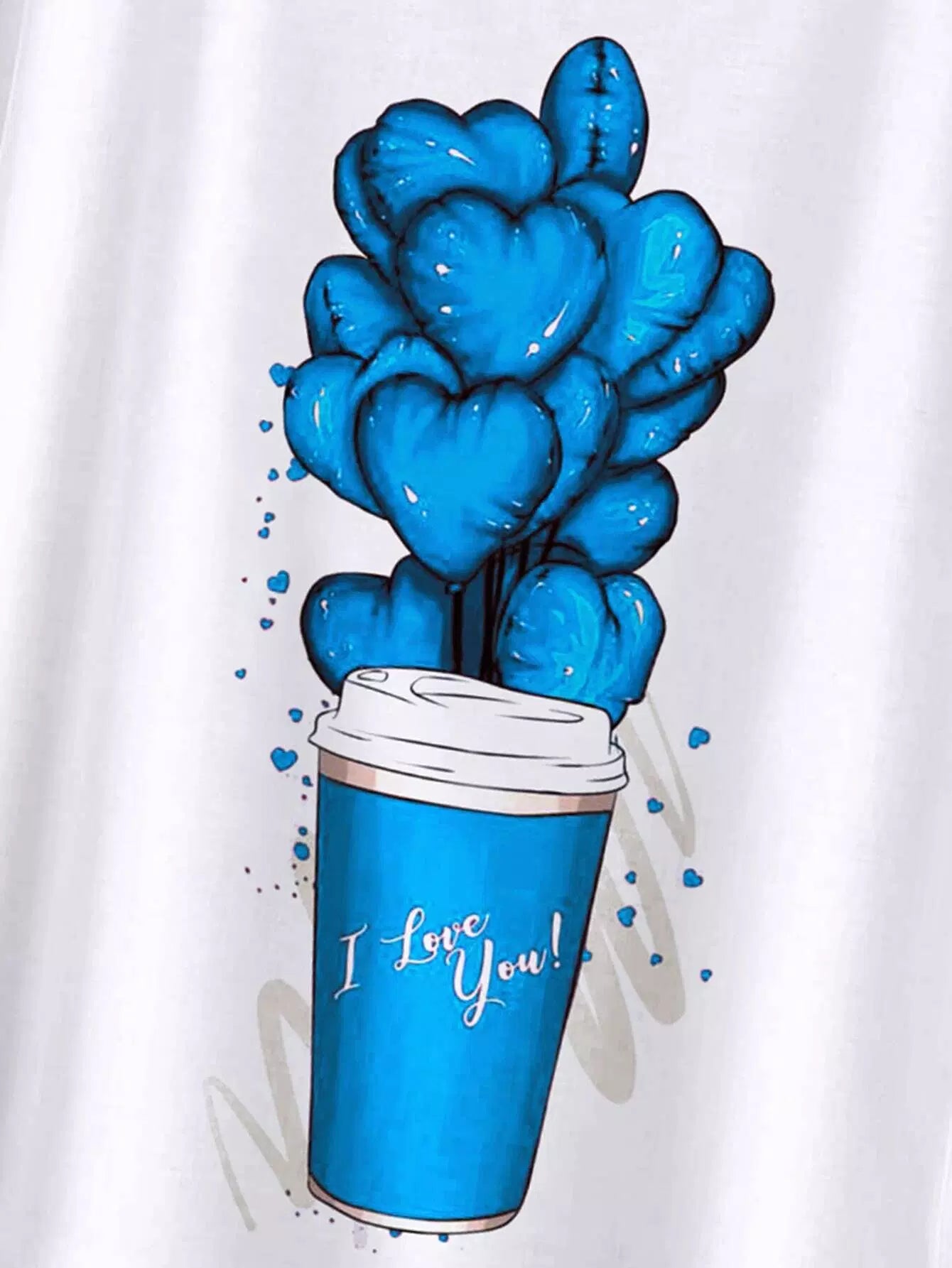 تي شيرت برقبة دائرية بطبعة قلب وشعار