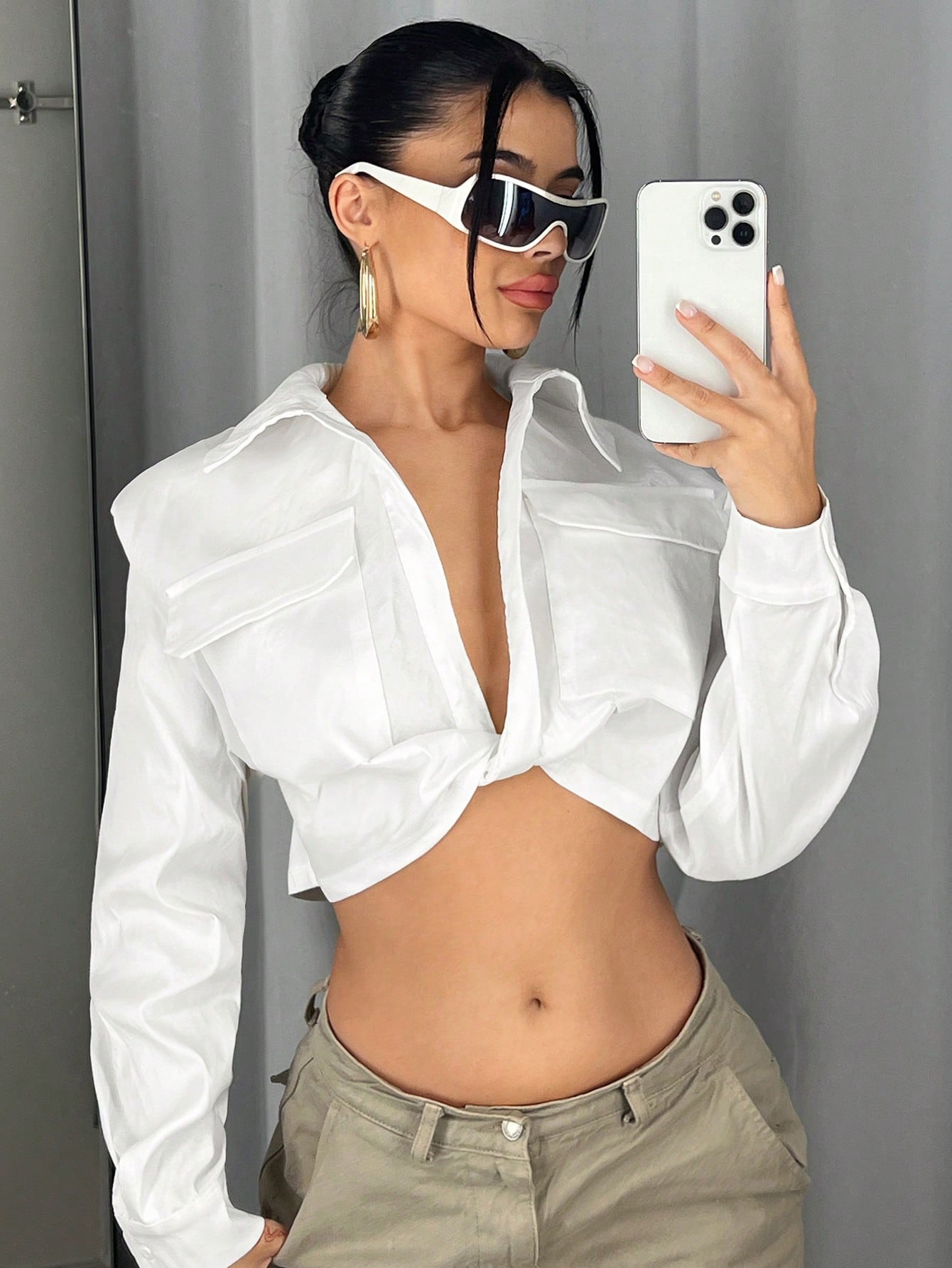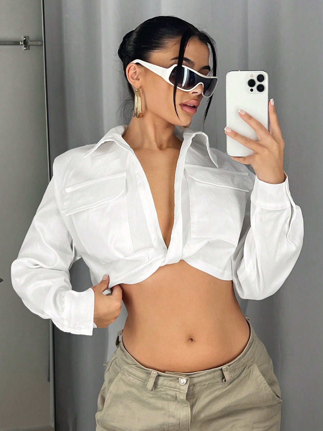ICON Flap Pocket Crop Blouse
