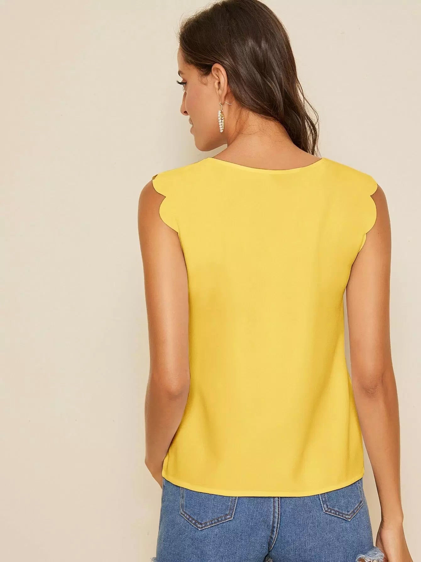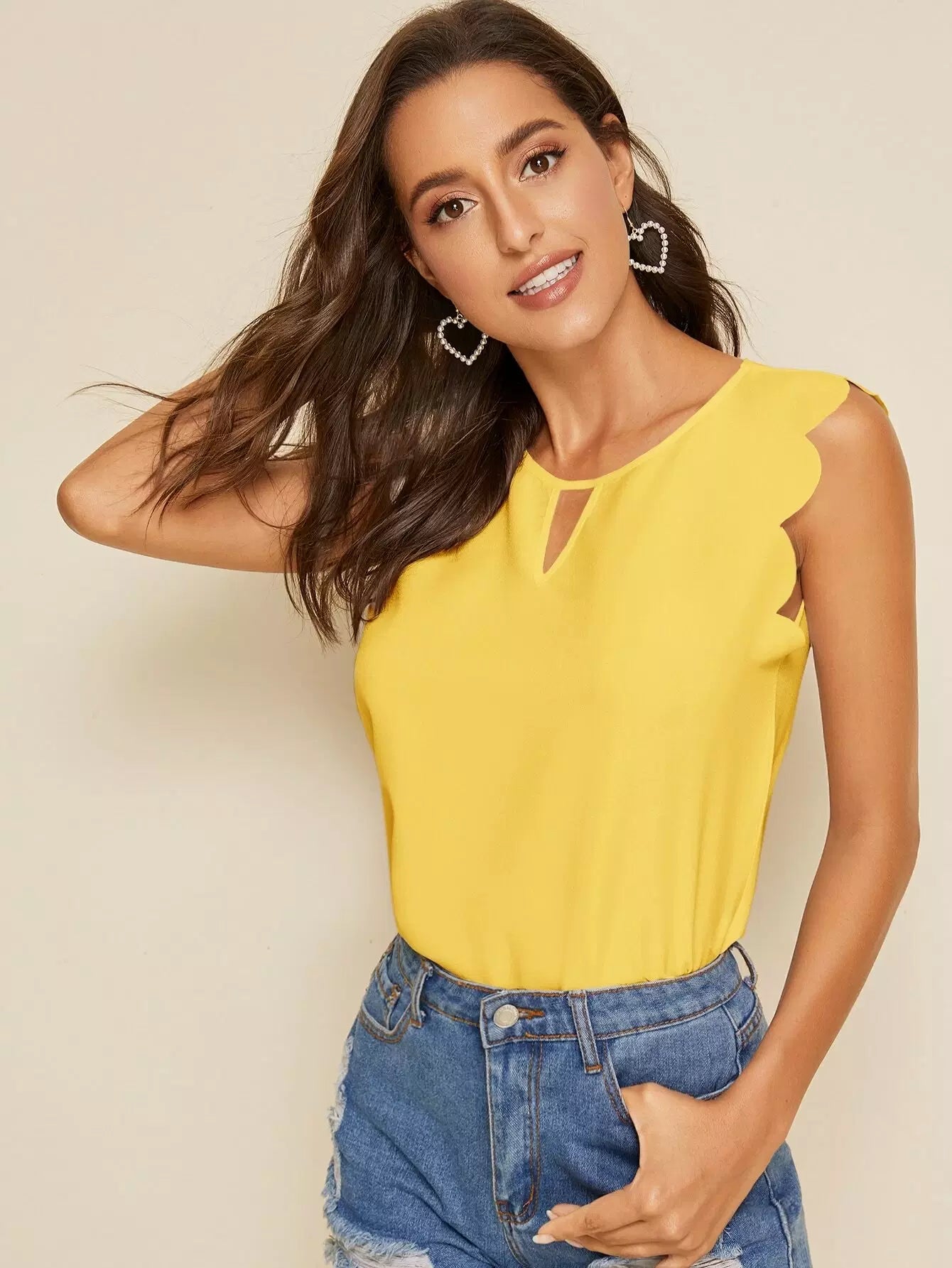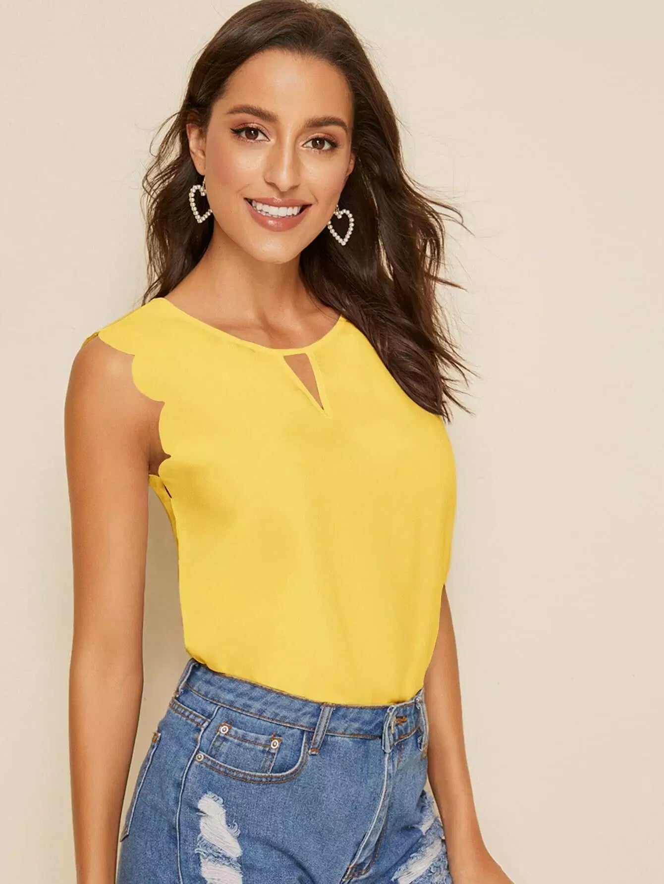 النساء - بلوزة ذات حافة صدفية وفتحة رقبة على شكل ثقب المفتاح