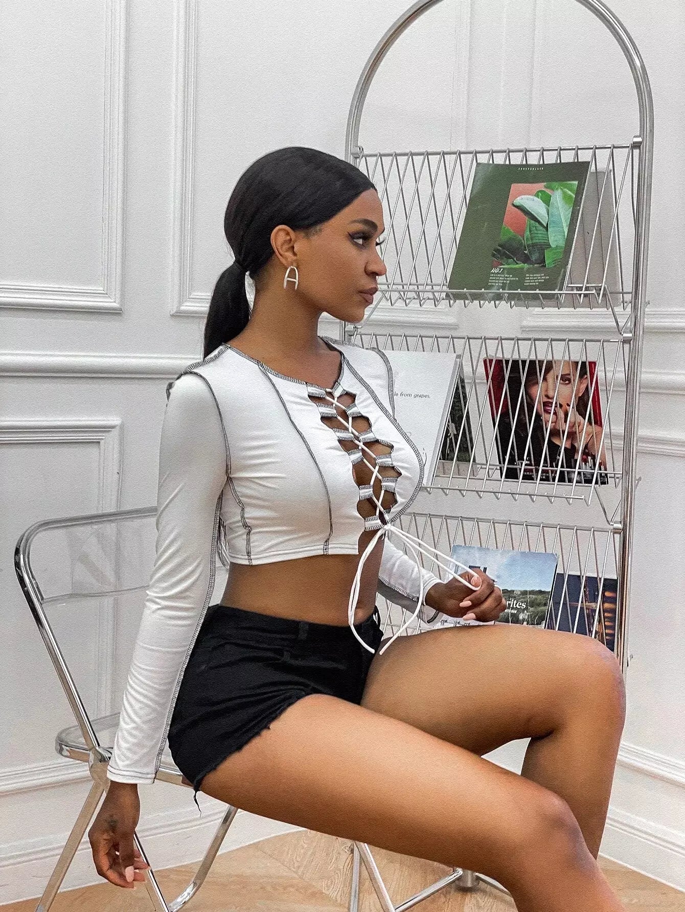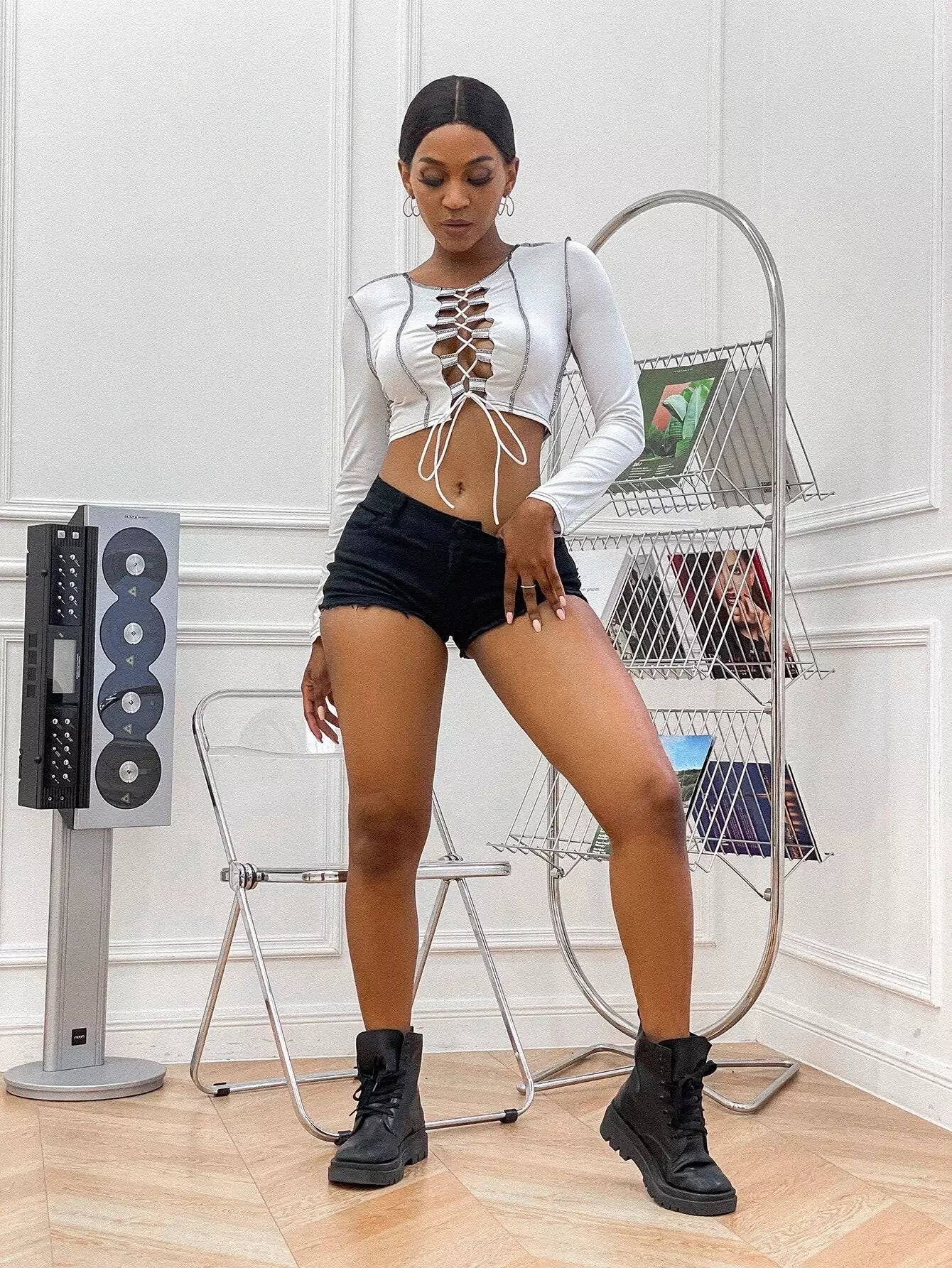 للنساء - تي شيرت بأربطة مزخرفة بخياطة