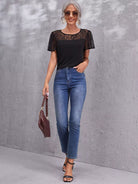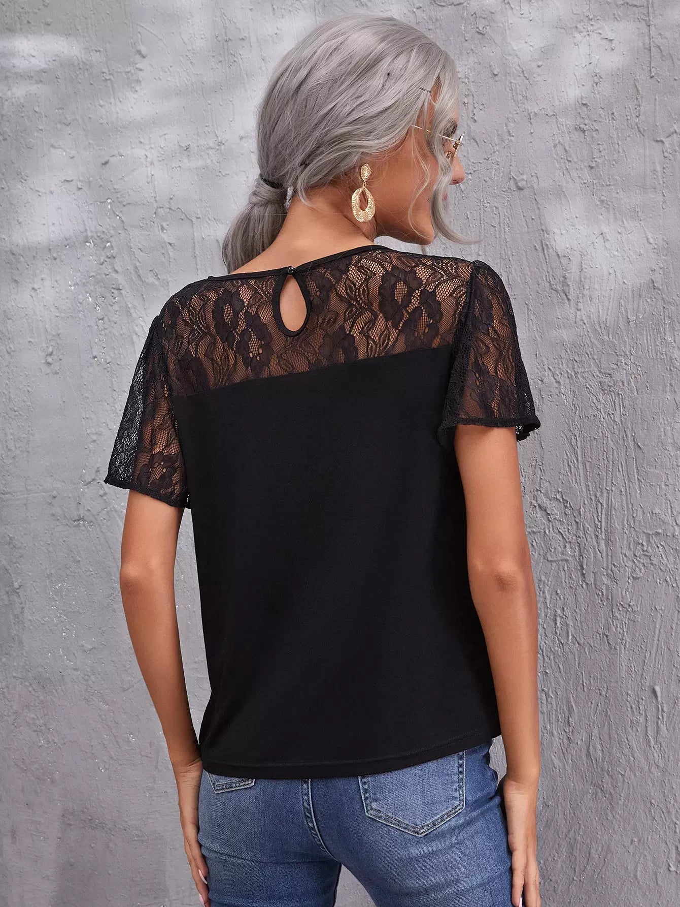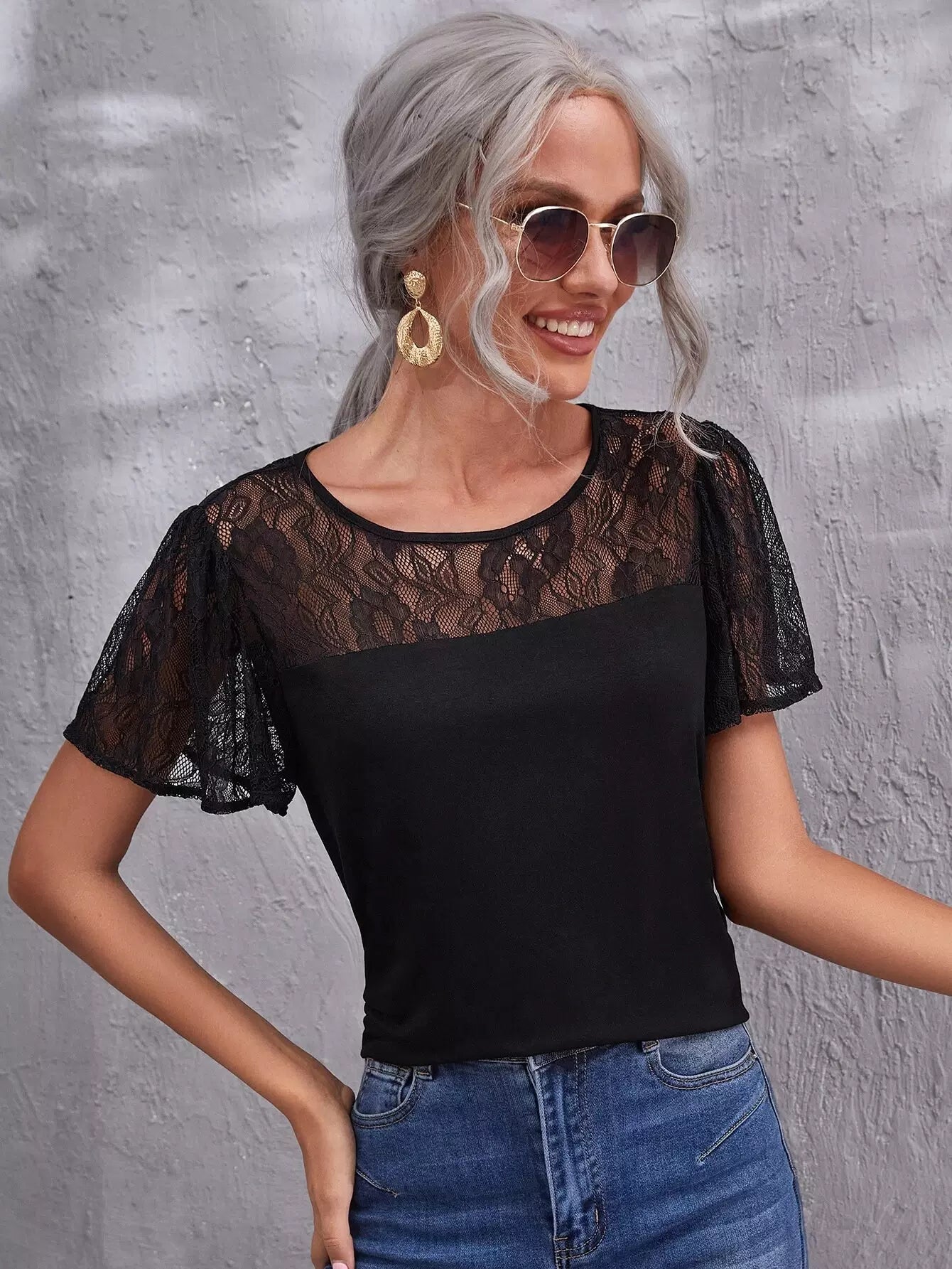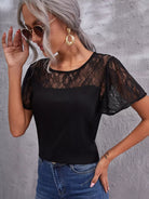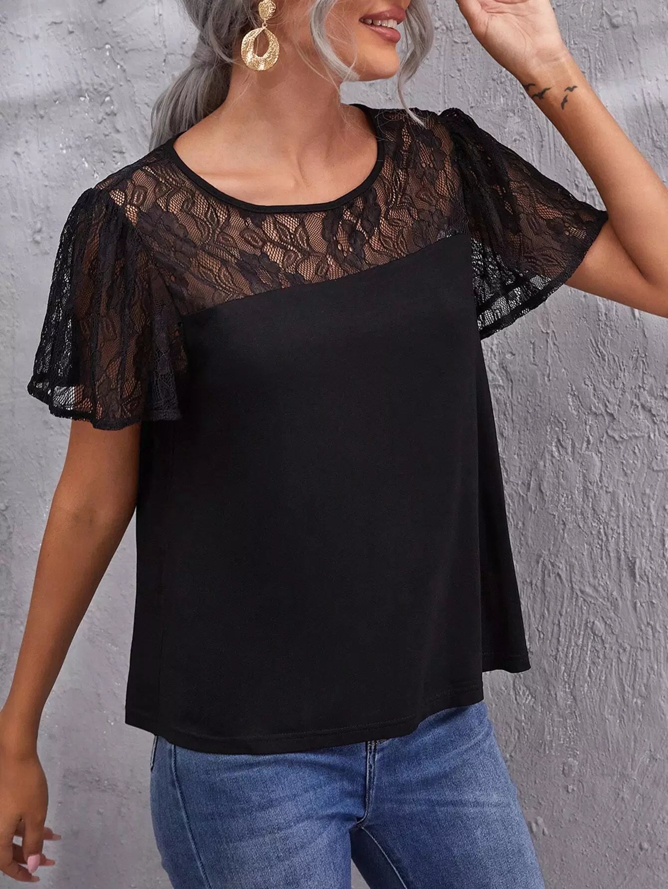 بلوزة بأكمام ونير من الدانتيل