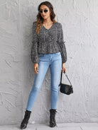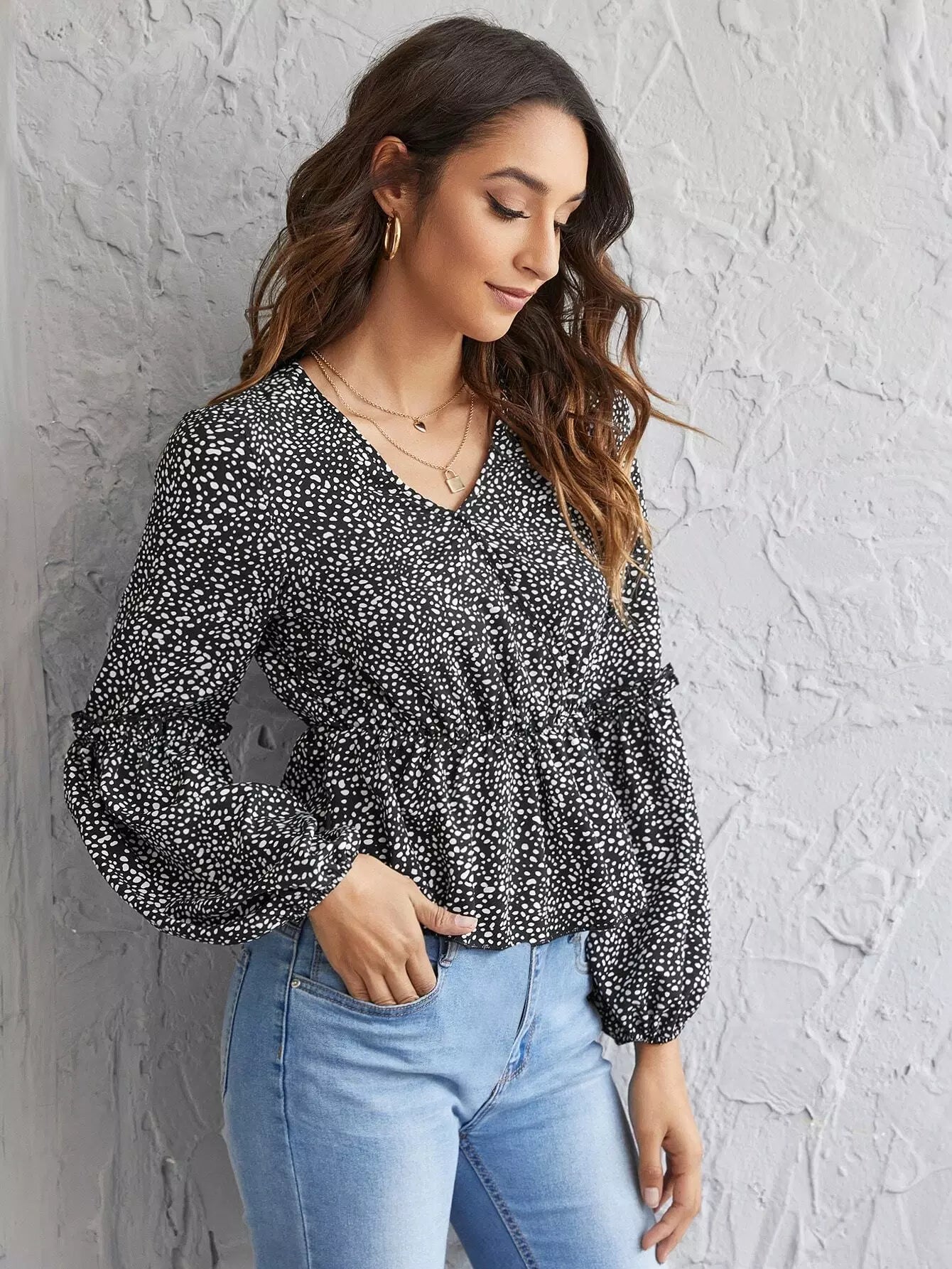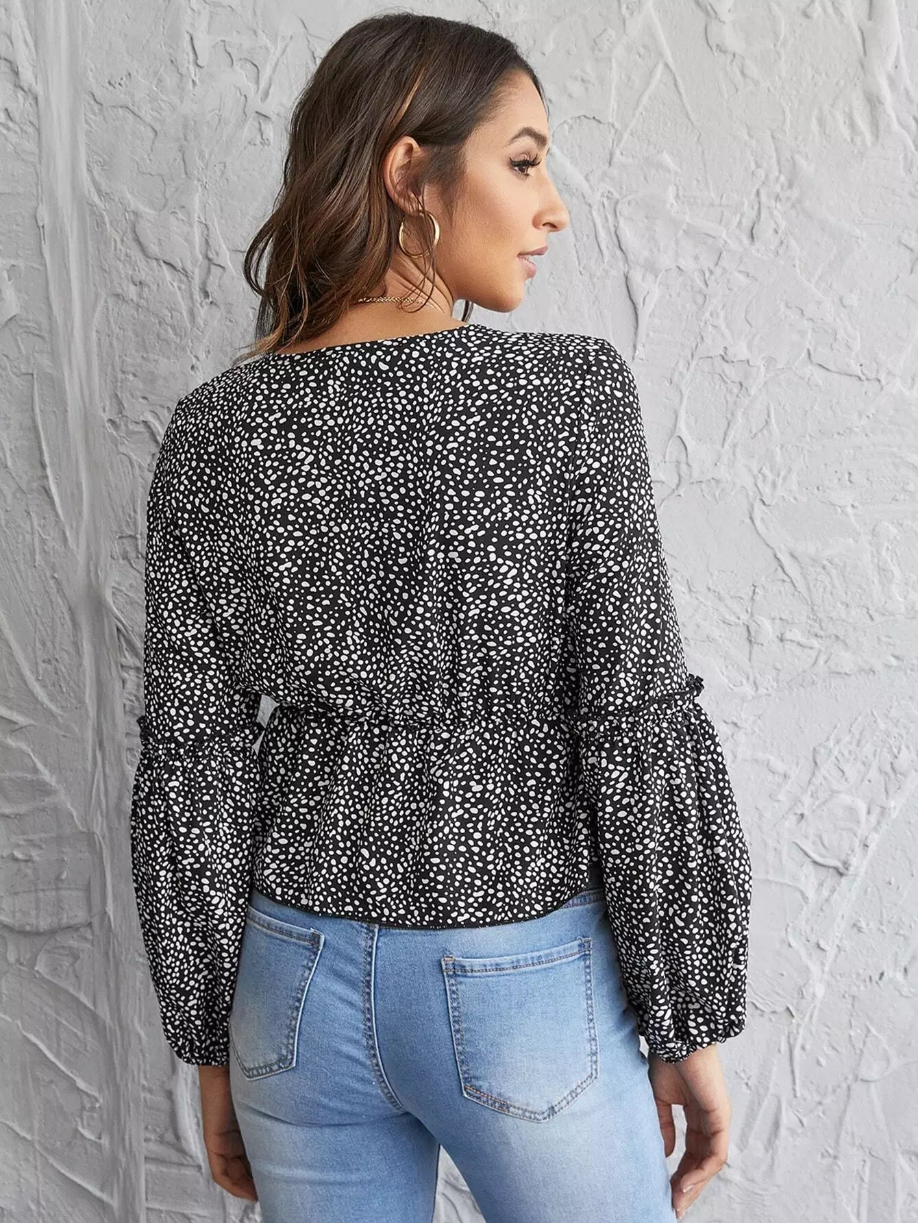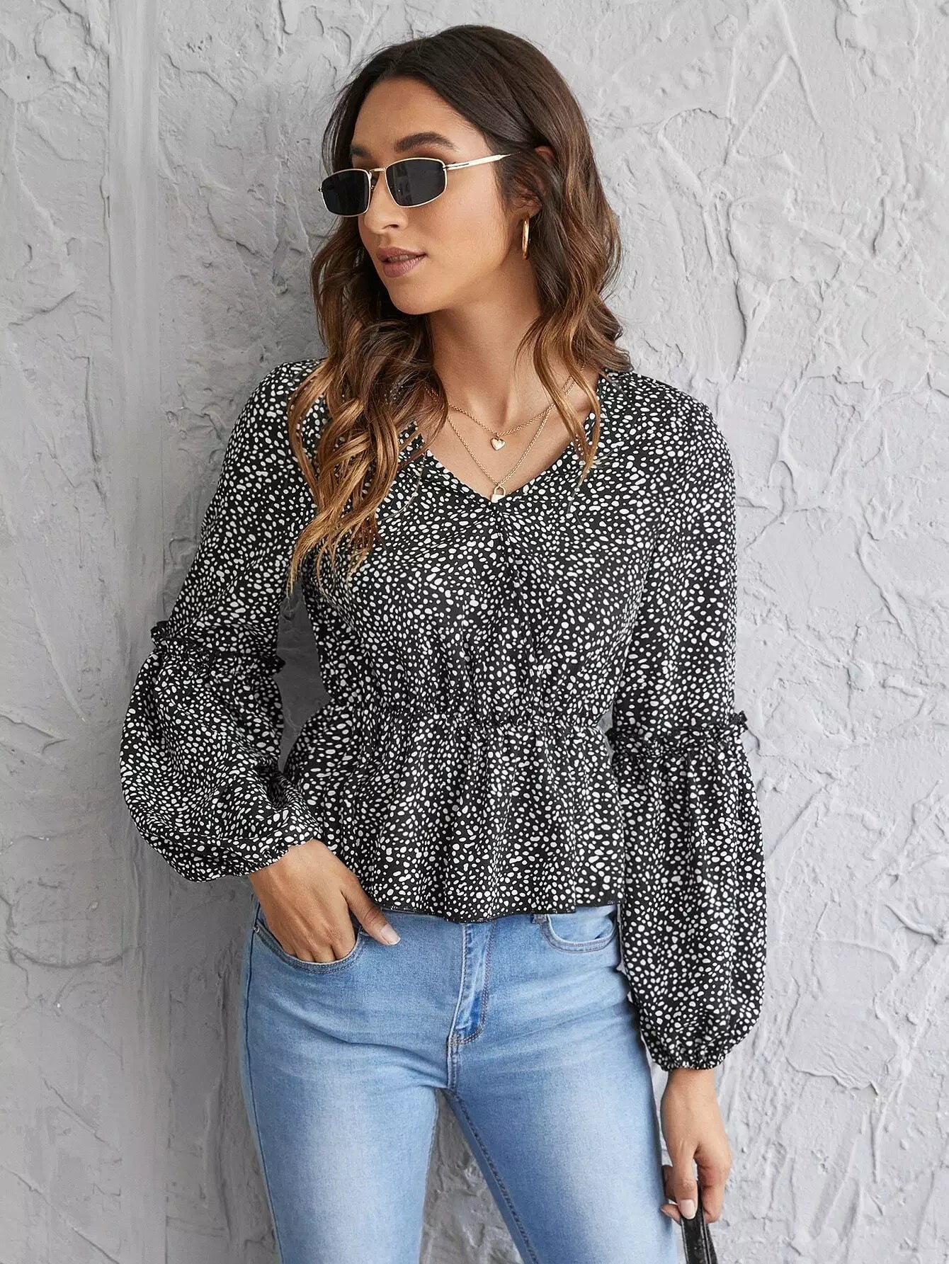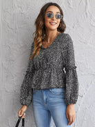بلوزة بأكمام كشكش مزينة بكشكش دالماتيان