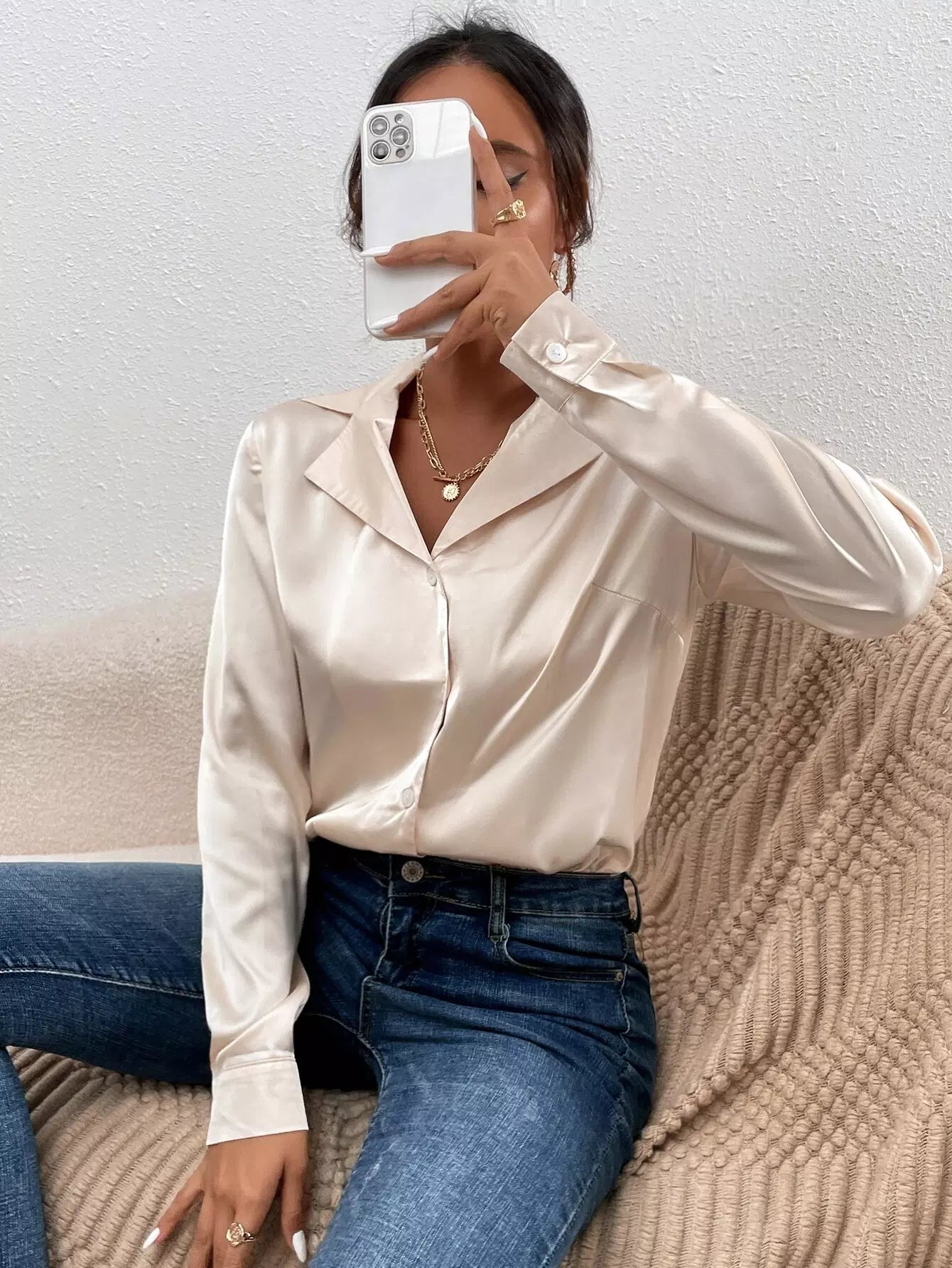 بلوزة بياقة على الياقة وأزرار أمامية على الياقة