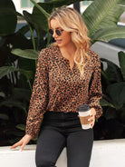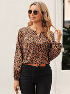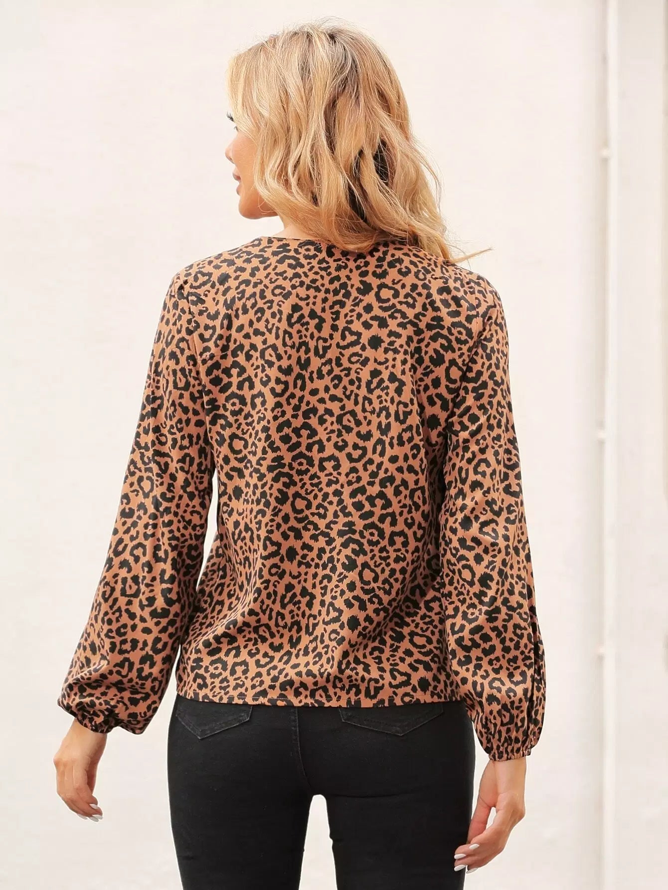 بلوزة بأكمام على شكل فانوس مطبوع عليها جلد النمر