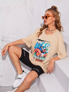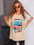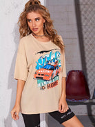 تي شيرت بطبعة حروف وسيارة كبيرة الحجم