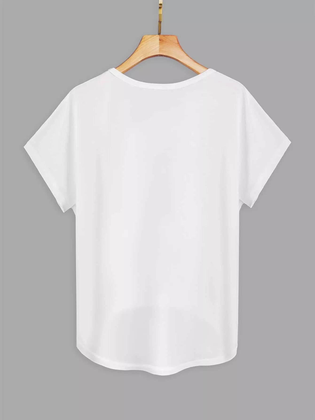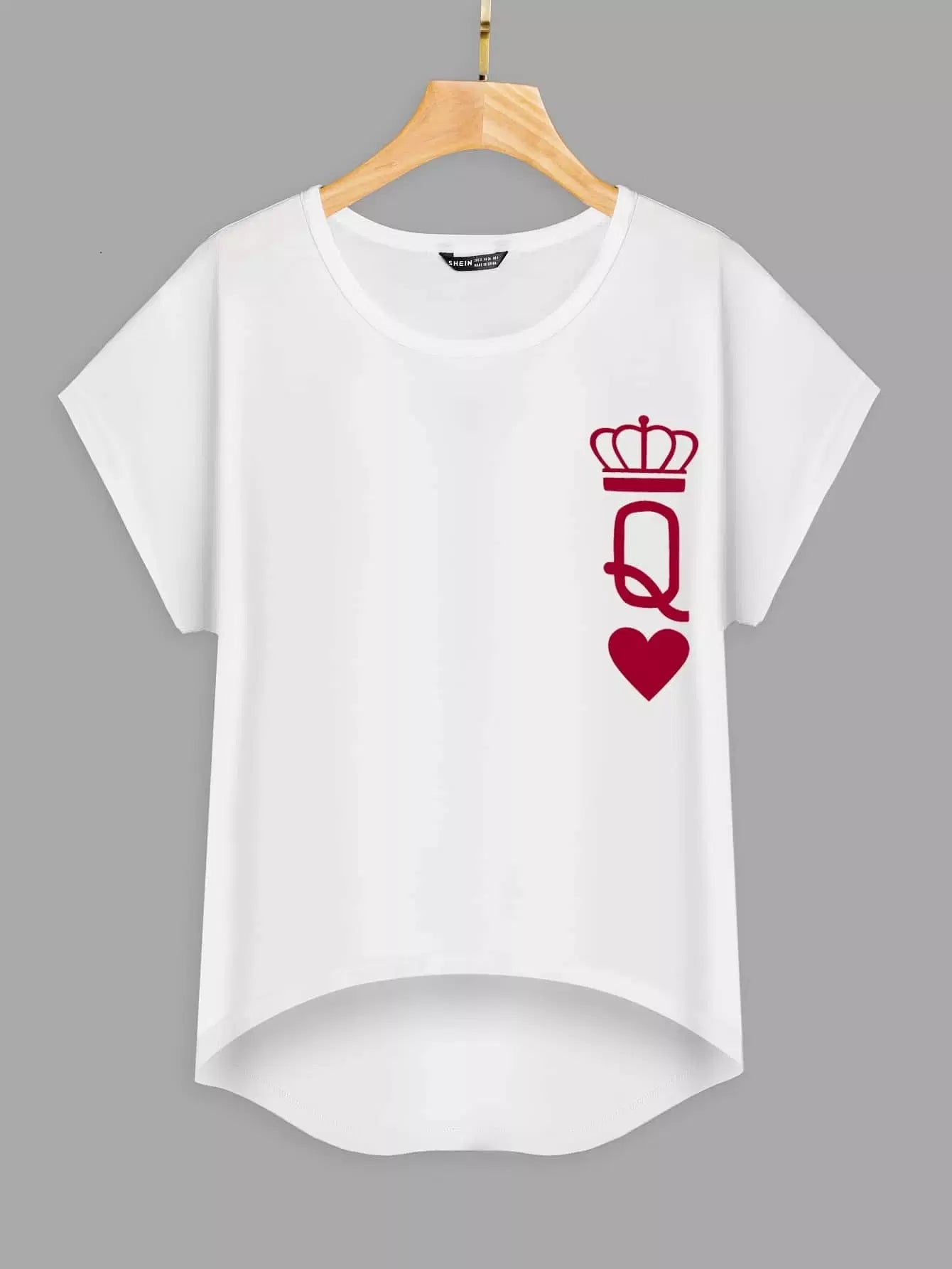 تي شيرت بطبعة حروف وقلب مطبوع عليه حافة عالية منخفضة