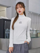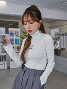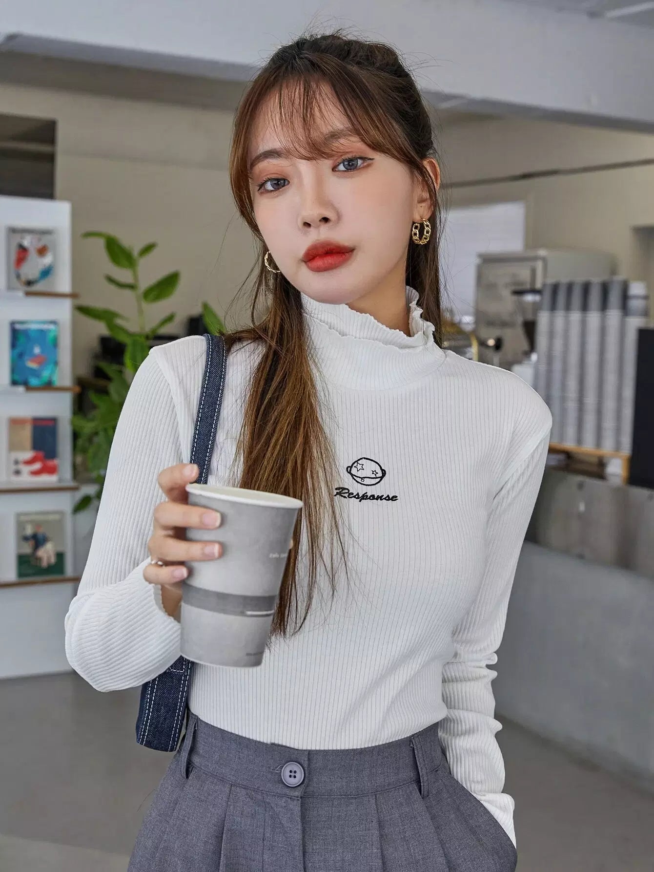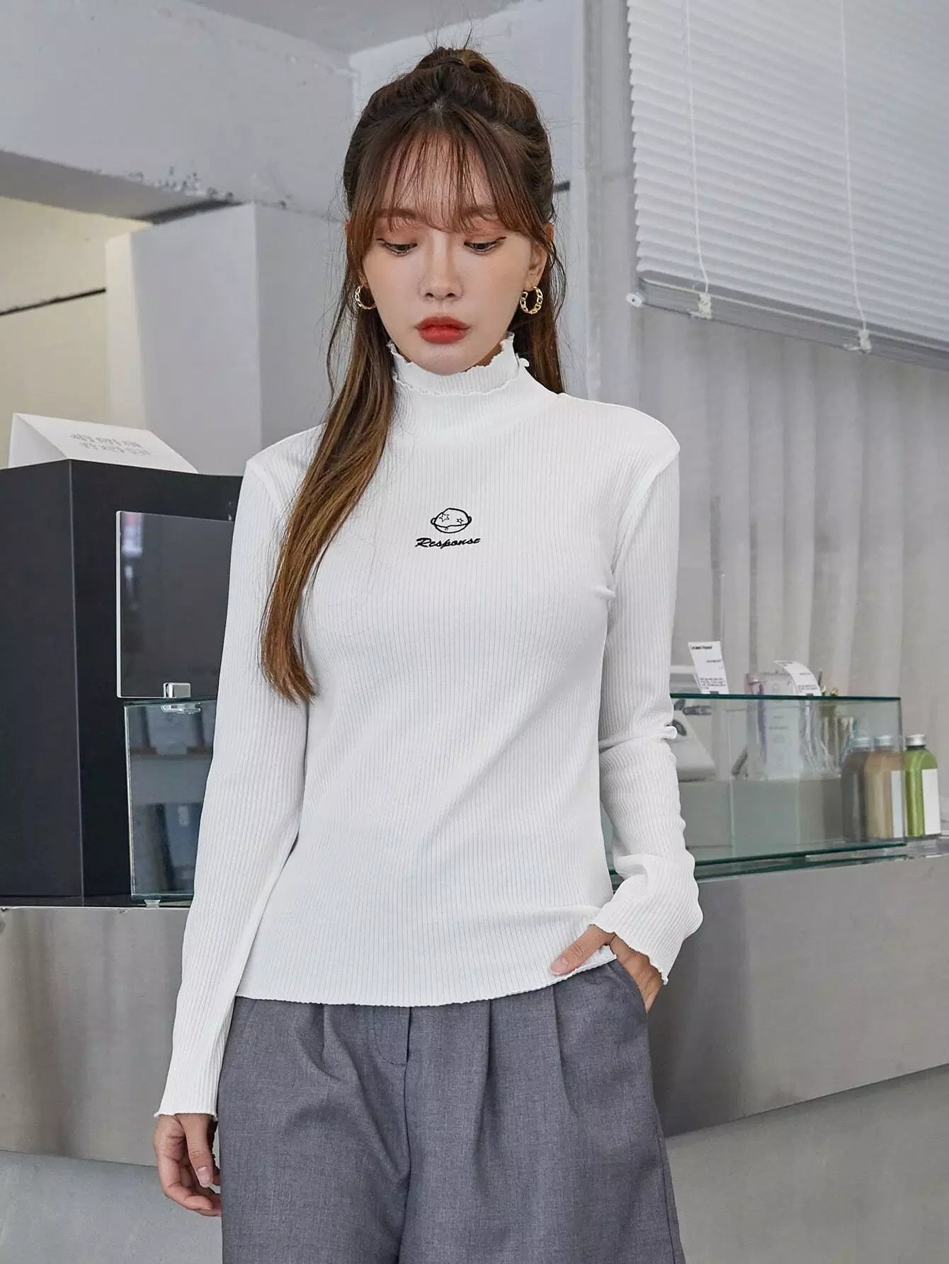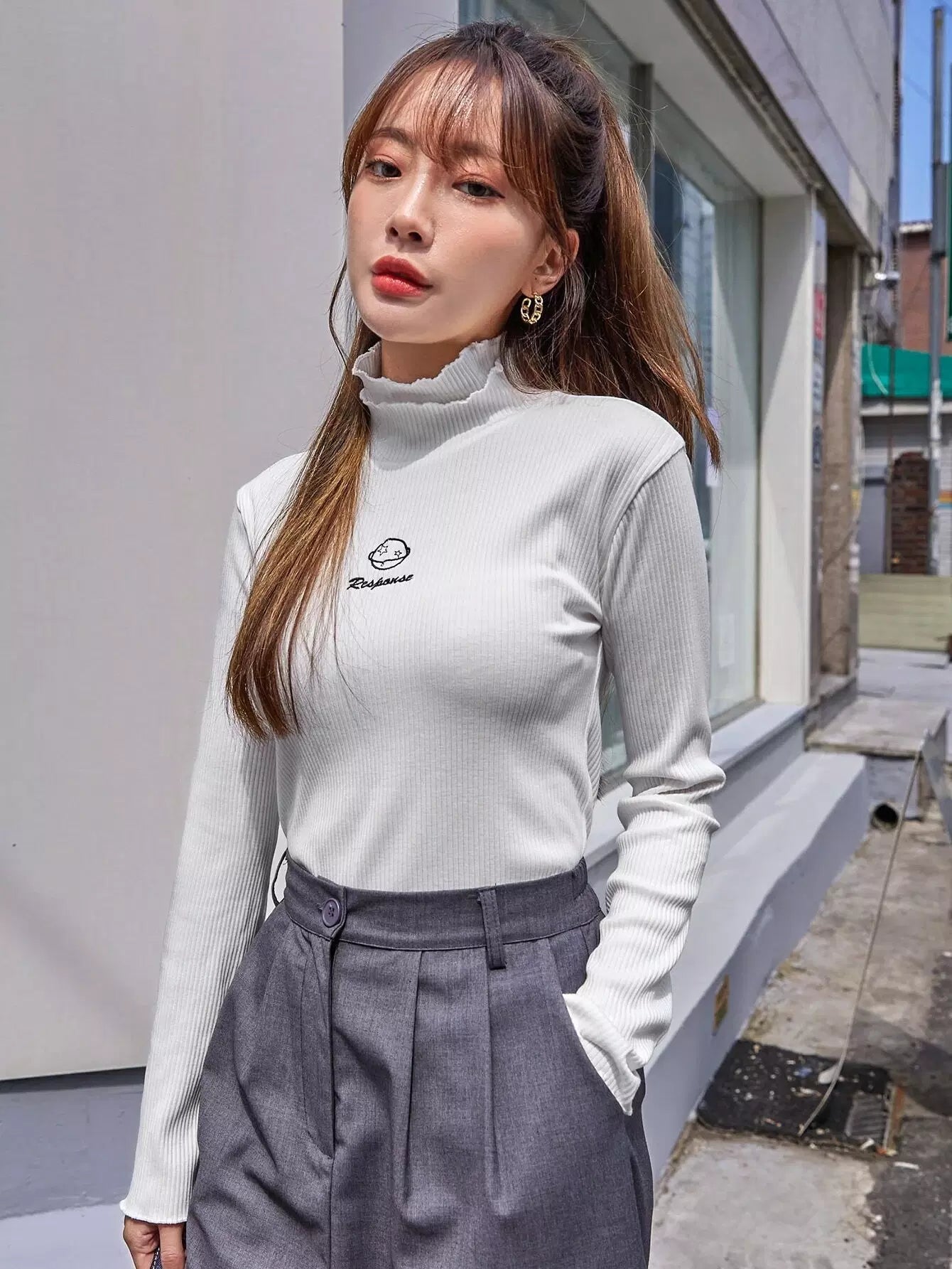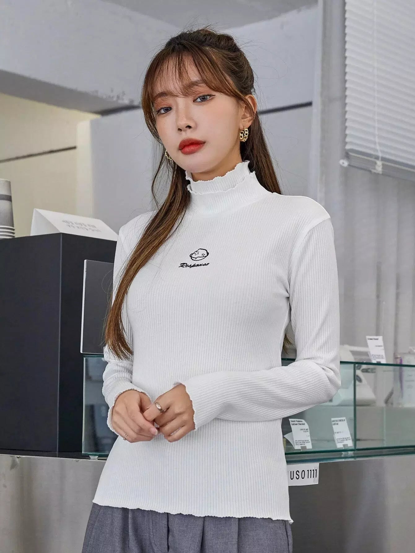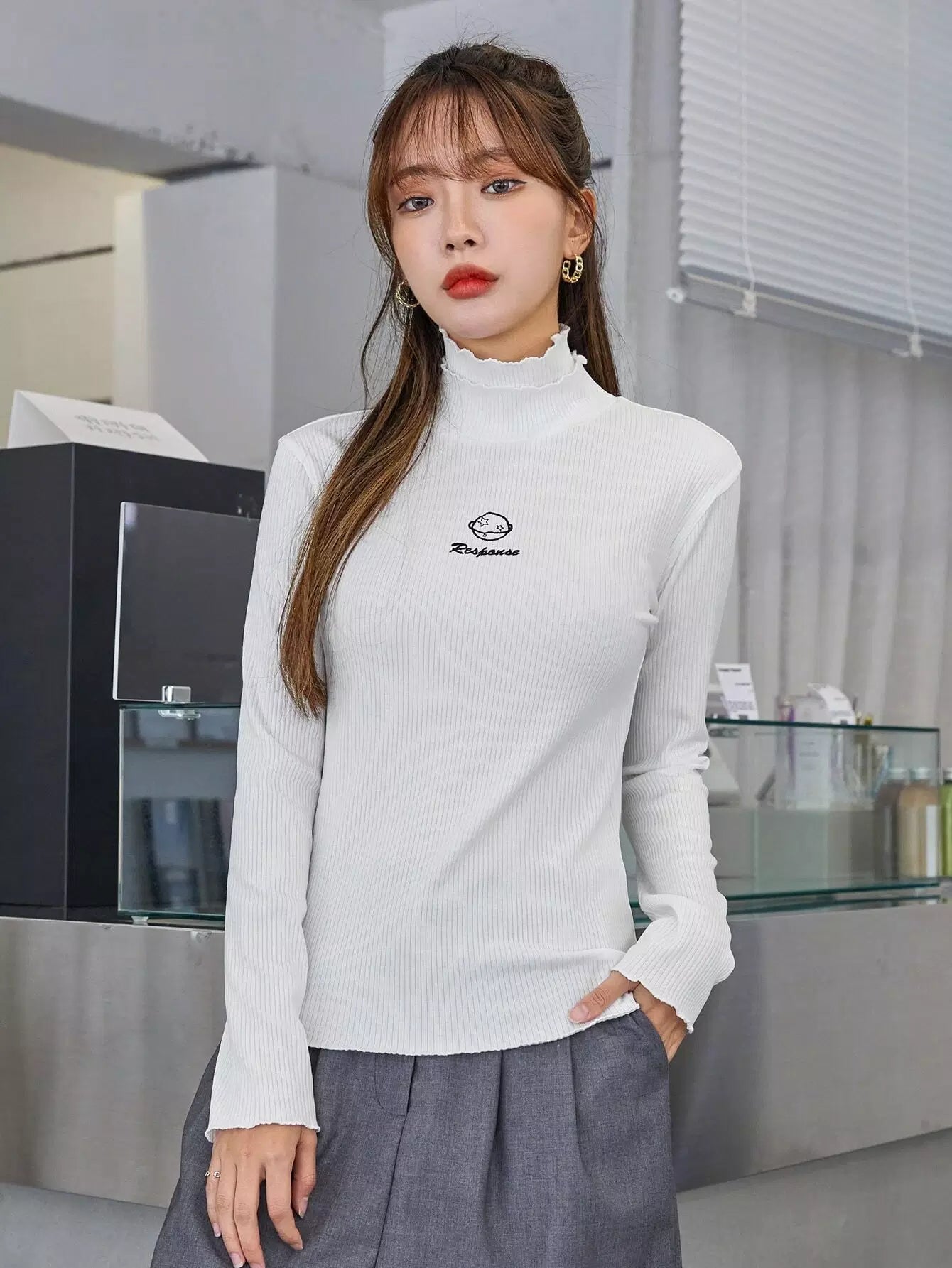 تي شيرت بياقة عالية الرقبة مطرز بحروف على شكل حرف