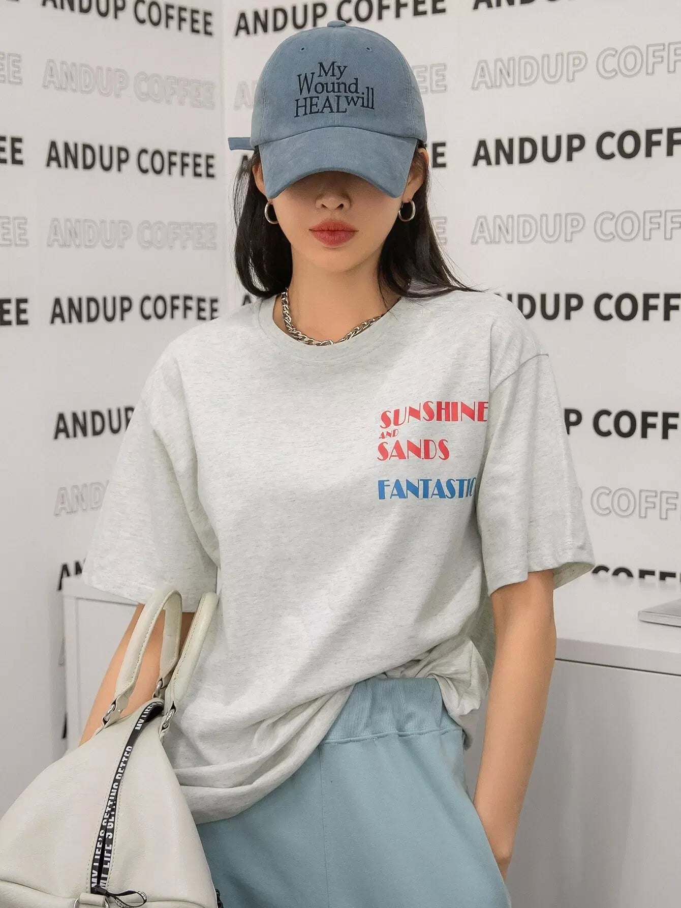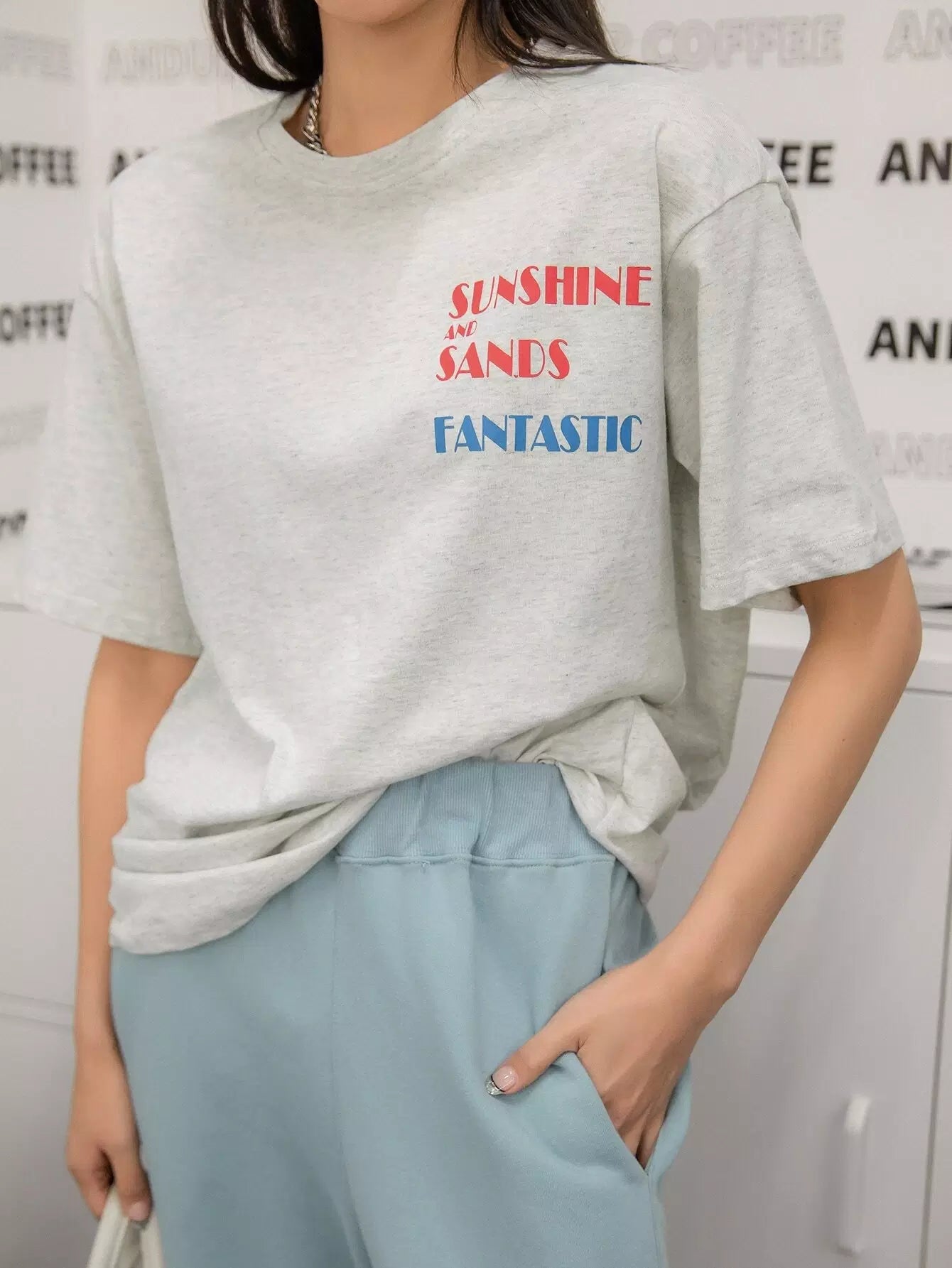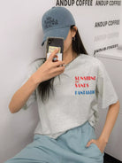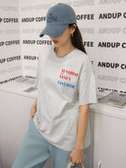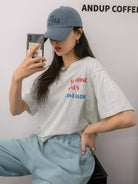تي شيرت ذو أكتاف منسدلة برسومات على شكل حرف وشكل