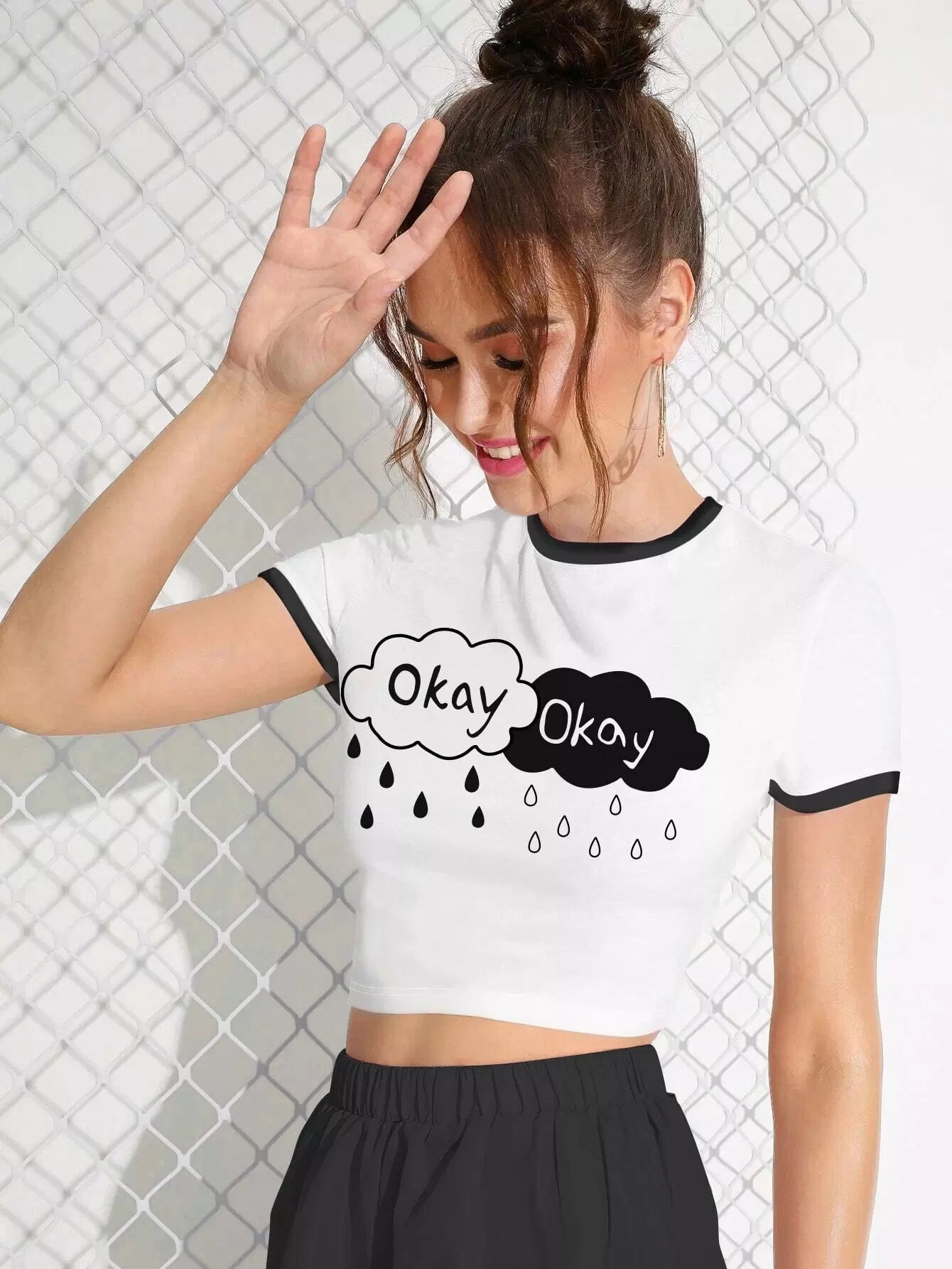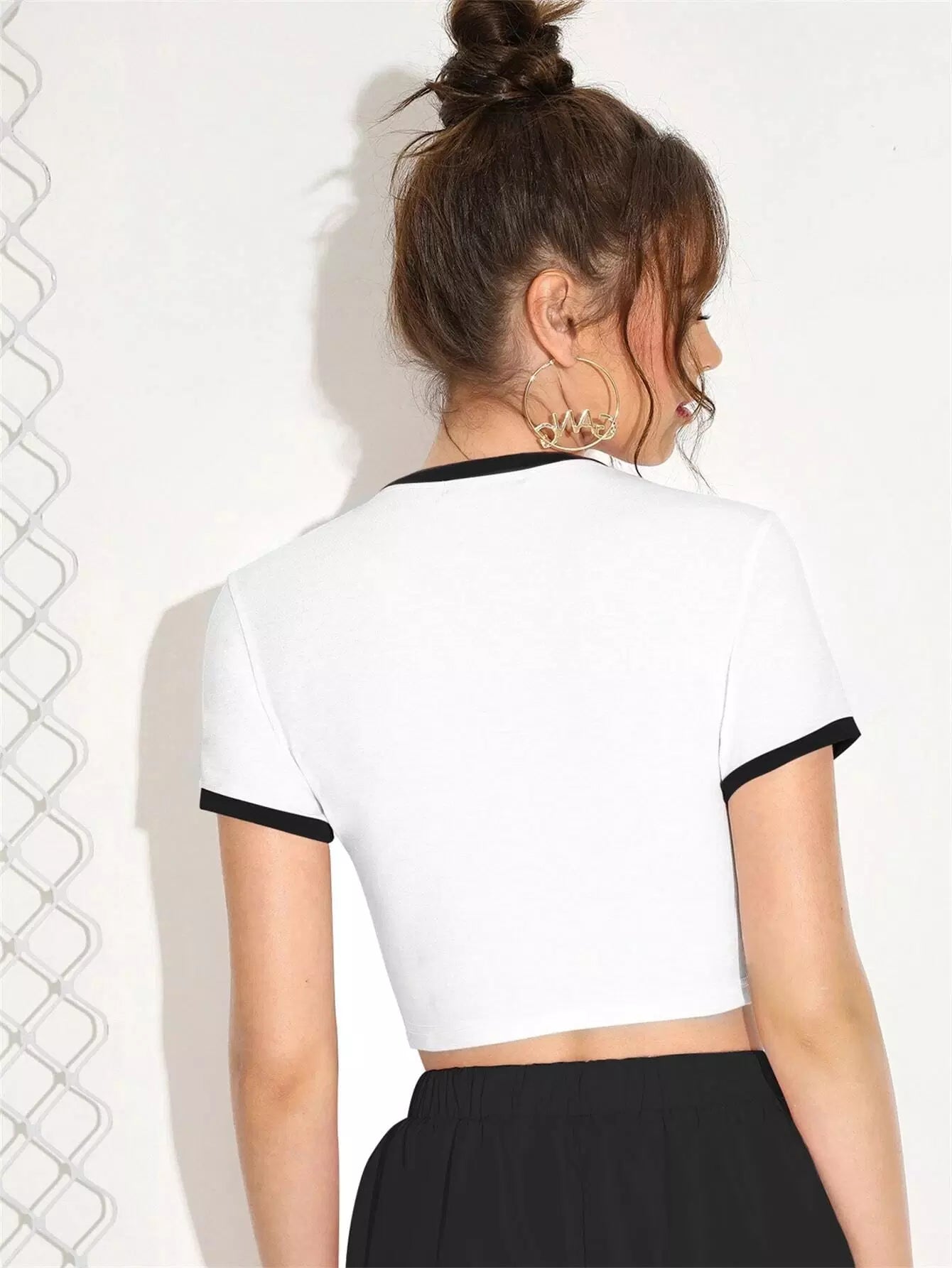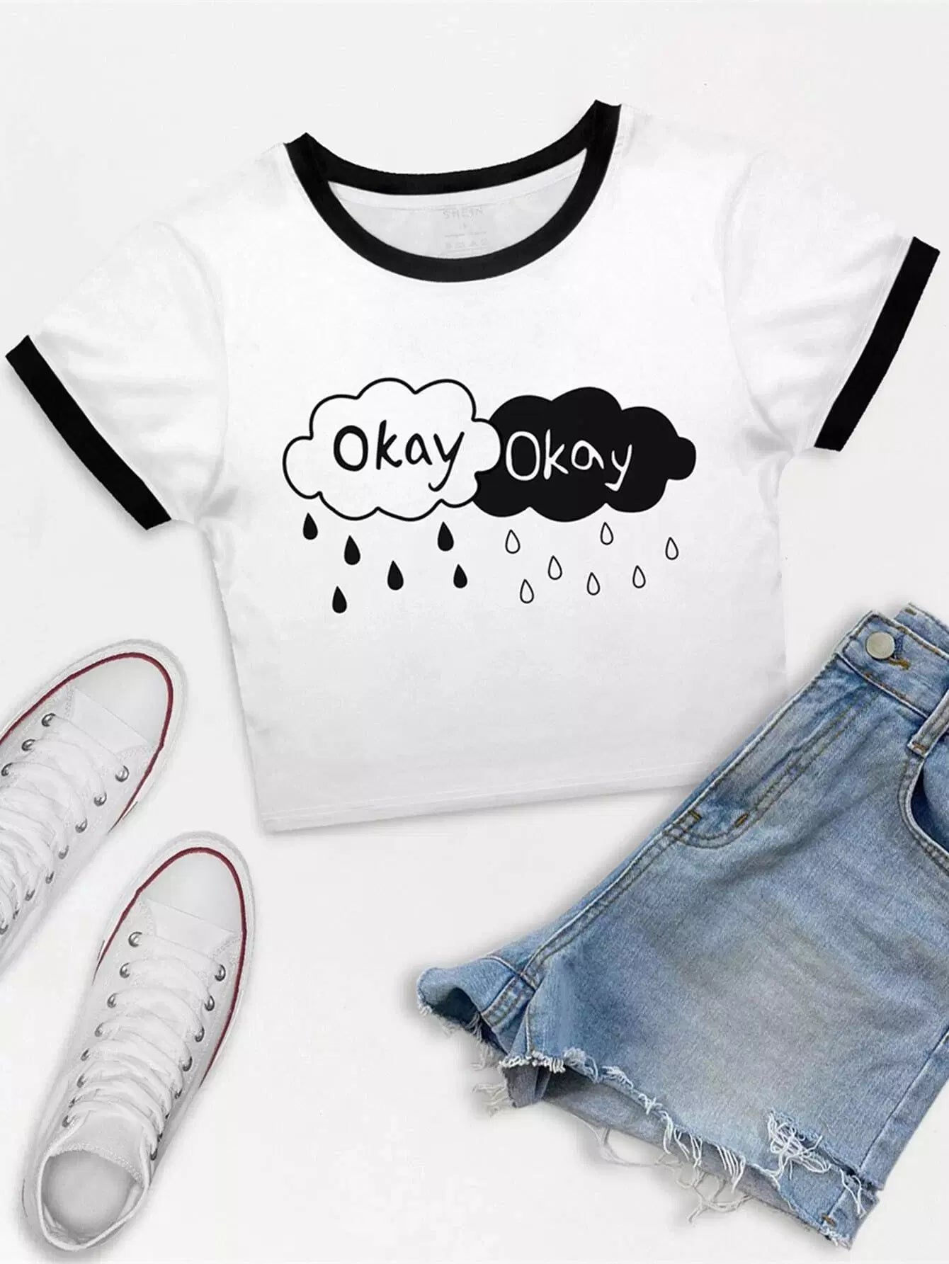 تي شيرت قصير بطبعة حروف جرافيكية متباينة الألوان