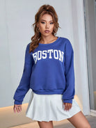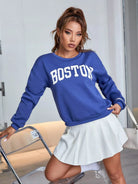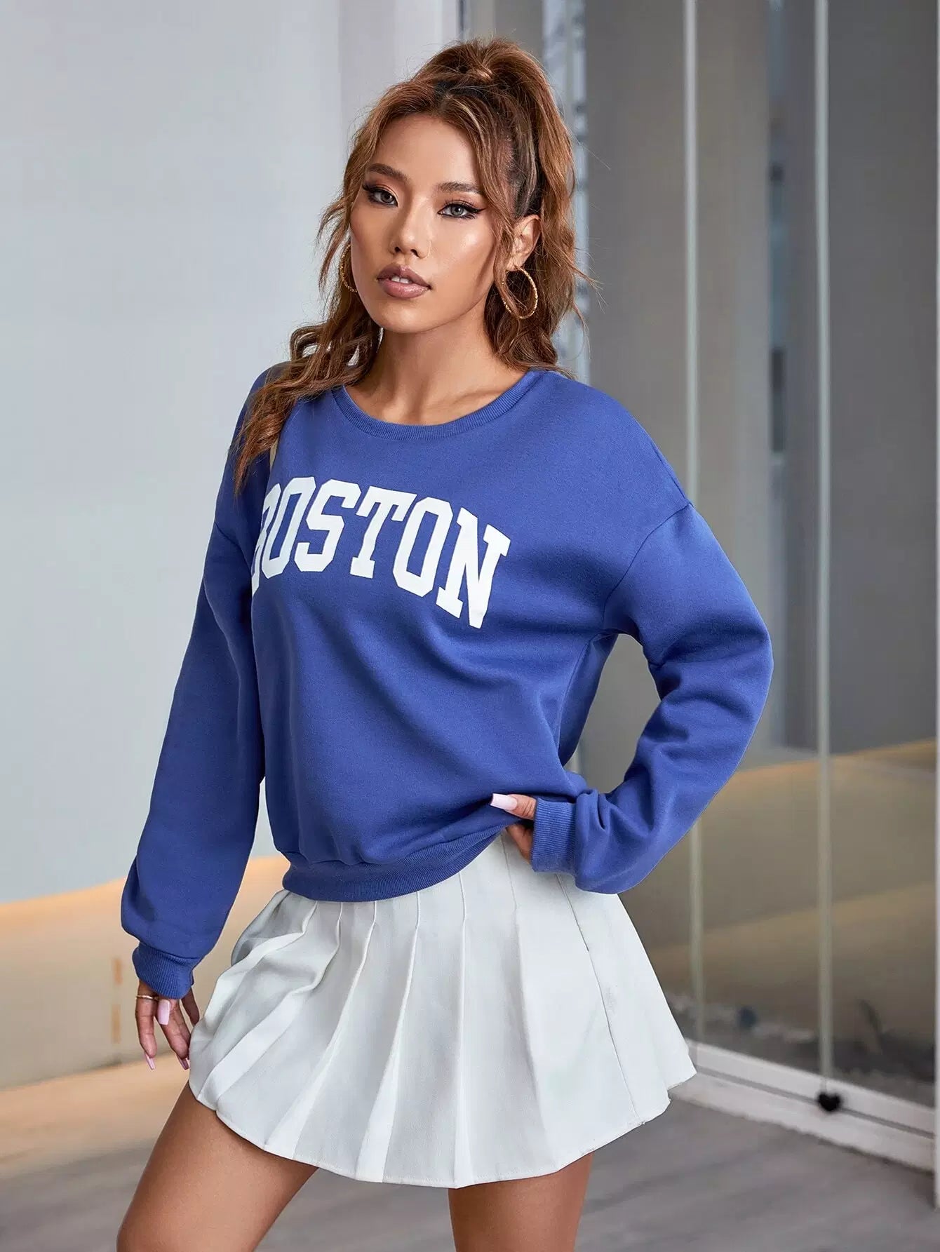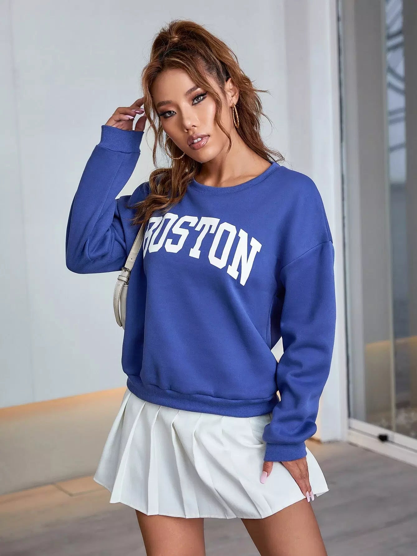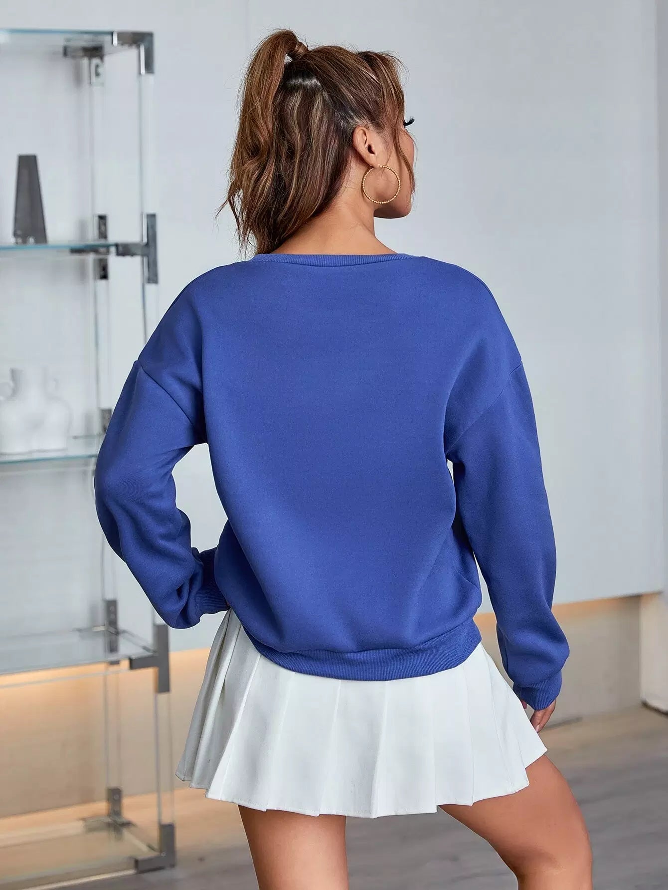 سويت شيرت ذو أكتاف منسدلة برسومات على شكل حرف