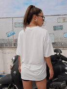 تي شيرت بكتف منسدل برسومات الحروف