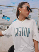للنساء - تي شيرت بكتف منسدل ورسومات الحروف
