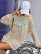 فستان حراري بقلنسوة حراري بجيب منسدل على الكتف برسمة حرف الكنغر