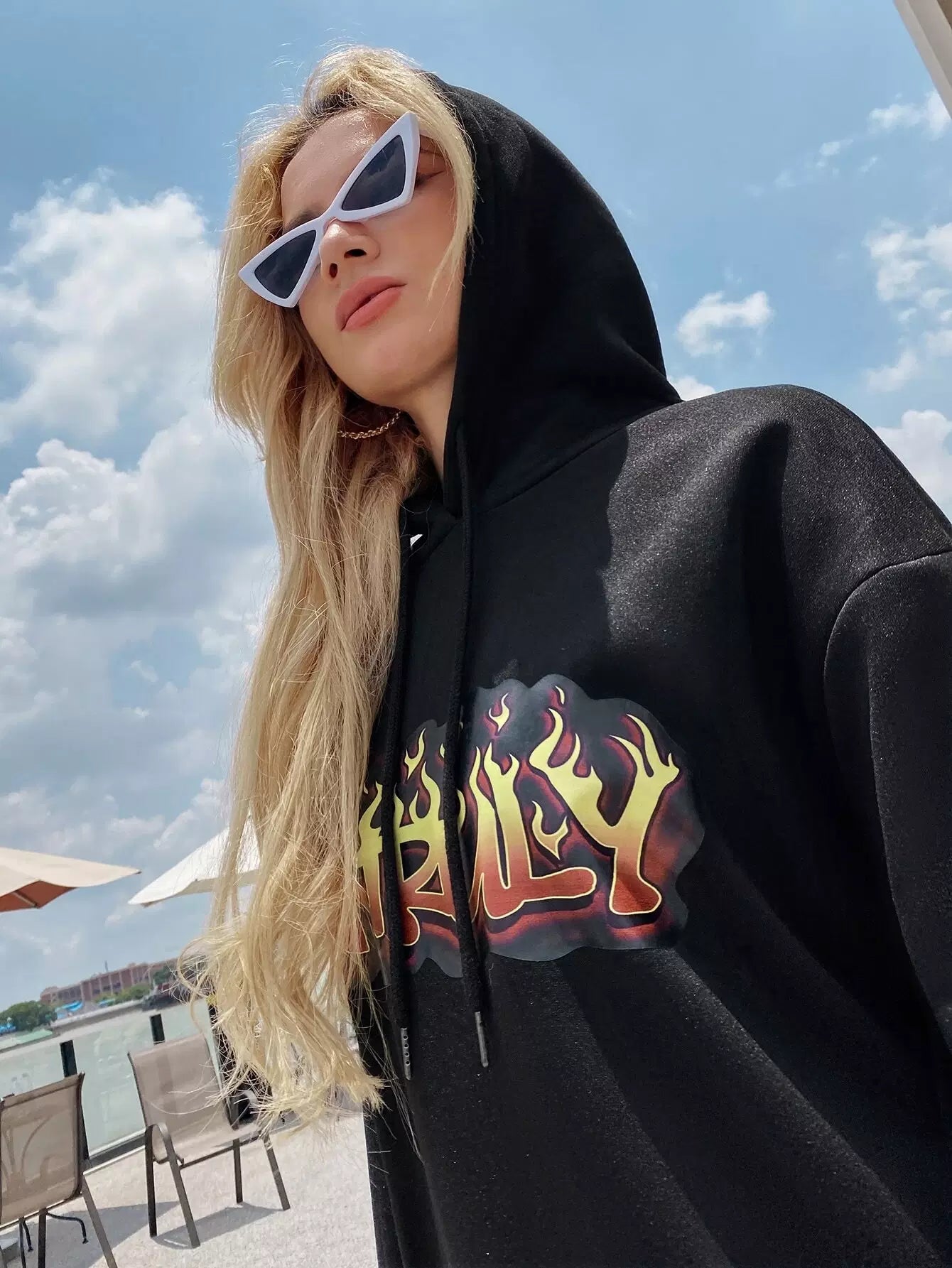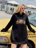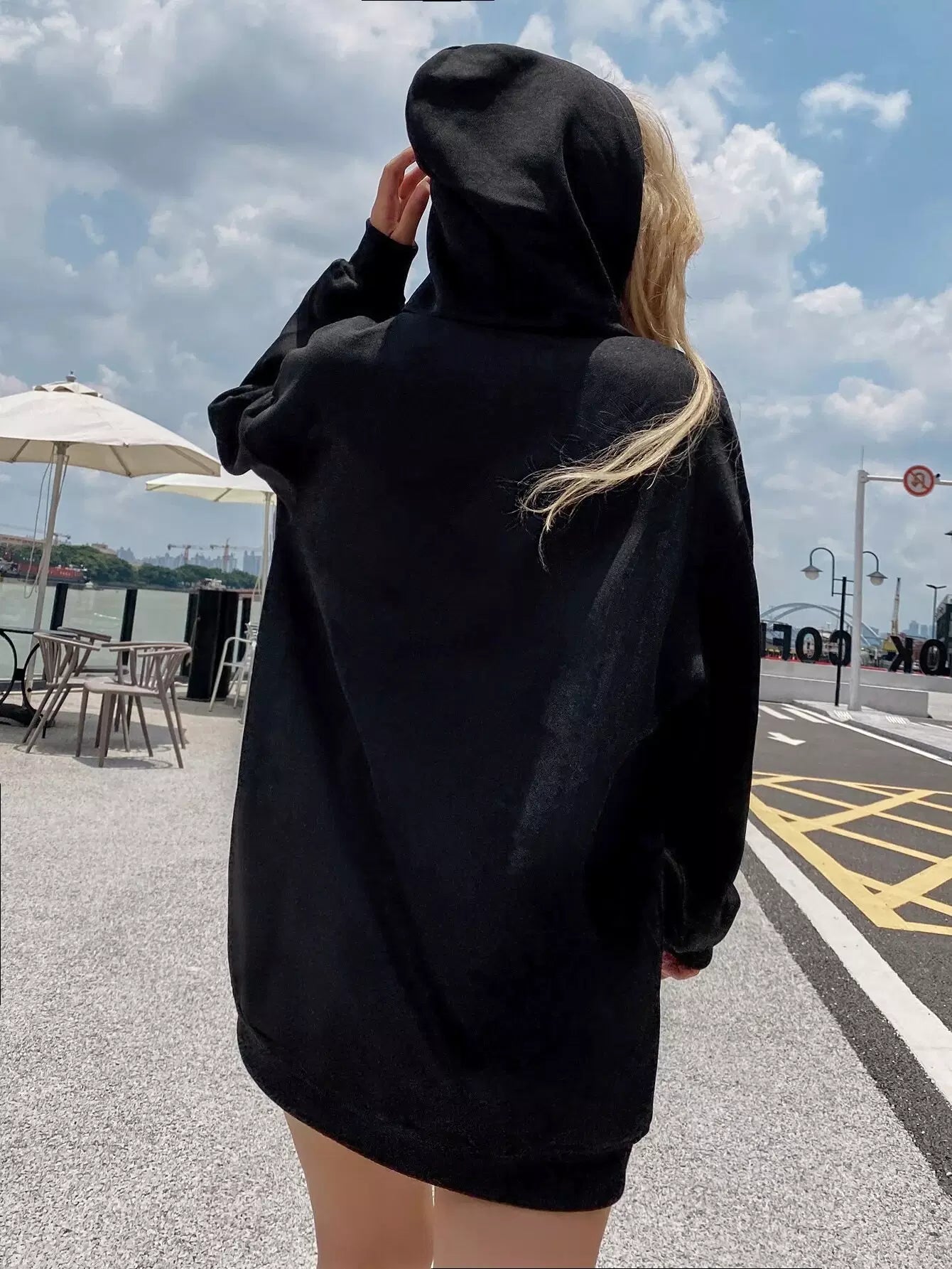 للنساء - سويت شيرت بغطاء للرأس بجيب الكنغر ورسومات الحروف