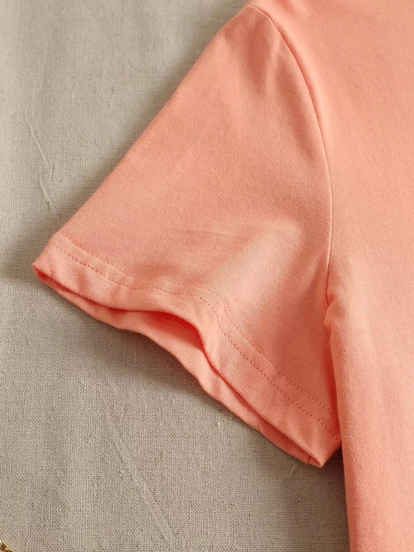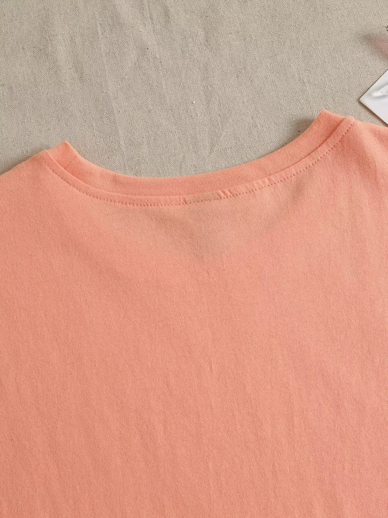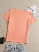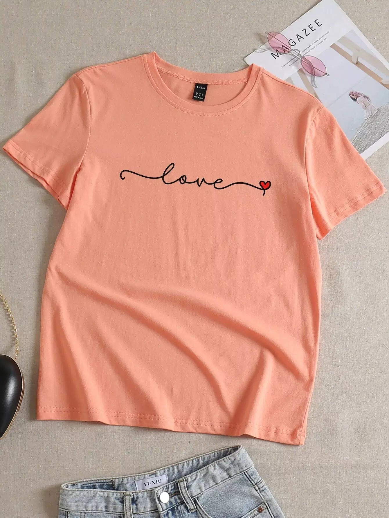 تي شيرت بأكمام قصيرة مطبوع عليها حروف وقلوب