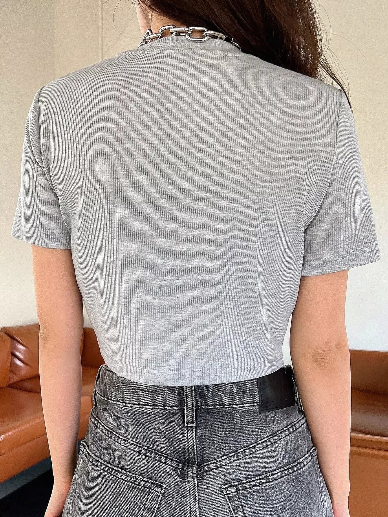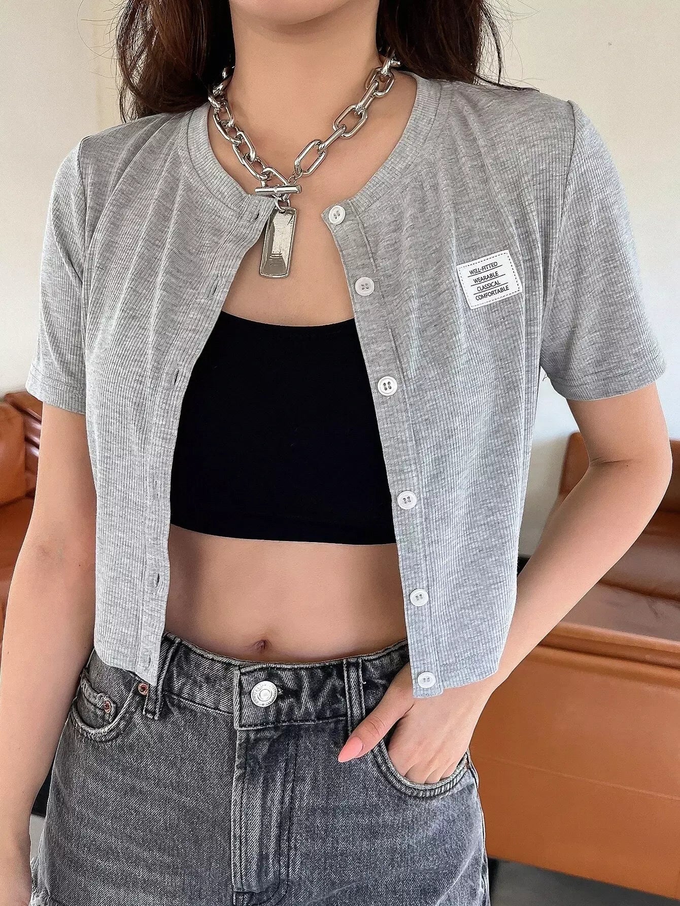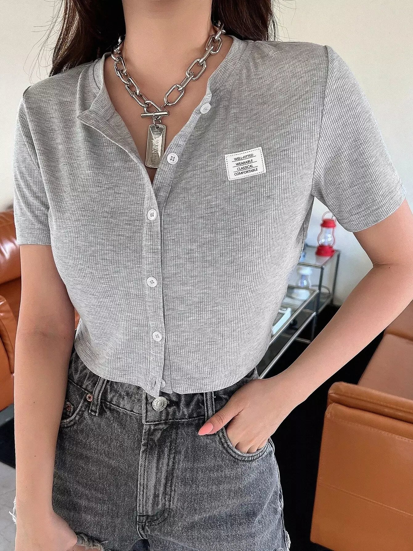 تي شيرت قصير مرقع بتفاصيل حروف