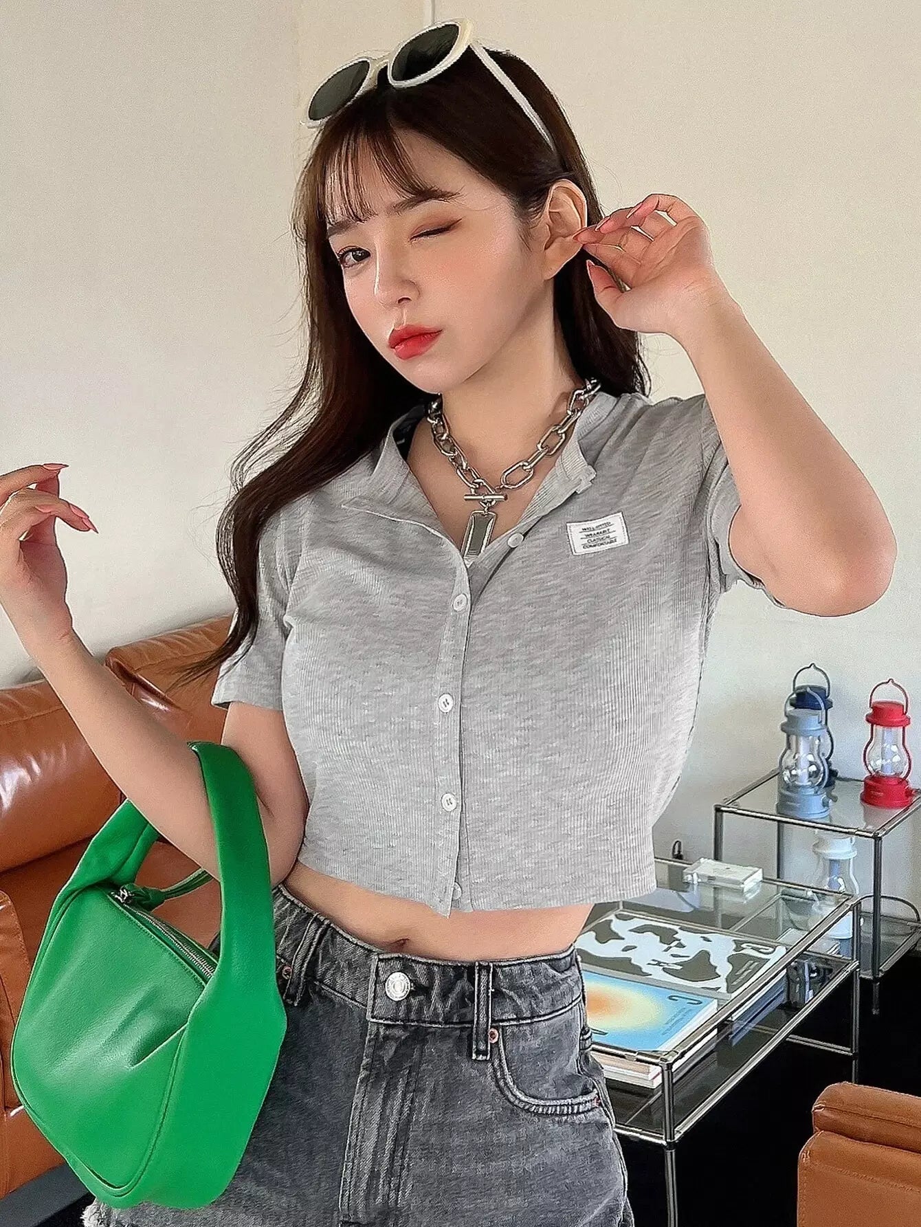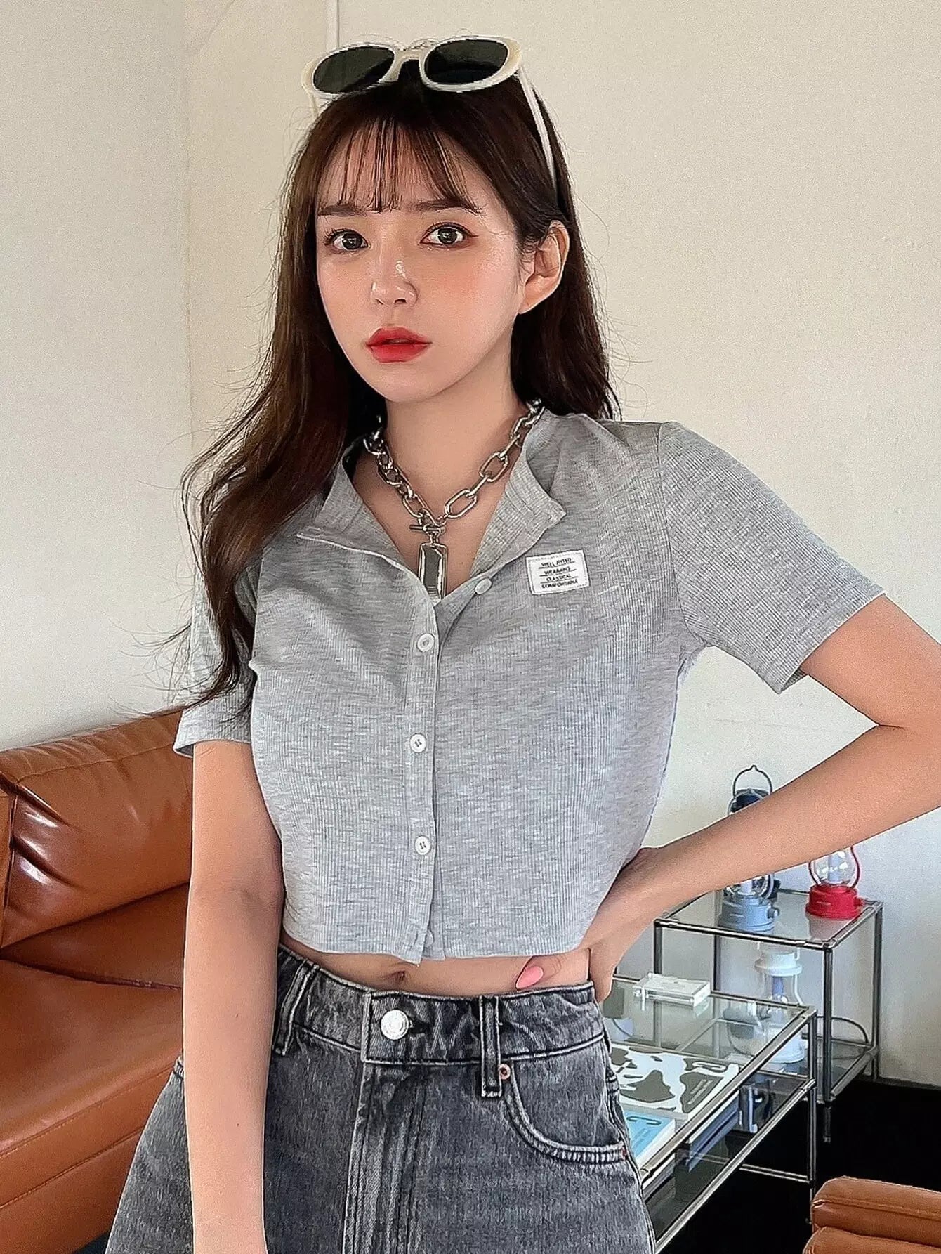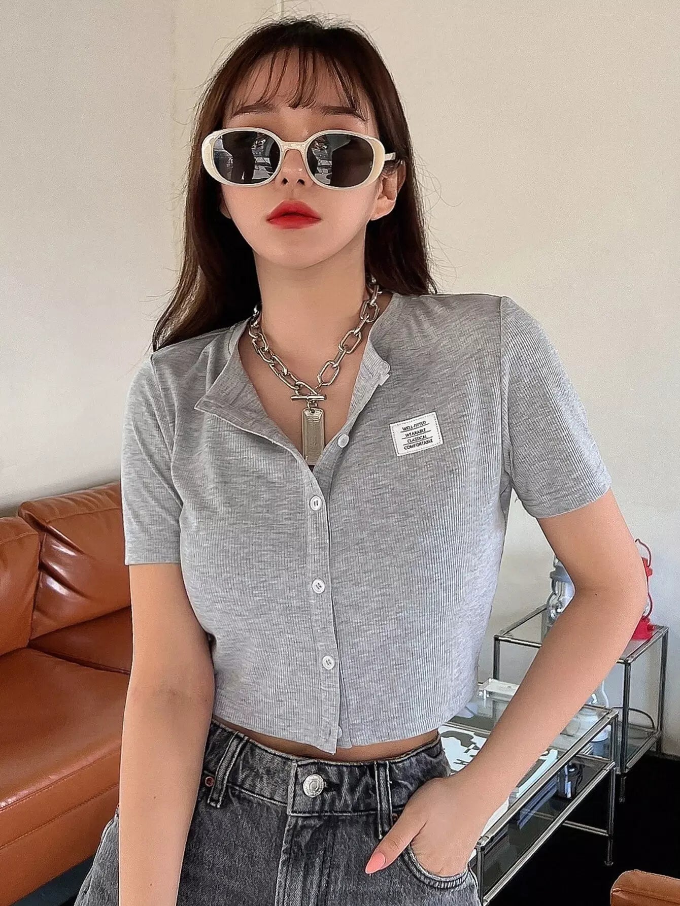 تي شيرت قصير مرقع بتفاصيل حروف