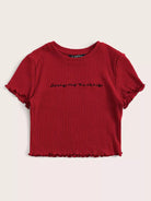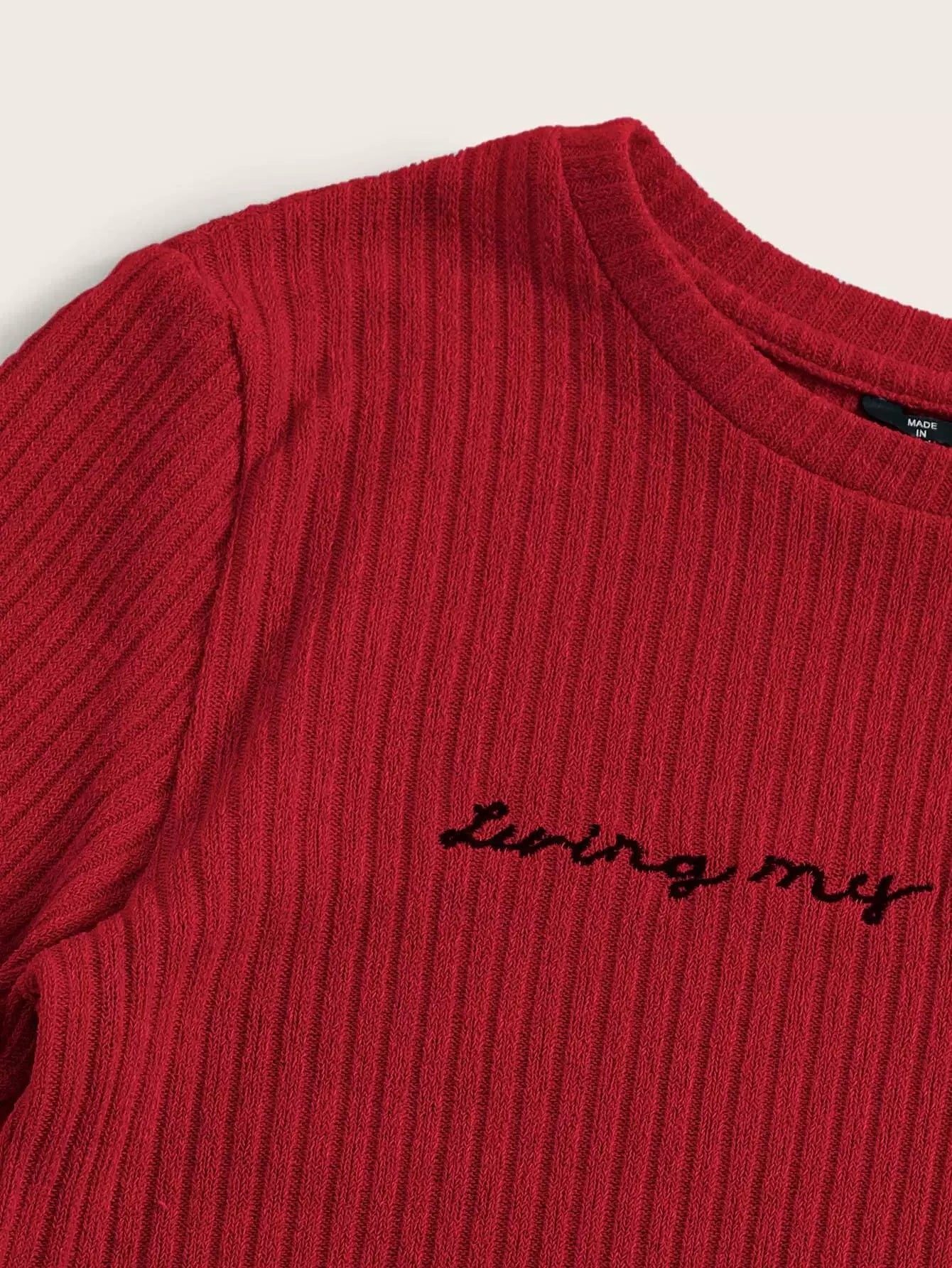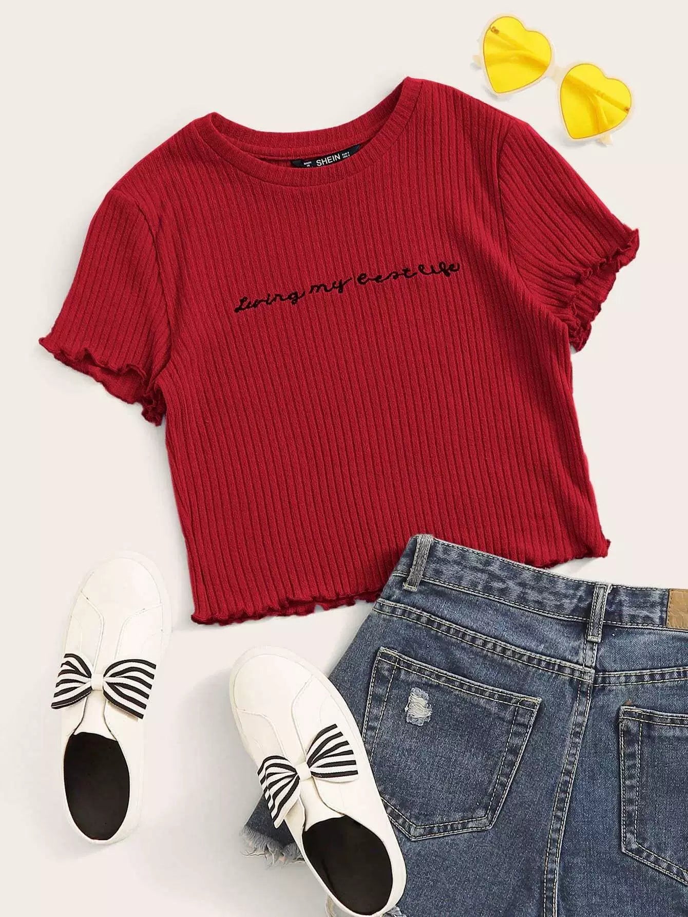 بلوزة مطرزة بتطريزات على شكل ضلع محبوكة بحواف من الخس