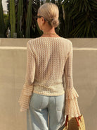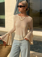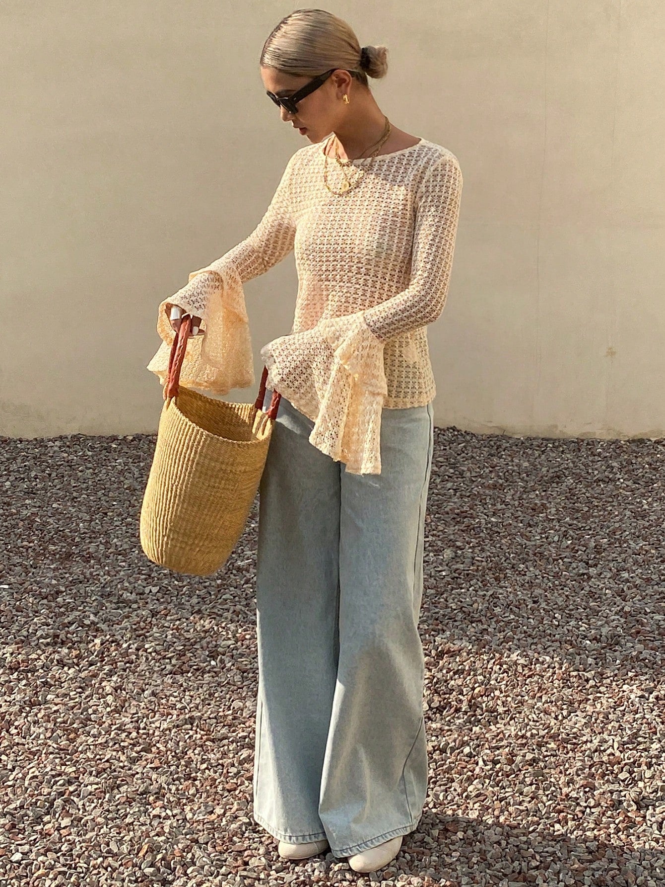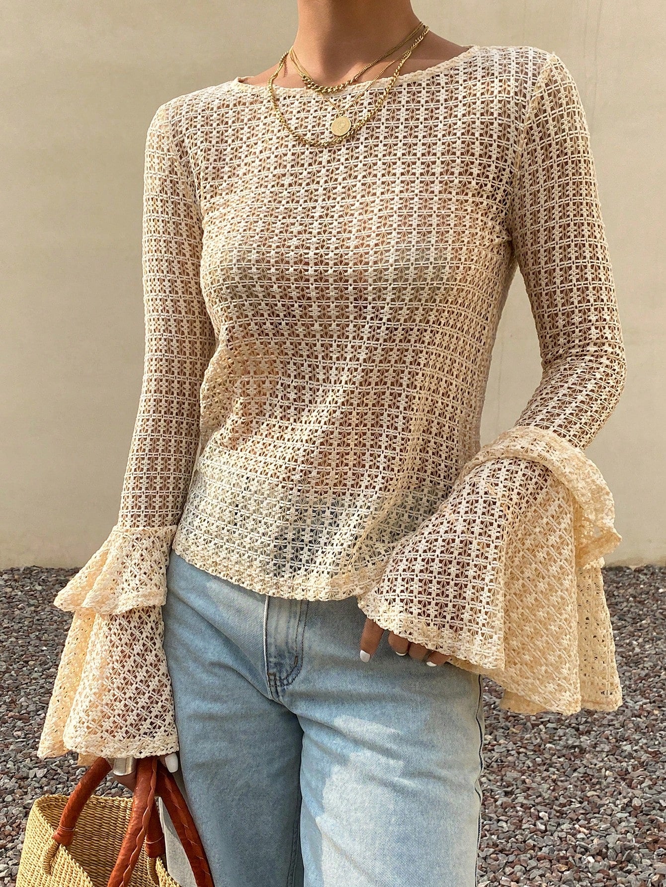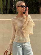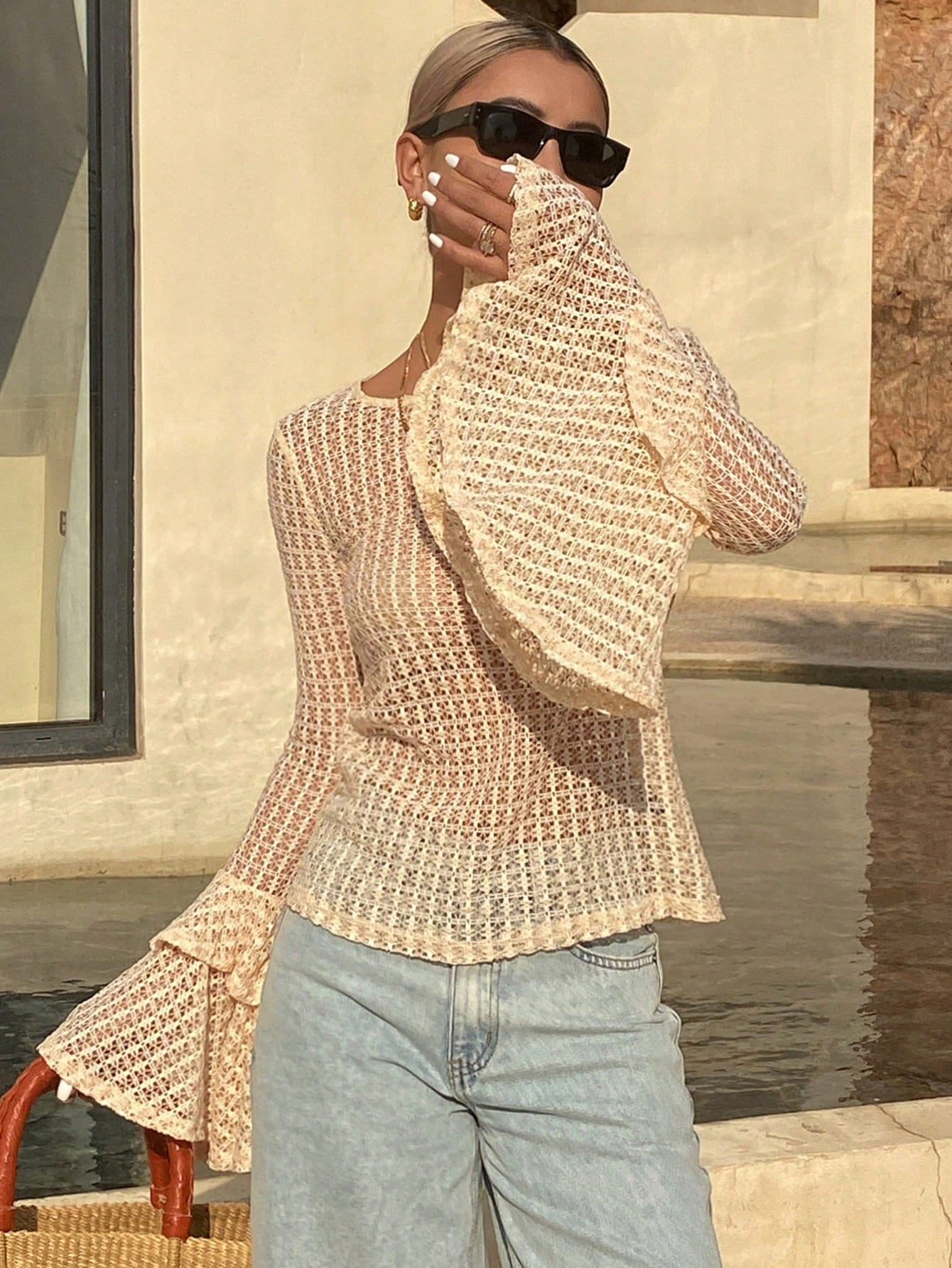 Livesso Women's Summer Casual Loose Beach Holiday Style Mesh See-Through T-Shirt,Ruffle Long Sleeve Women