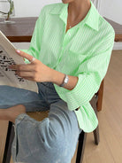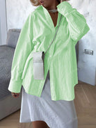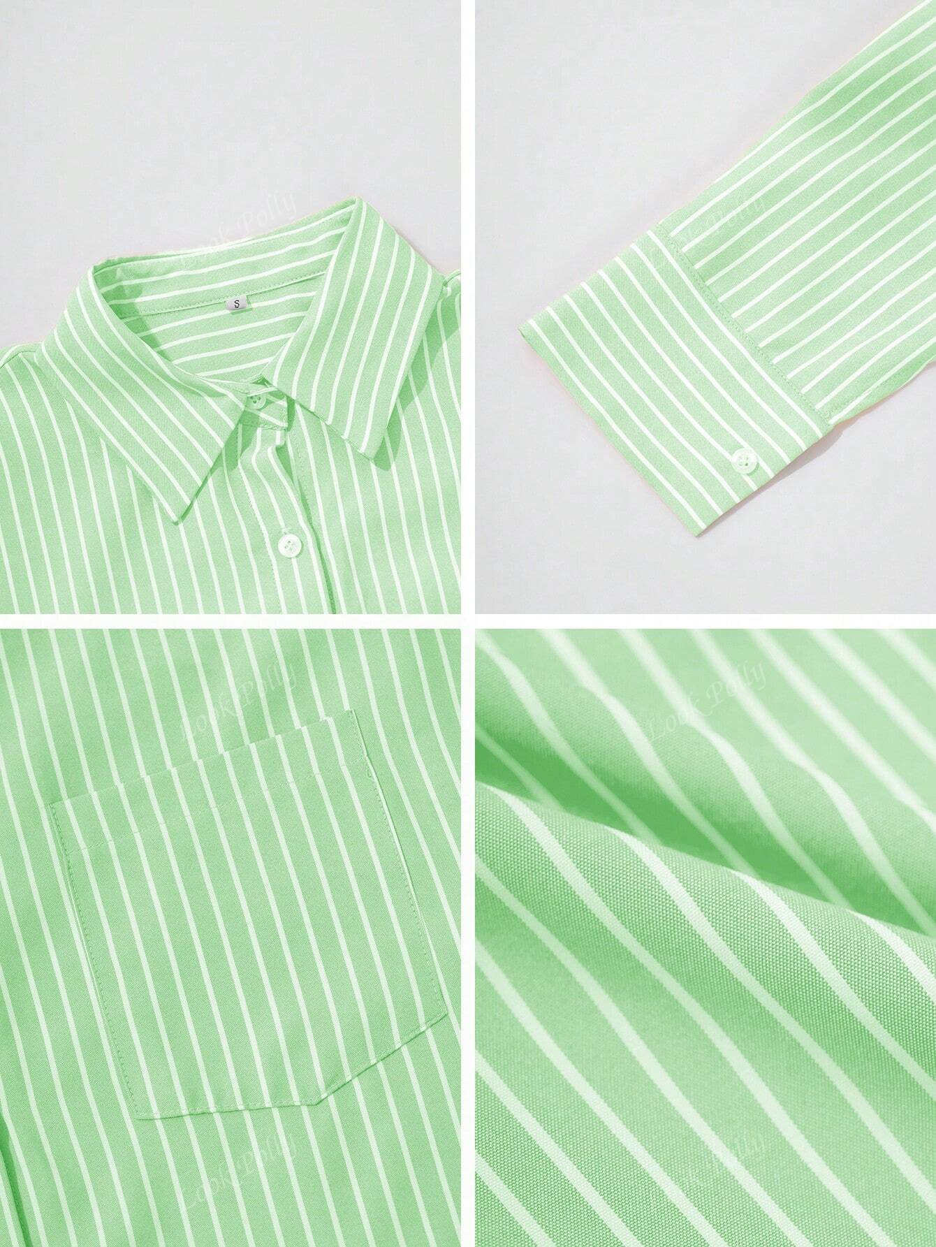 Look Polly Women's Striped Long Sleeve Shirt,Single Breasted Casual Fashion, Fall Women Clothes, Pocket