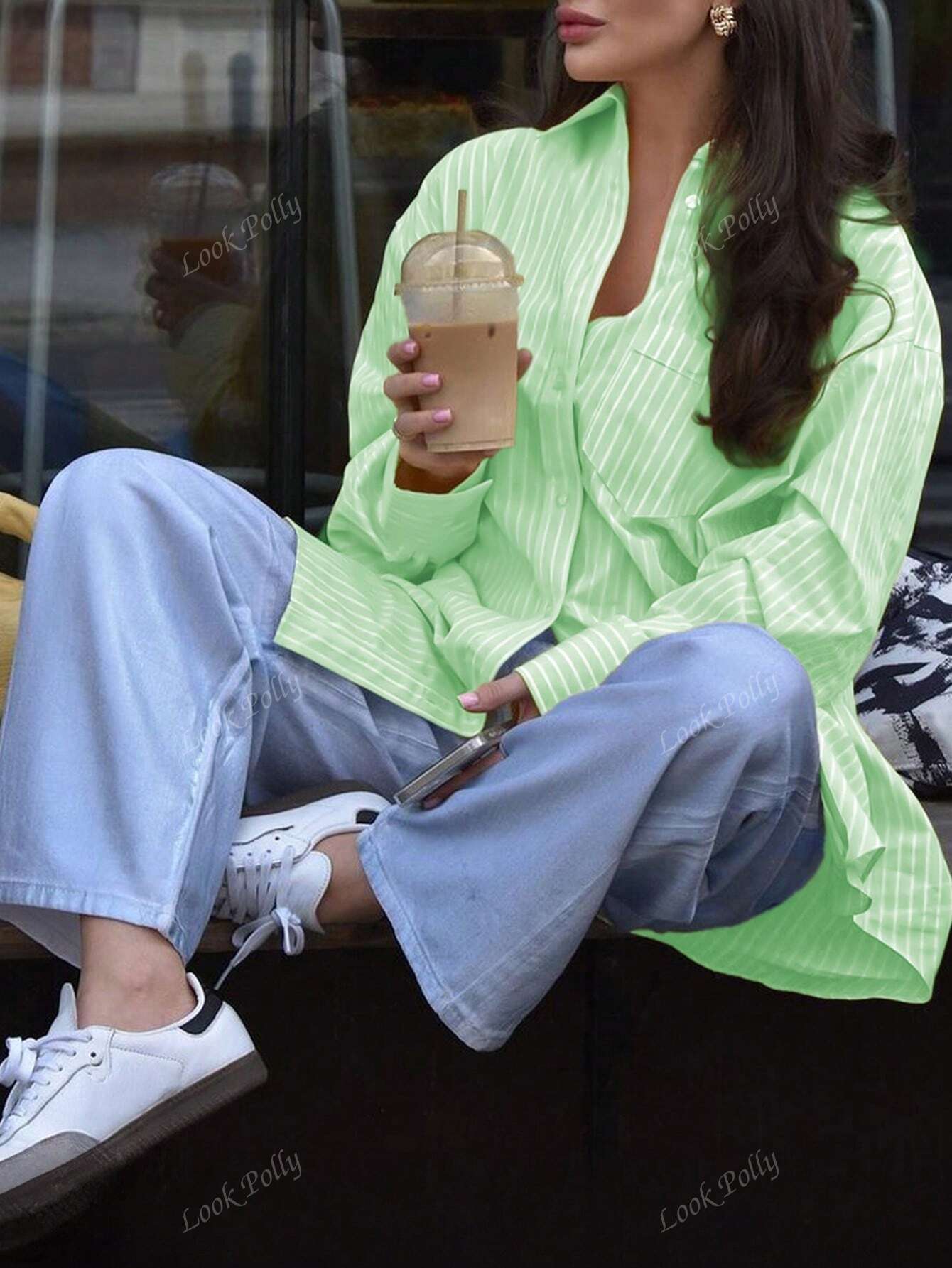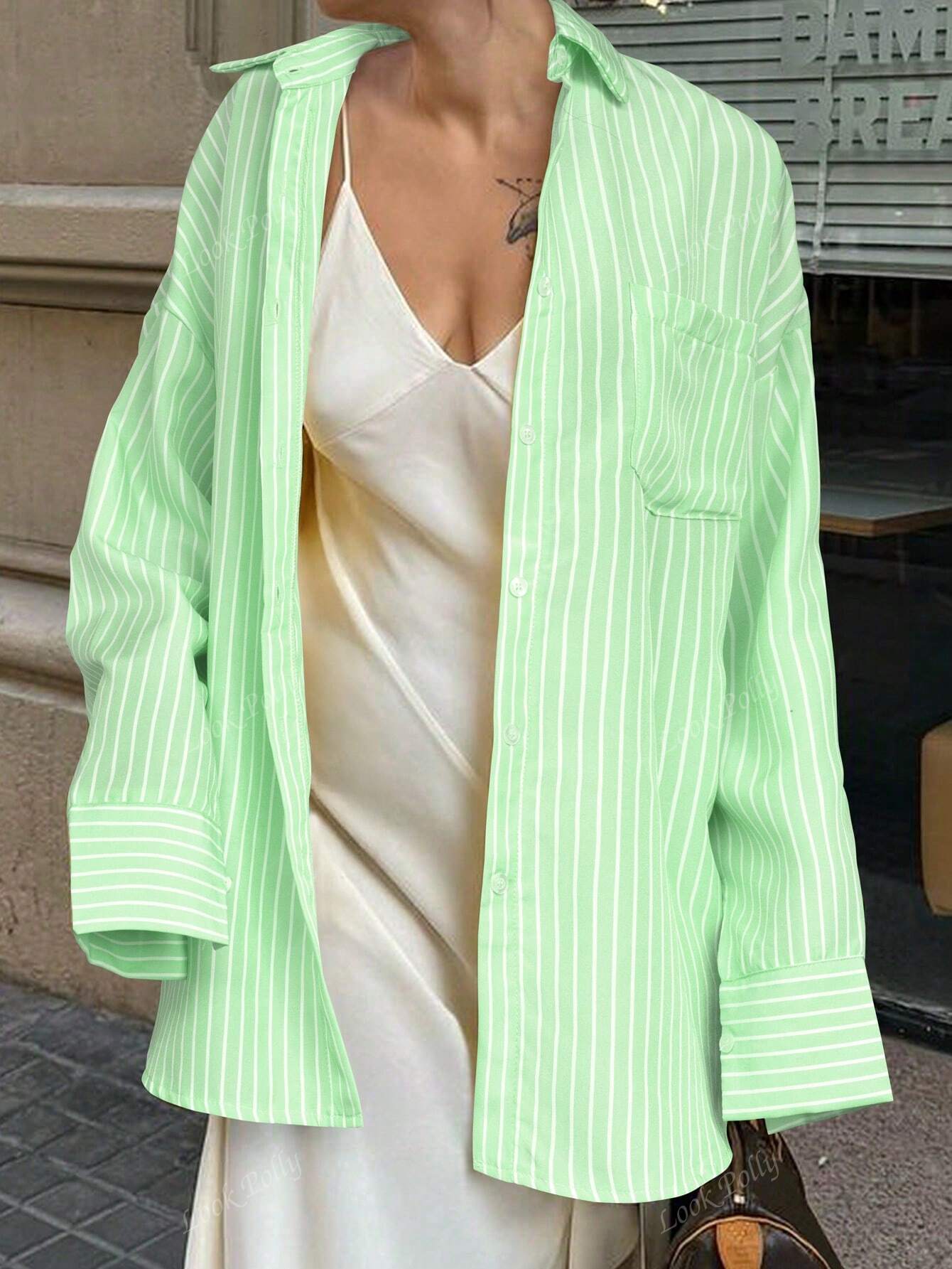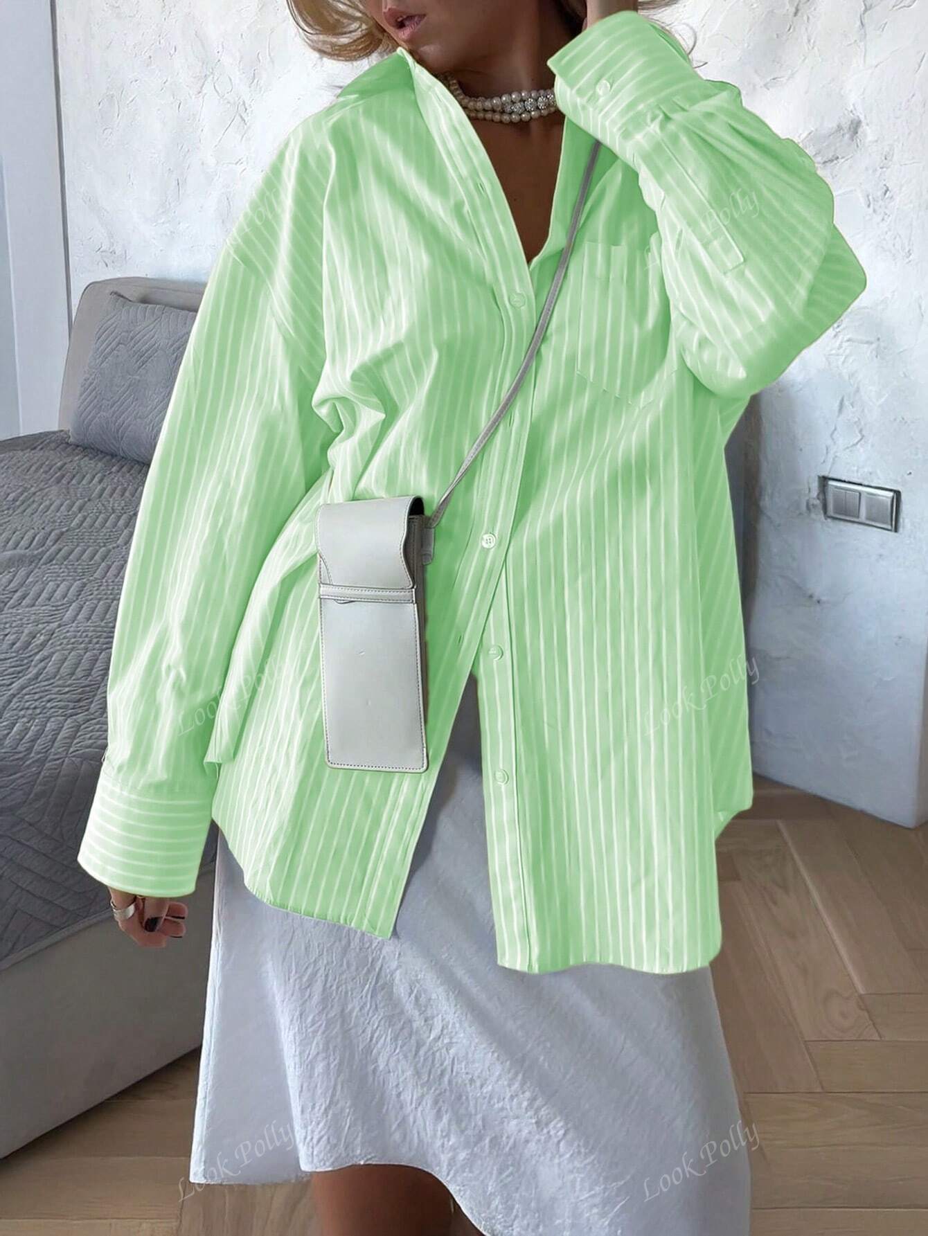 قميص نسائي مخطط بأكمام طويلة من Look Polly، بصف واحد من الأزرار، موضة كاجوال، ملابس نسائية خريفية، جيب