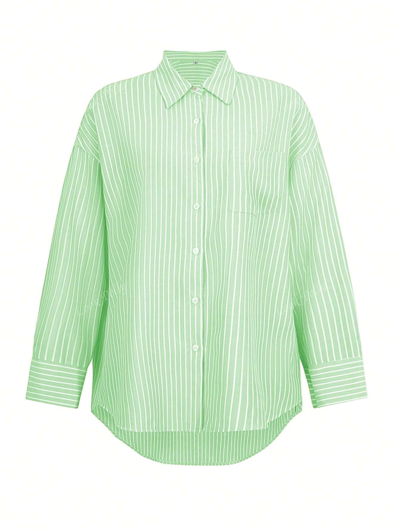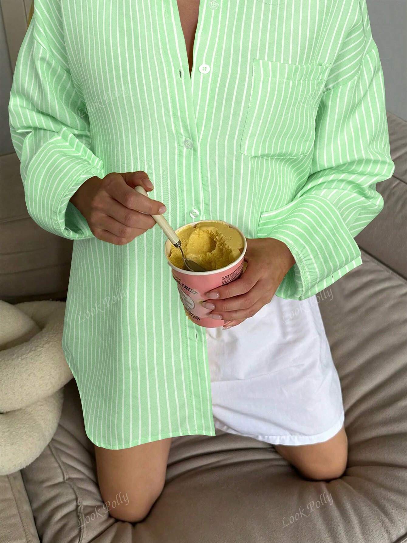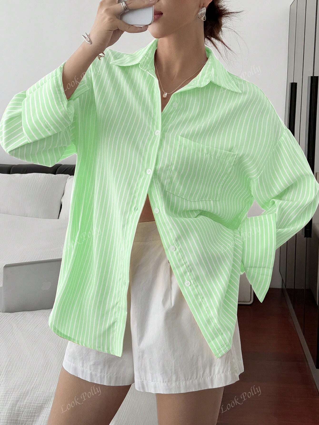 قميص نسائي مخطط بأكمام طويلة من Look Polly، بصف واحد من الأزرار، موضة كاجوال، ملابس نسائية خريفية، جيب